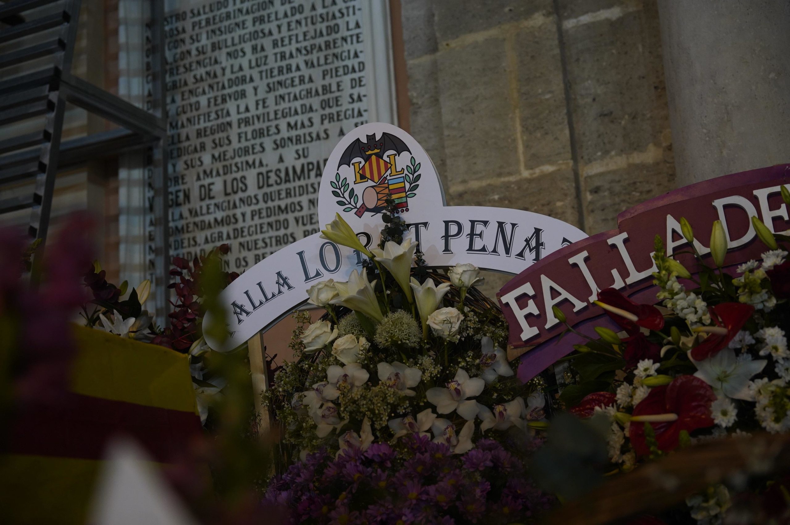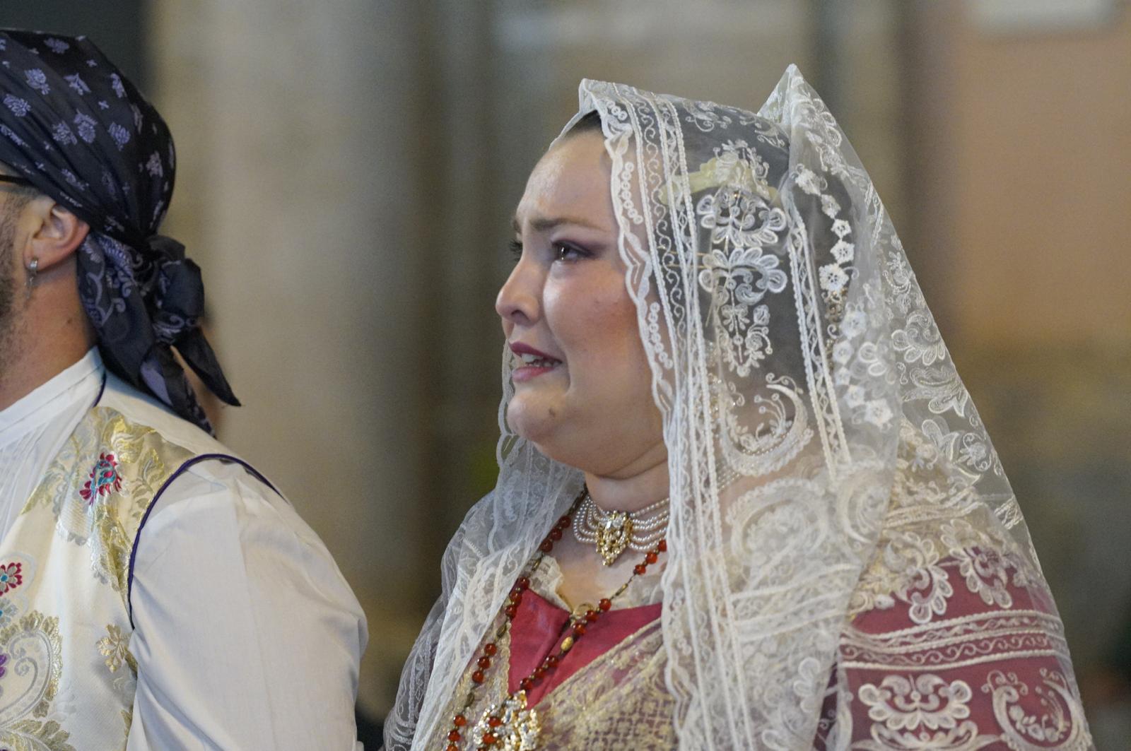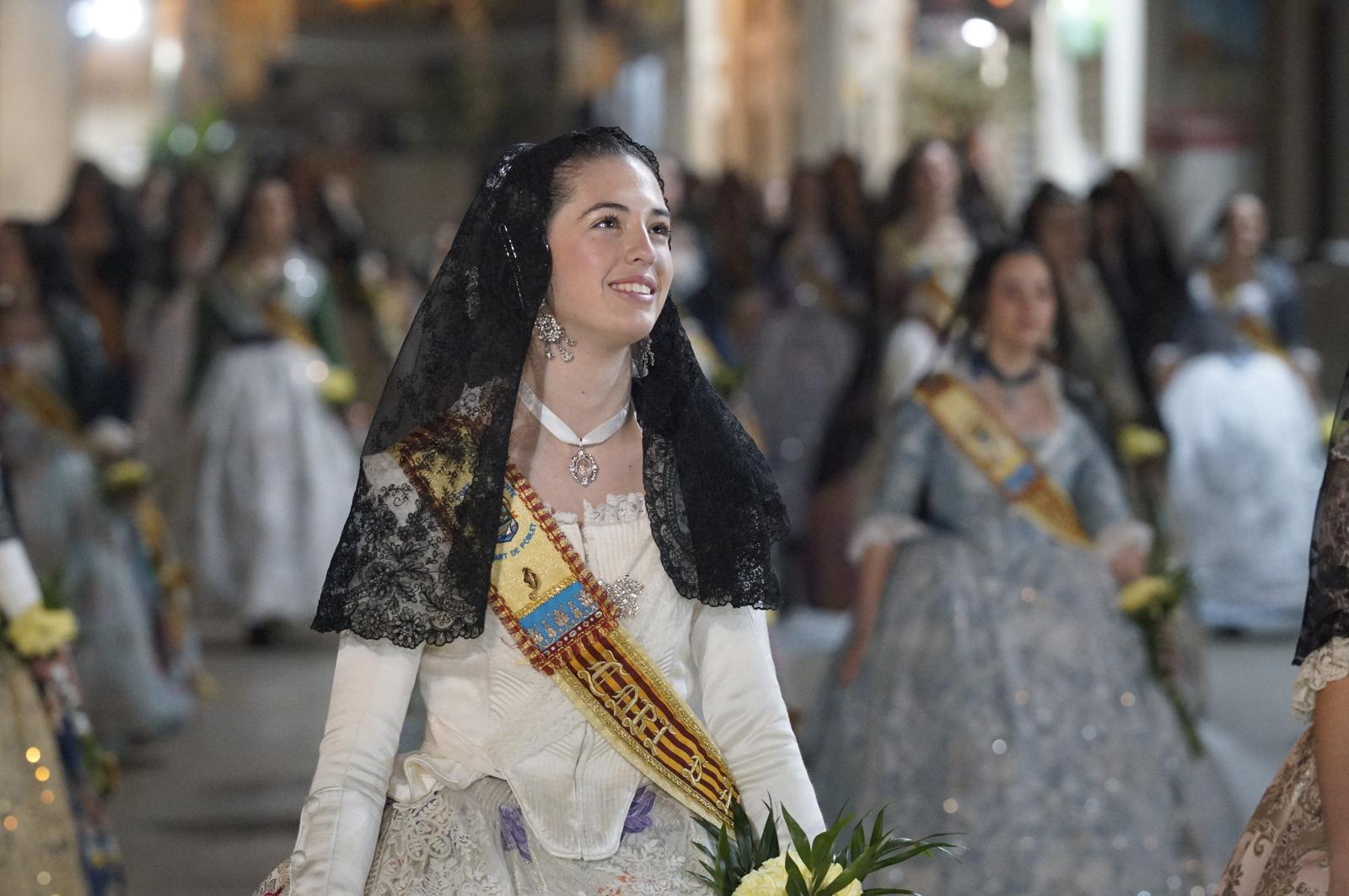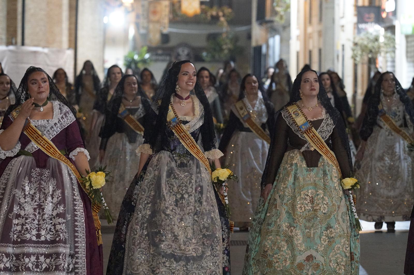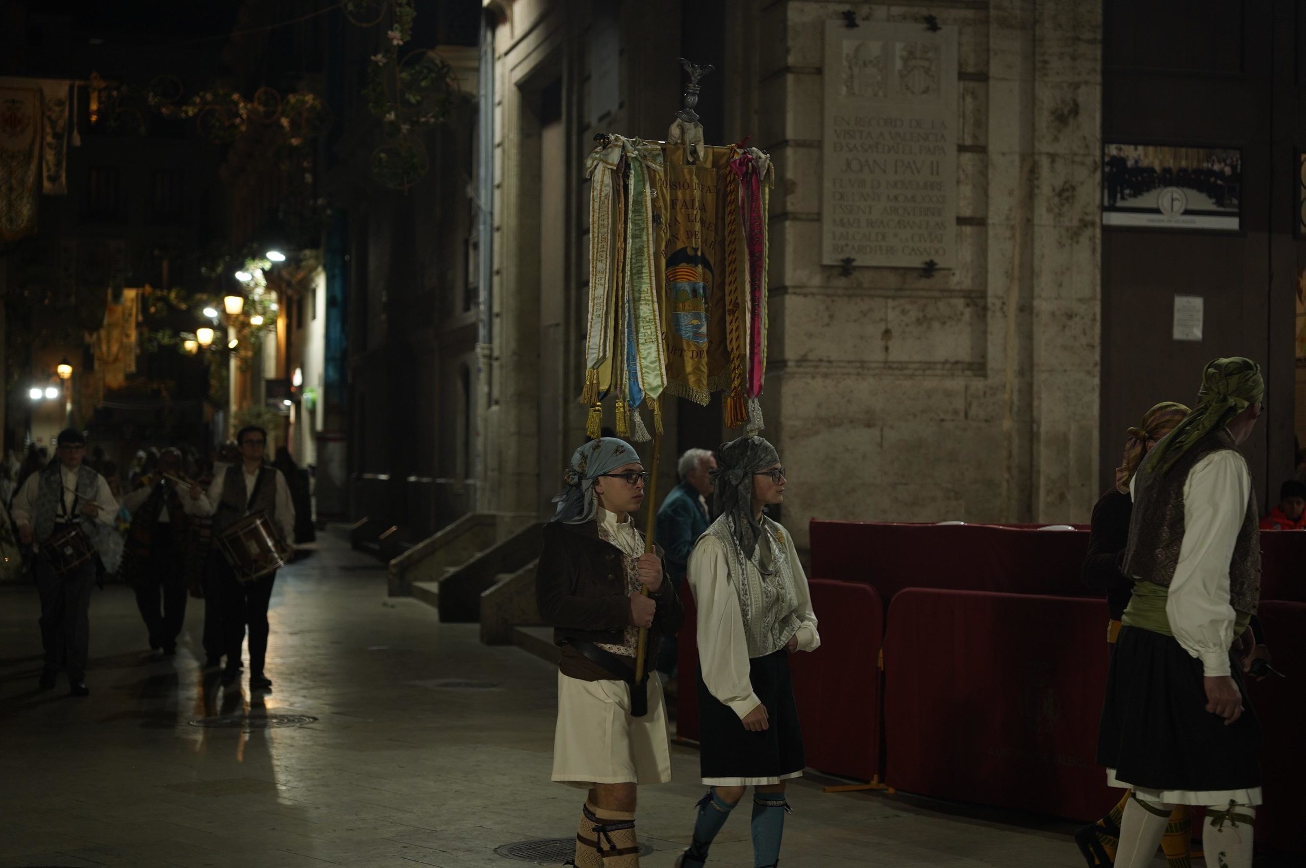Durante toda la tarde y hasta bien entrada la madrugada, las comisiones falleras han desfilado ante la imagen de la Virgen de los Desamparados, conocida como la Geperudeta.