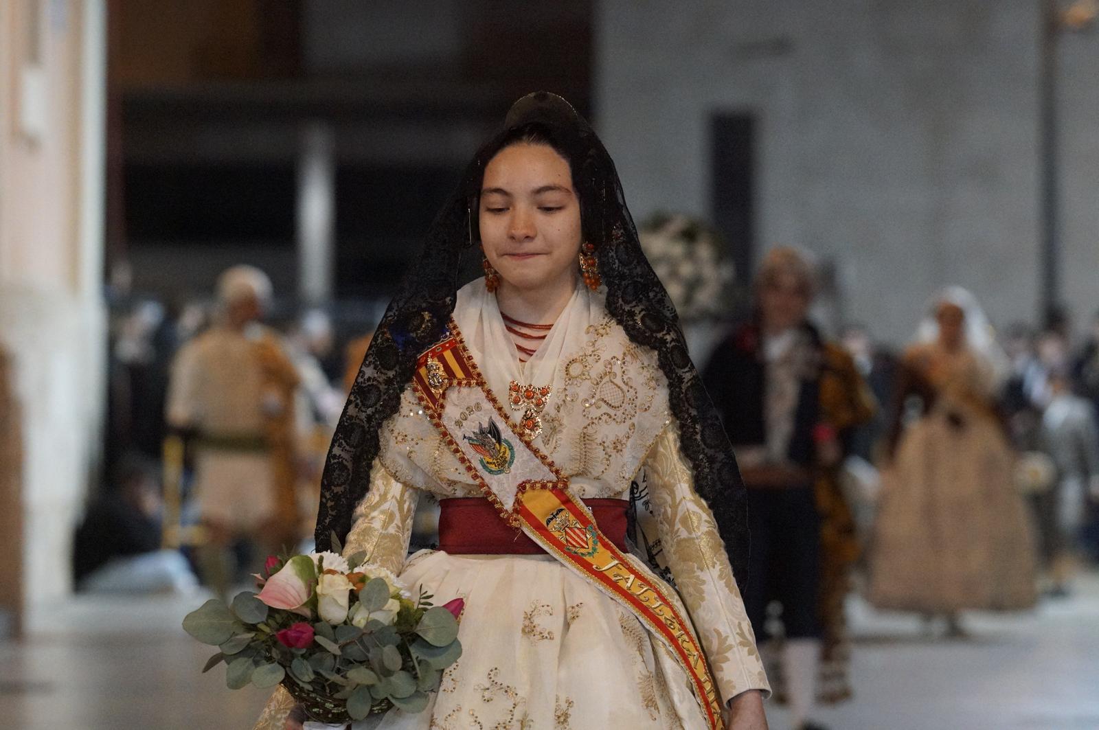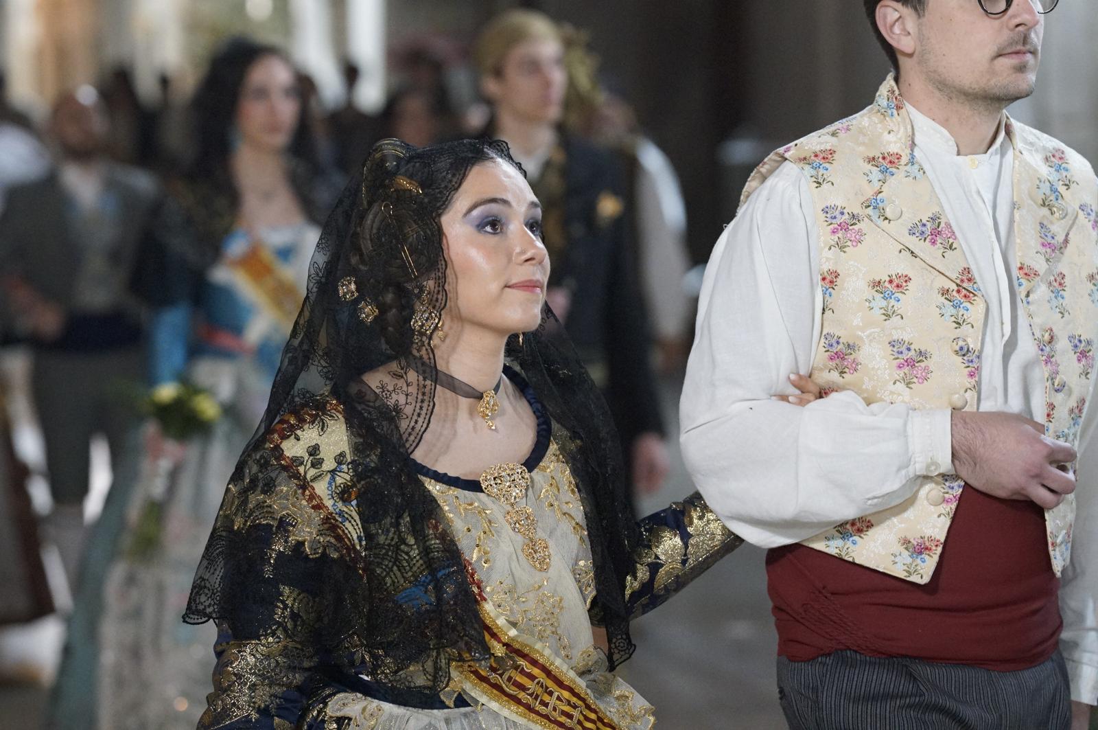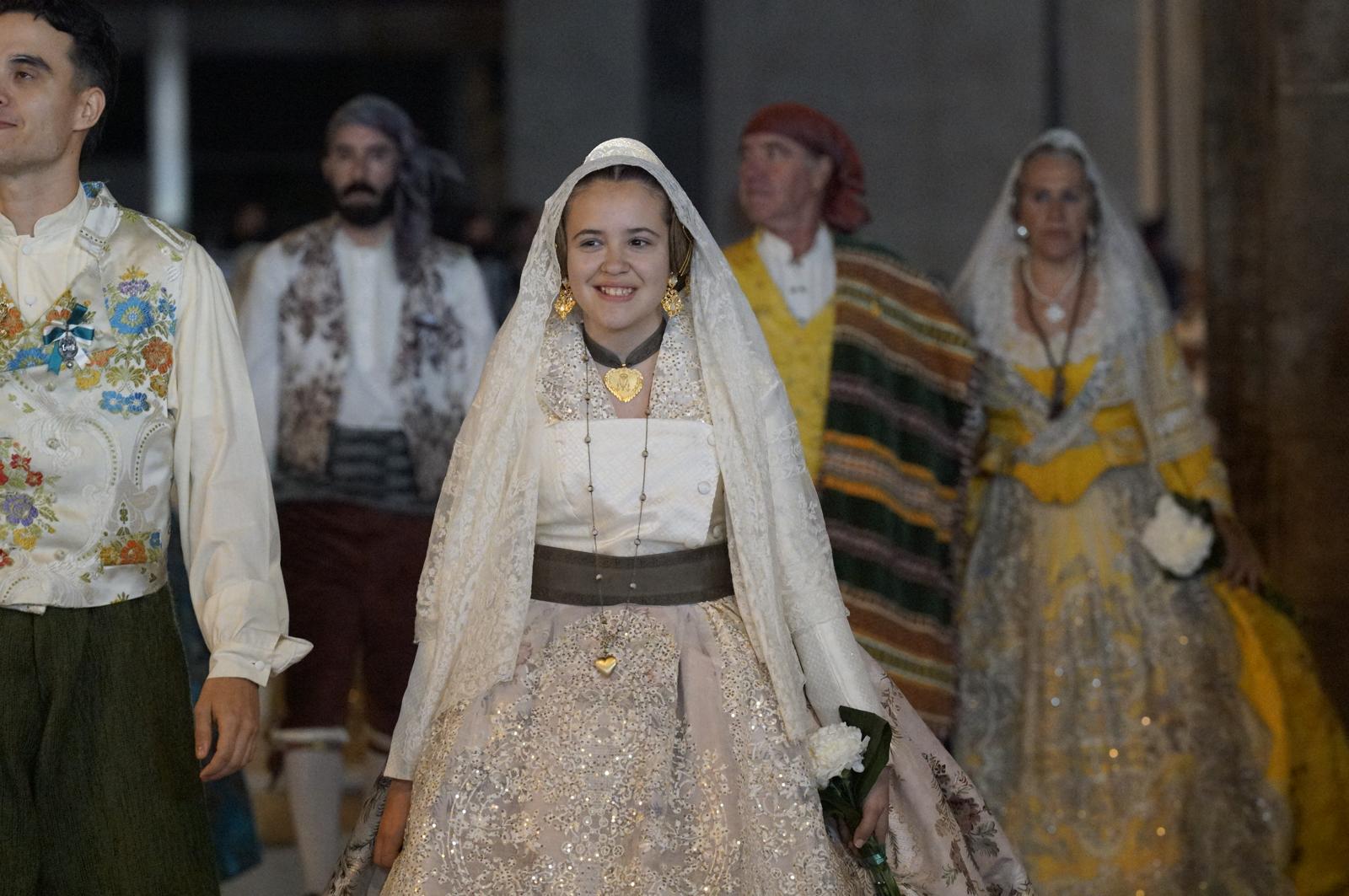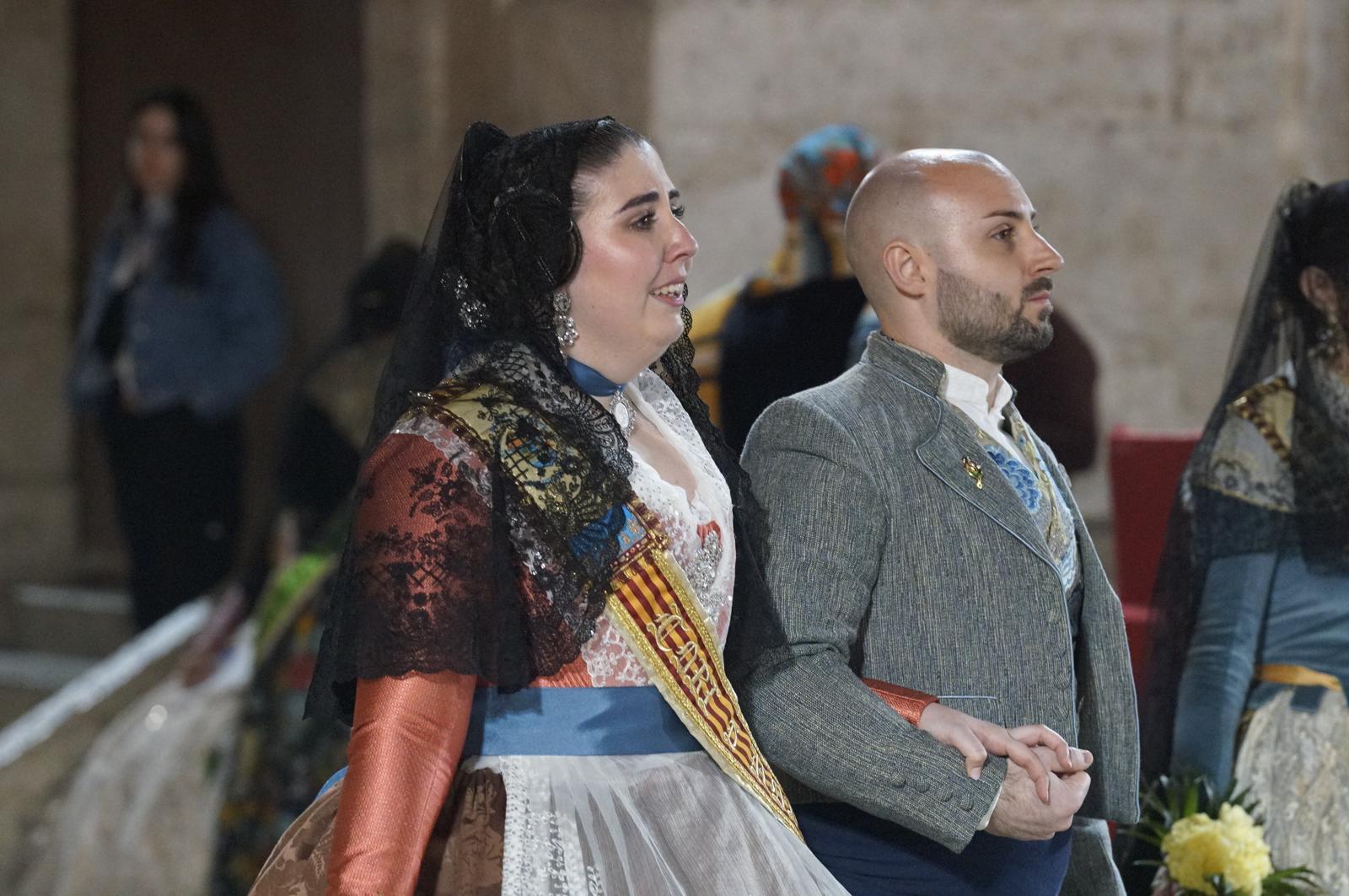 Durante toda la tarde y hasta bien entrada la madrugada, las comisiones falleras han desfilado ante la imagen de la Virgen de los Desamparados, conocida como la Geperudeta.