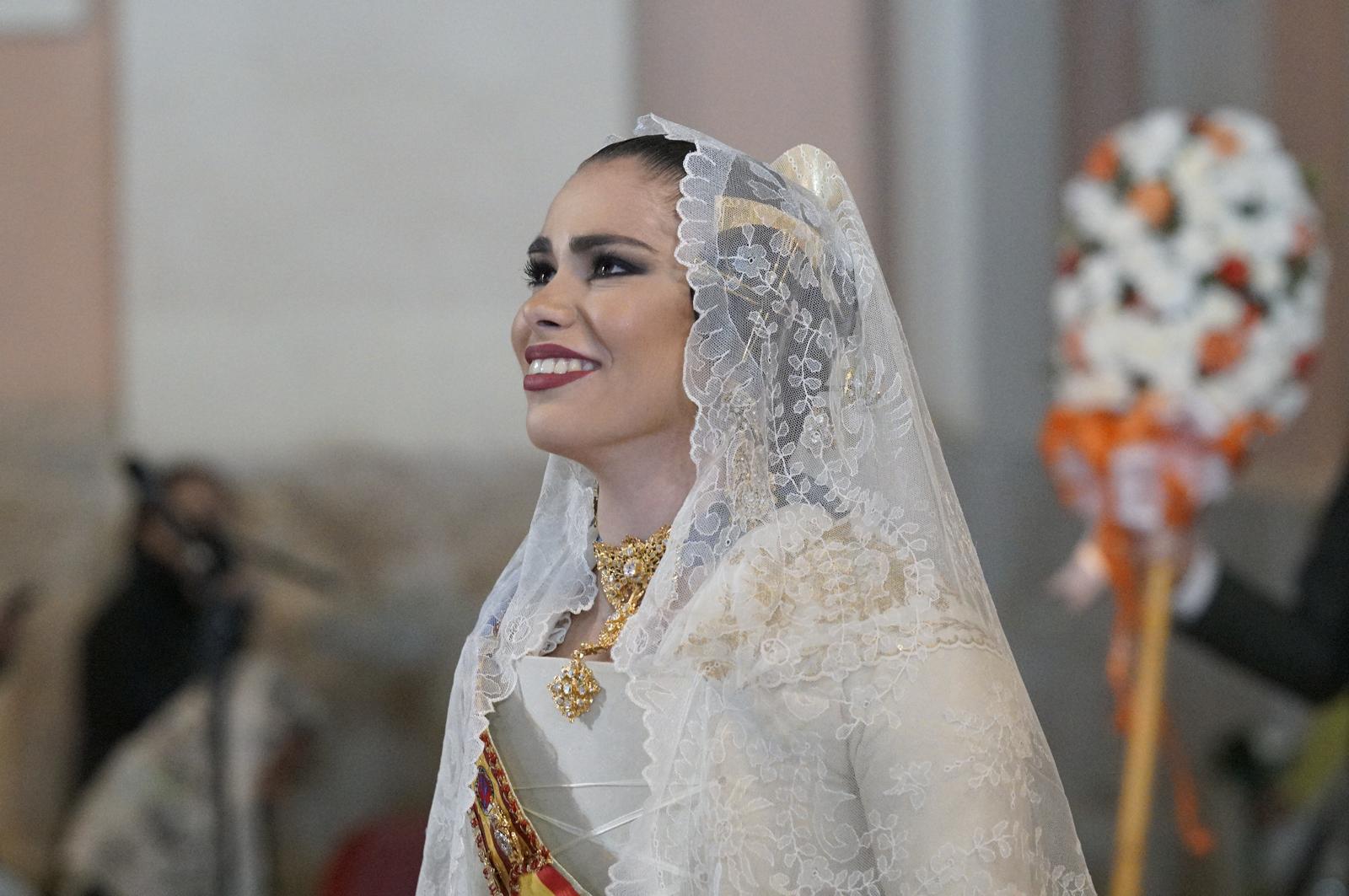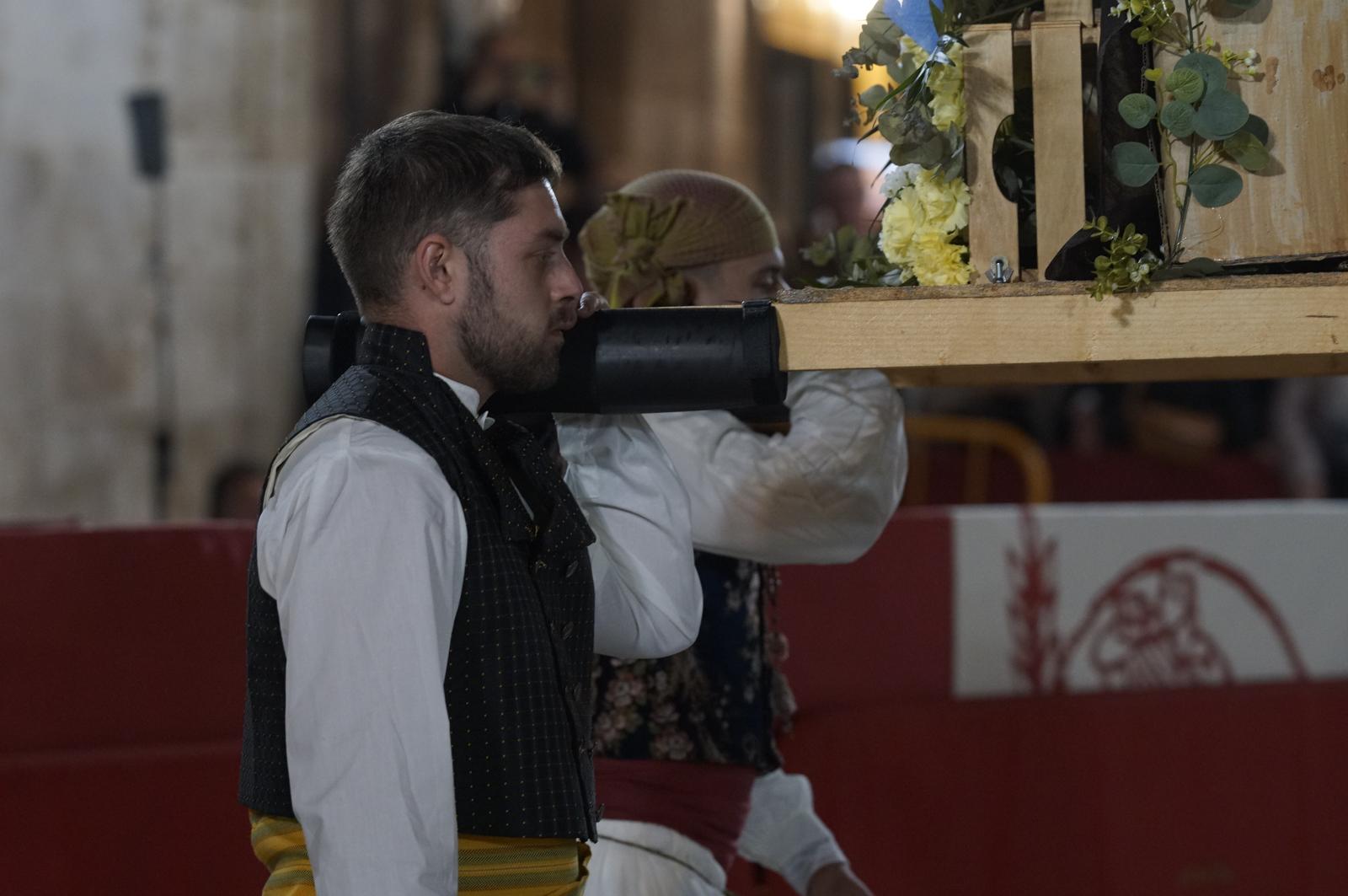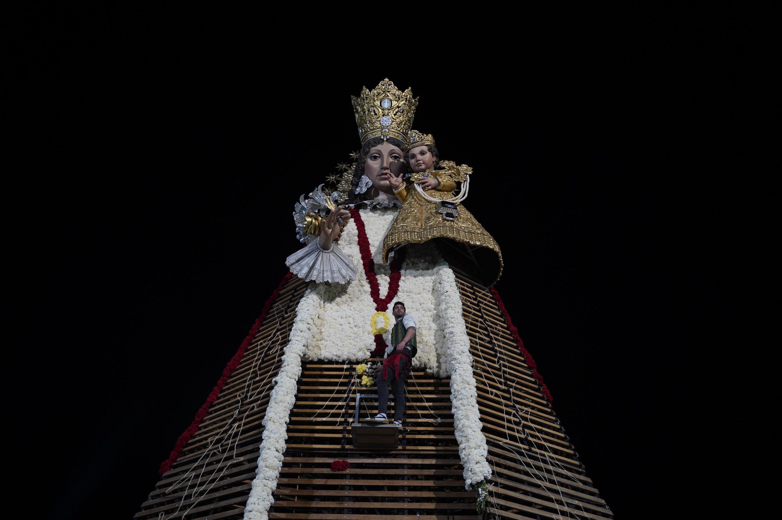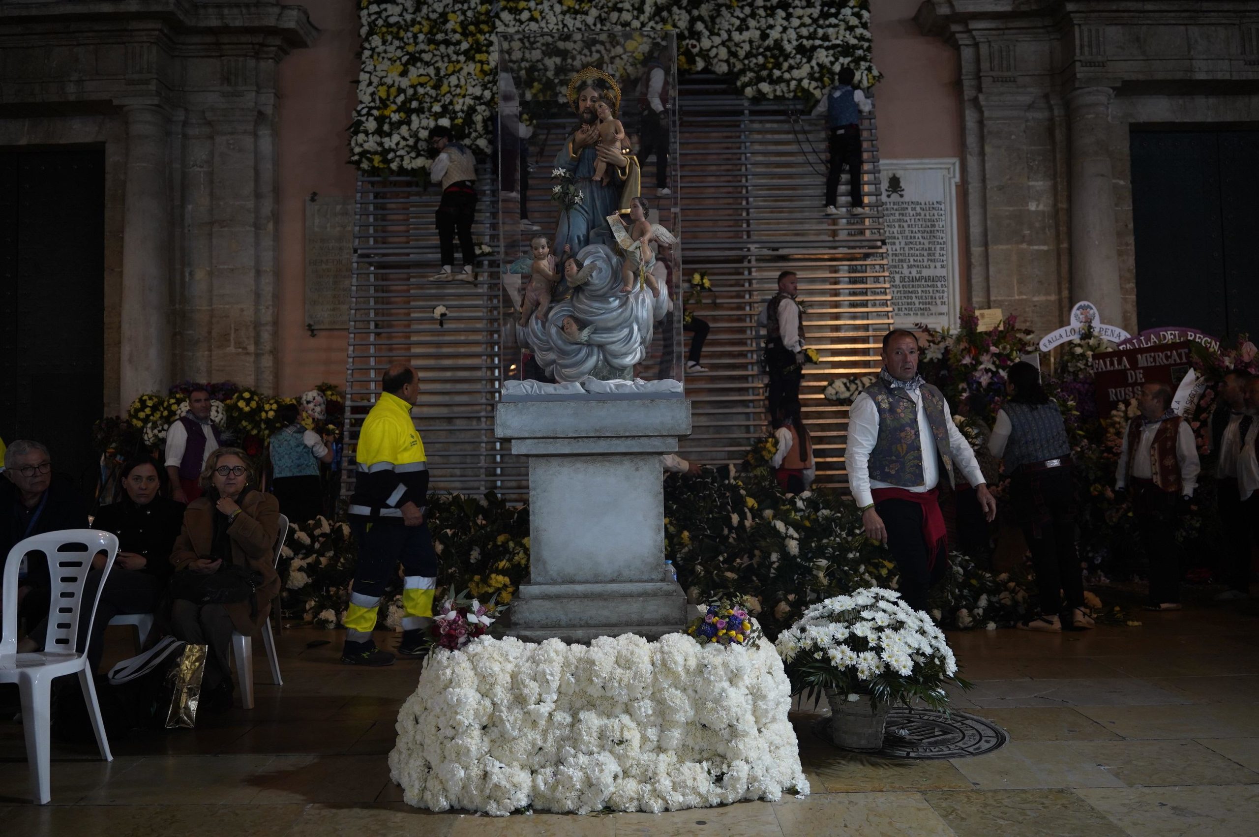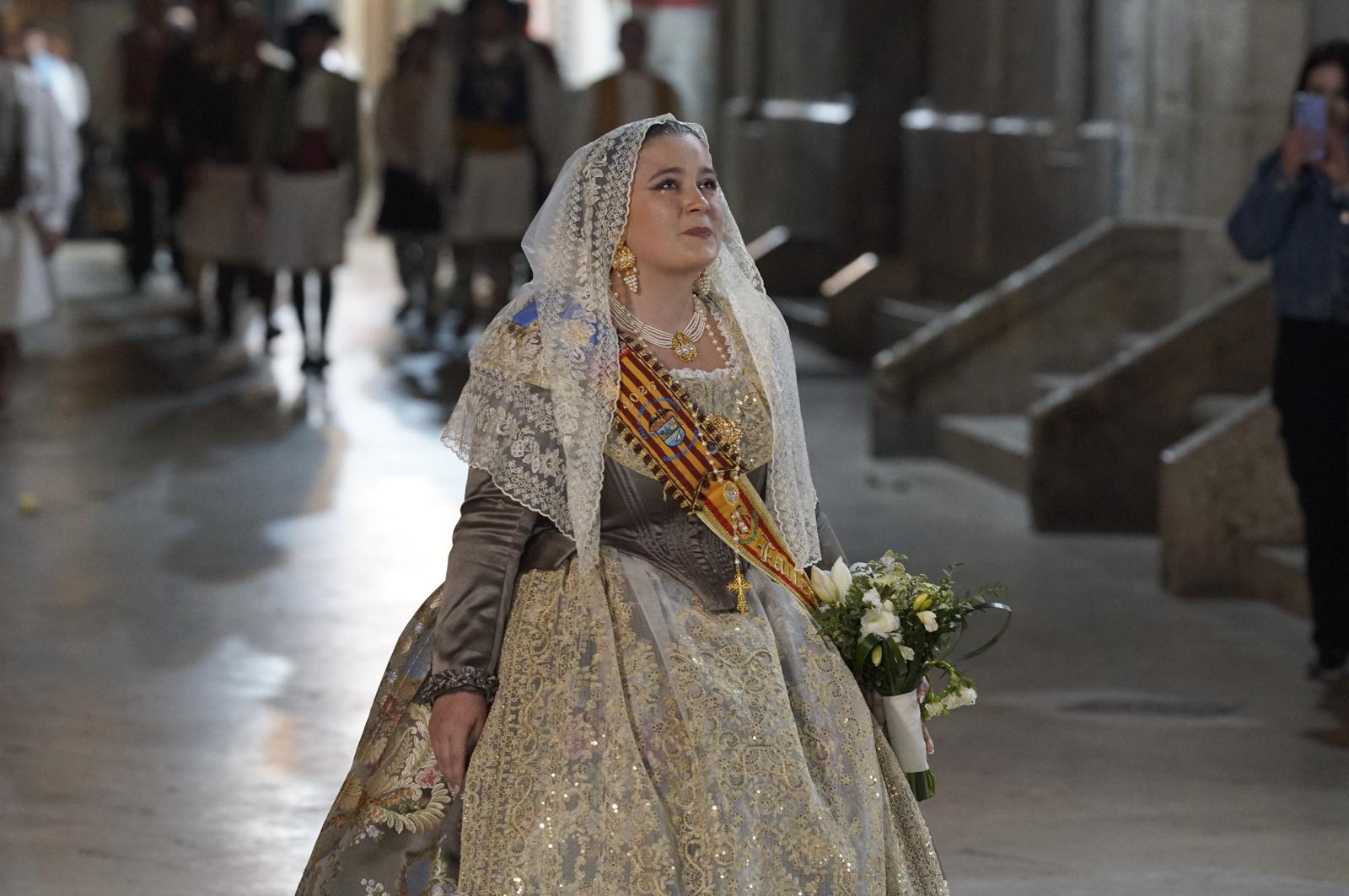 Durante toda la tarde y hasta bien entrada la madrugada, las comisiones falleras han desfilado ante la imagen de la Virgen de los Desamparados, conocida como la Geperudeta.