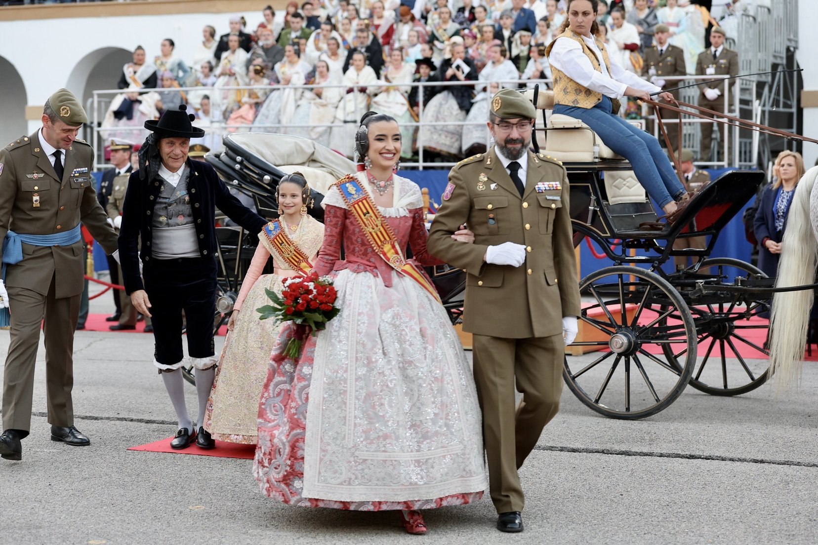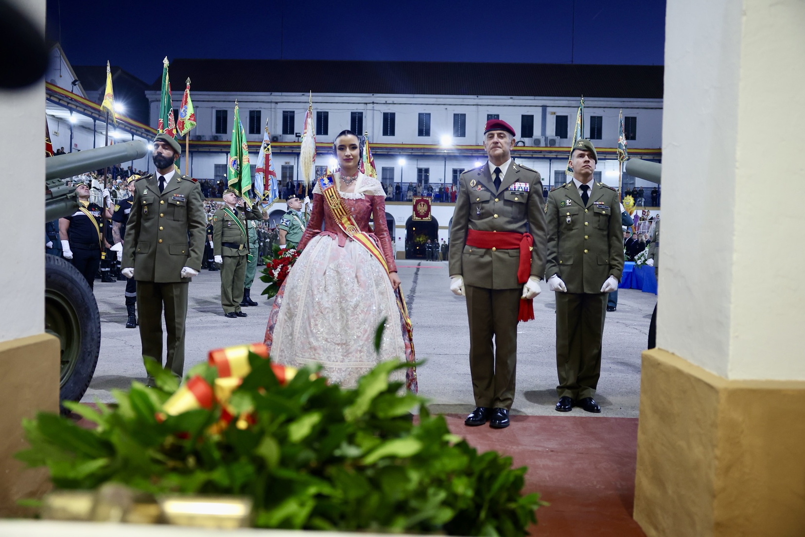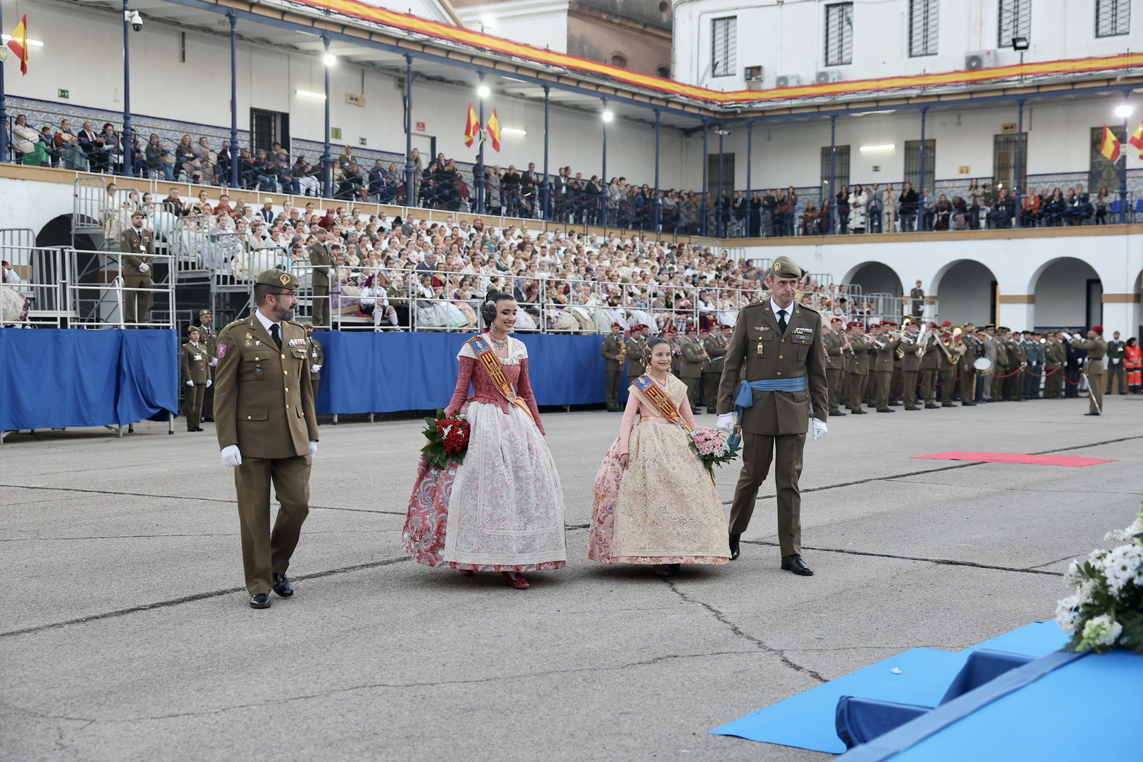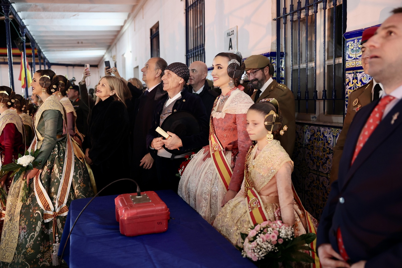 El acto fue presidido por el teniente general Luis Sáez Rocandio, jefe del Cuartel General Terrestre de Alta Disponibilidad (CGTAD) y Representante Institucional de las Fuerzas Armadas (RIFAS) de la Comunidad Valenciana. Entre las más de 380 comisiones falleras presentes, asistieron cerca de 1.800 personas, incluyendo la Fallera Mayor y Fallera Mayor Infantil con sus Cortes de Honor, así como autoridades civiles, militares y judiciales, entre ellas la Delegada del Gobierno, Pilar Bernabé, varios consellers y cargos municipales destacados.