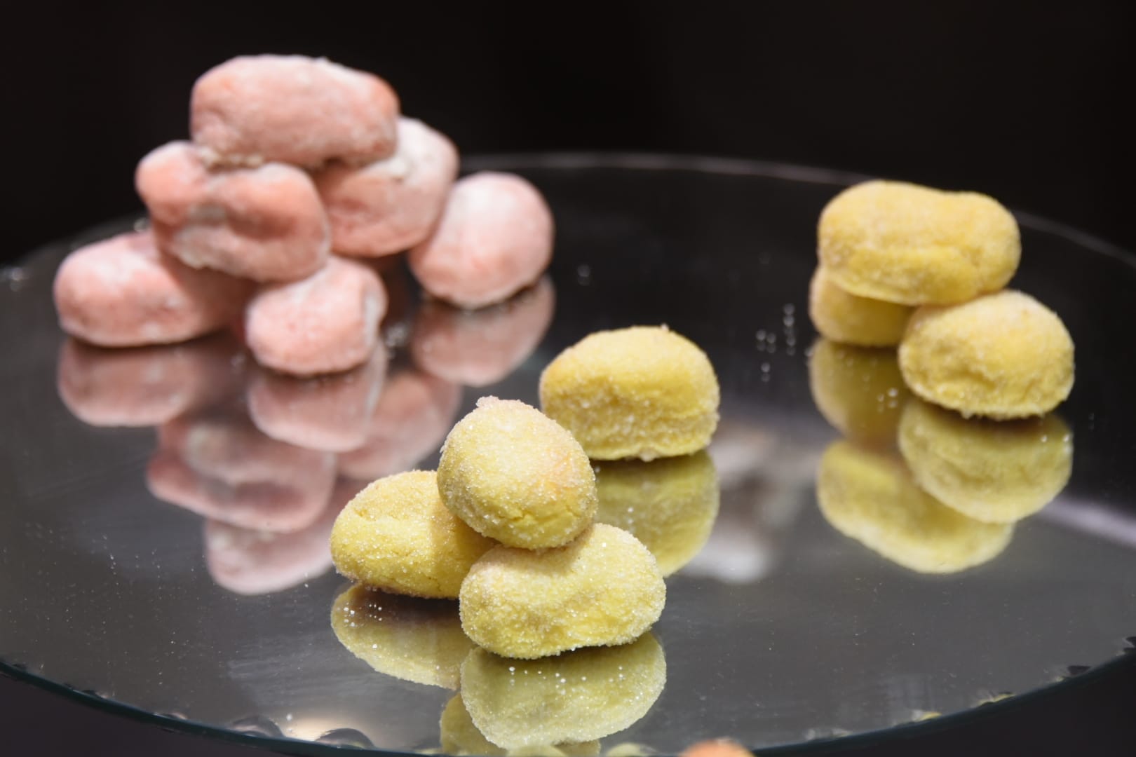 Los panellets utilizan una masa típicamente valenciana, el mazapán, y están elaborados con una masa de mazapán a la que se le añade huevo, además esencia de sabor y color dependiendo los sabores que se quieran dar: piña, avellana, almendra, coco, fresa, plátano, café, chocolate, vainilla, vergamota, limón y yema.