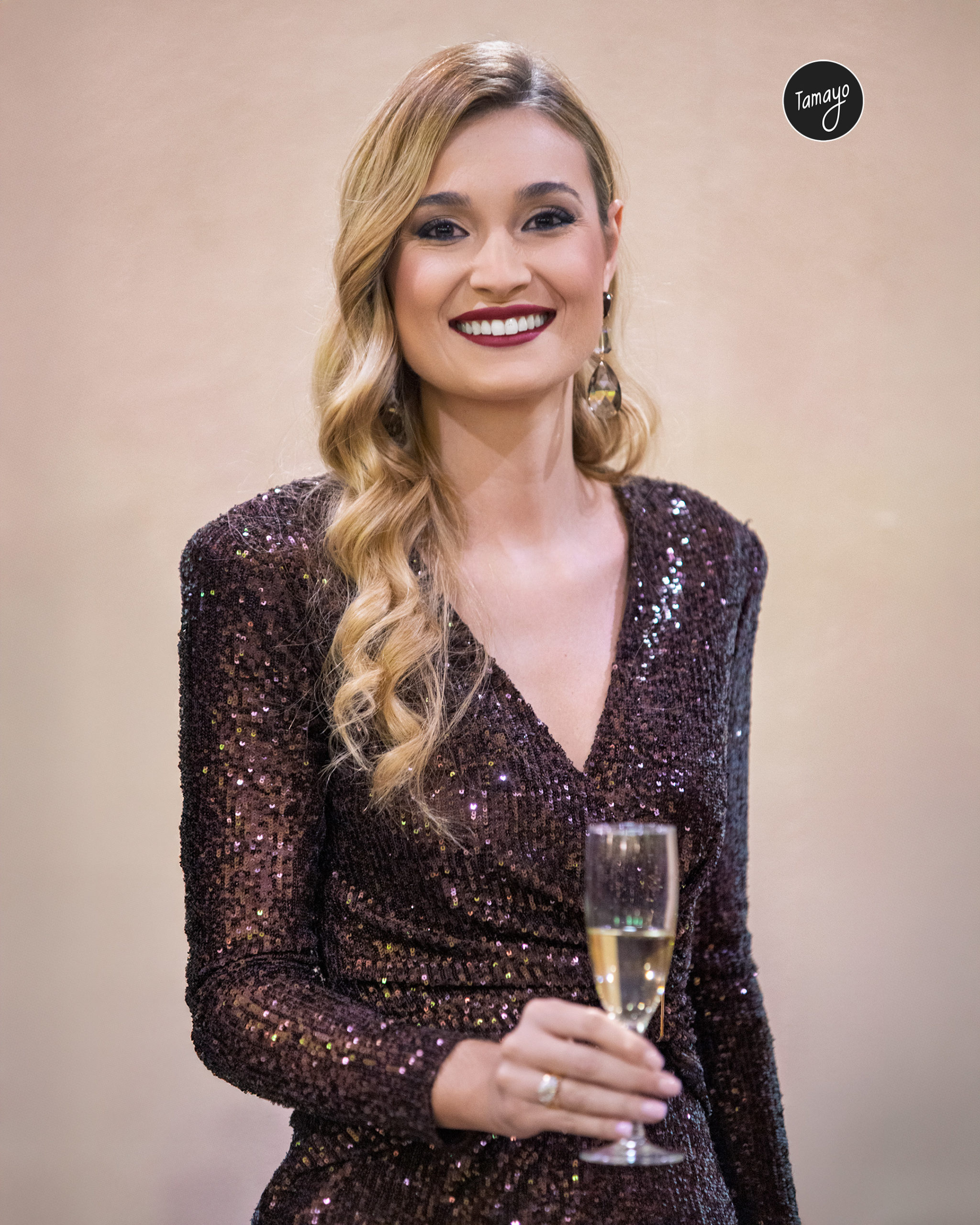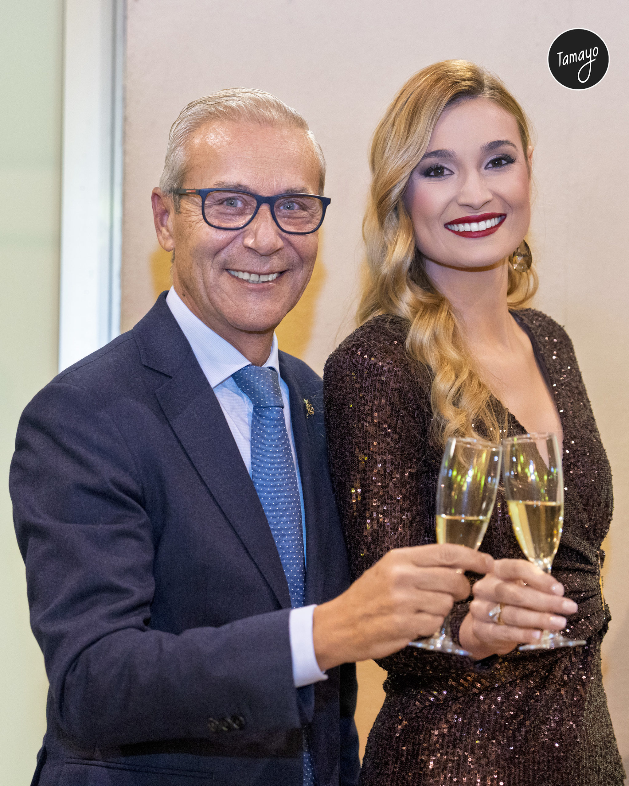 Para completar su indumentaria, María Estela lució un aderezo de racimo en oro de 18 quilates con brillantes en talla rosa, acompañado de joia, pinchos, pendientes, collar y una pulsera de siete tiras de perlas de Art Antic, además de unas espectaculares puntillas de Santos Textil.