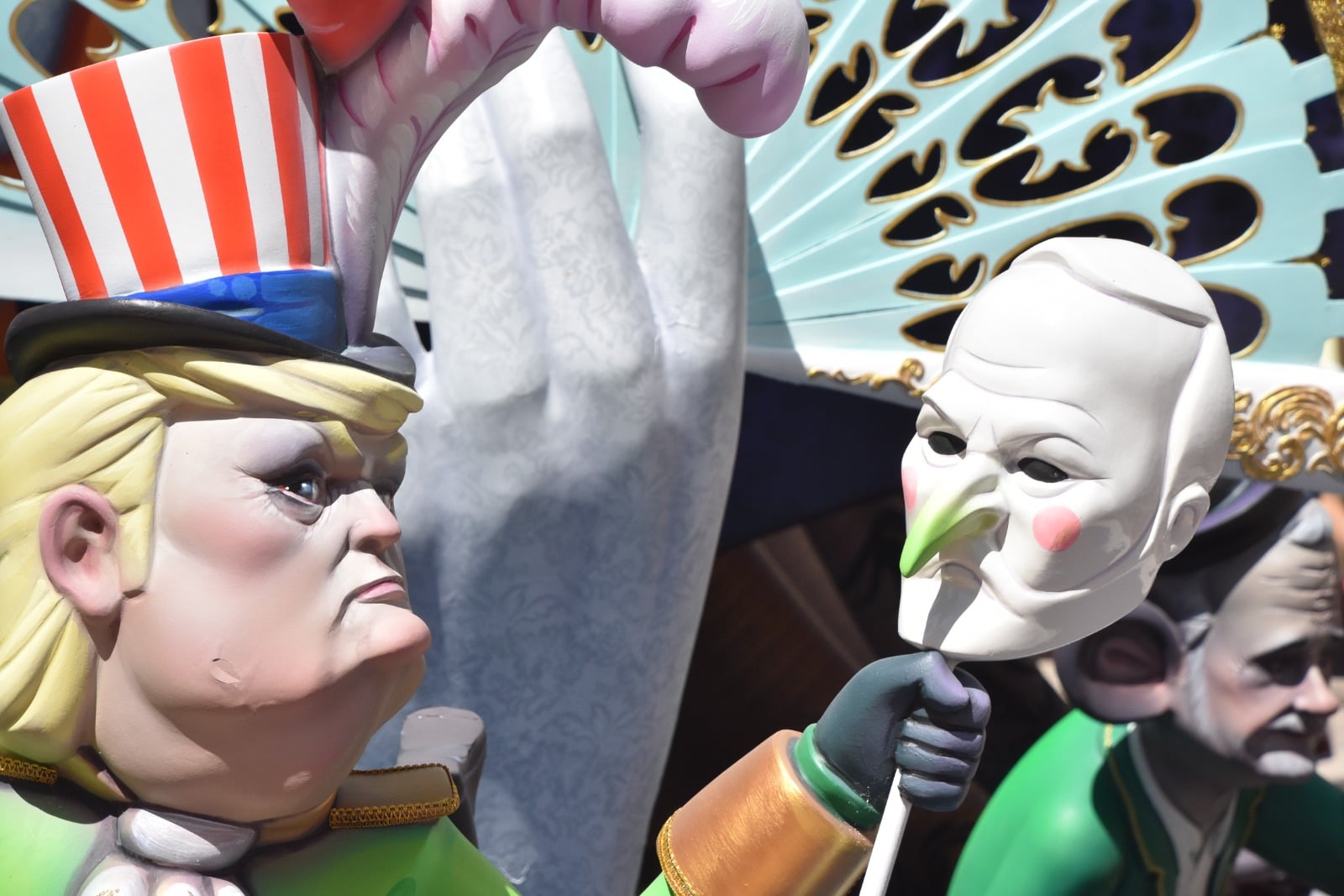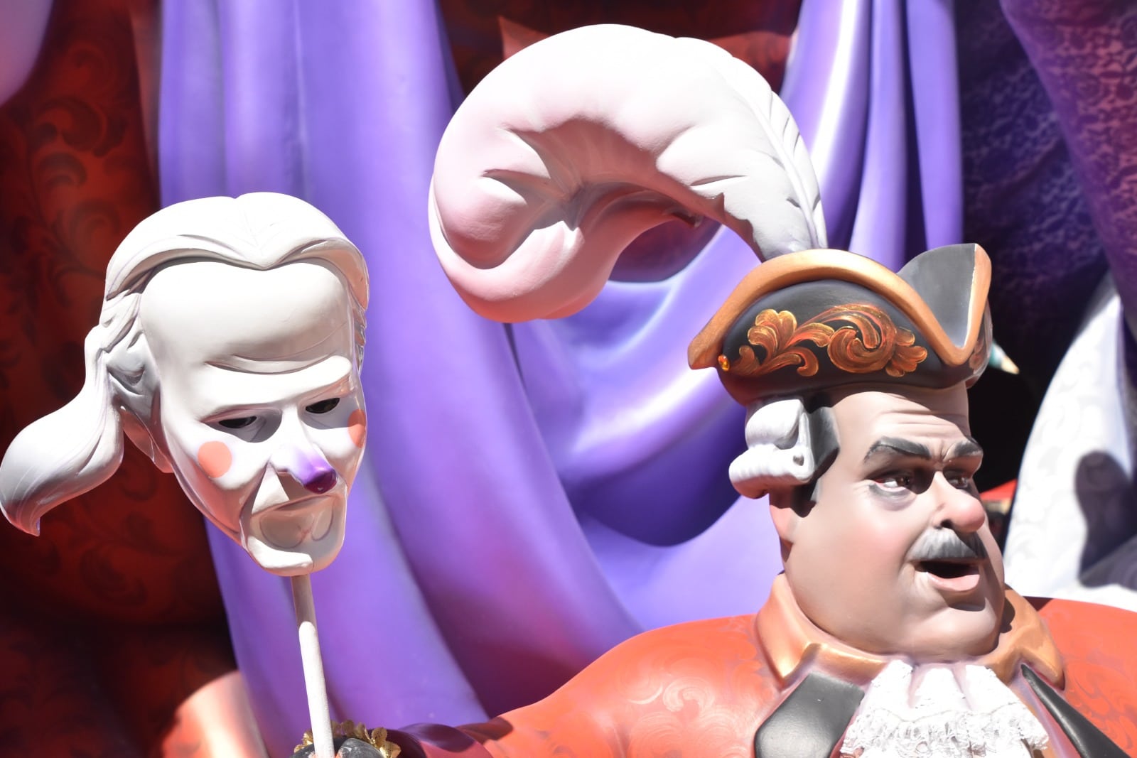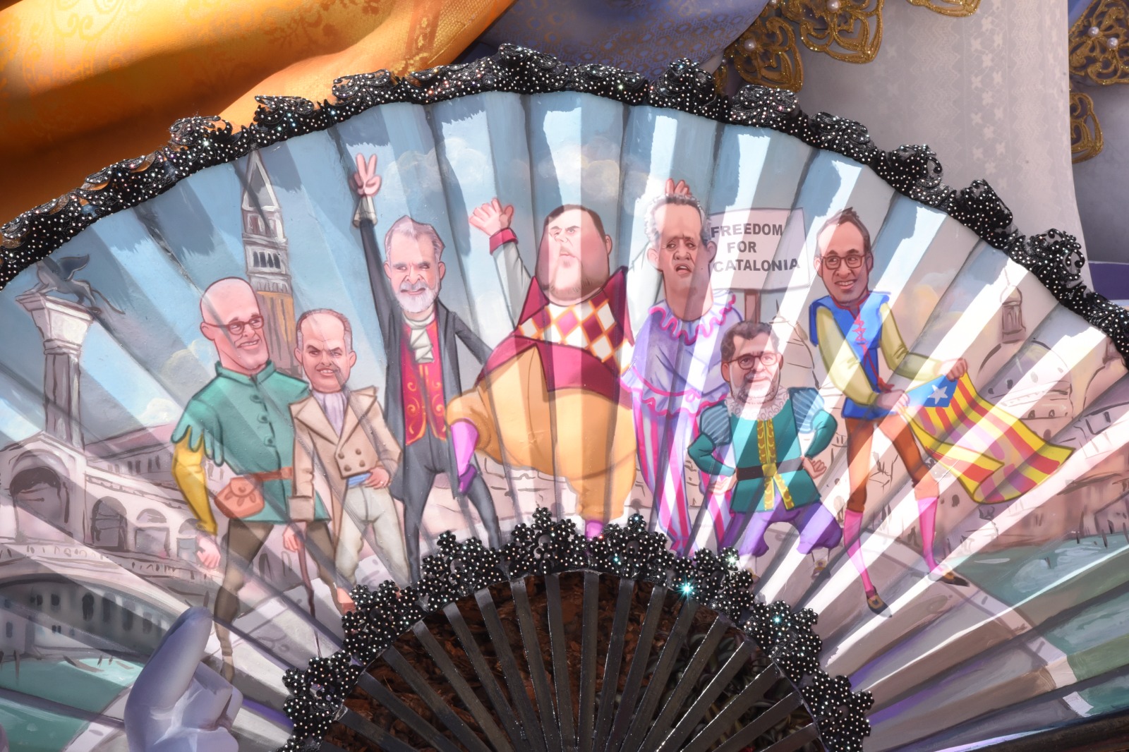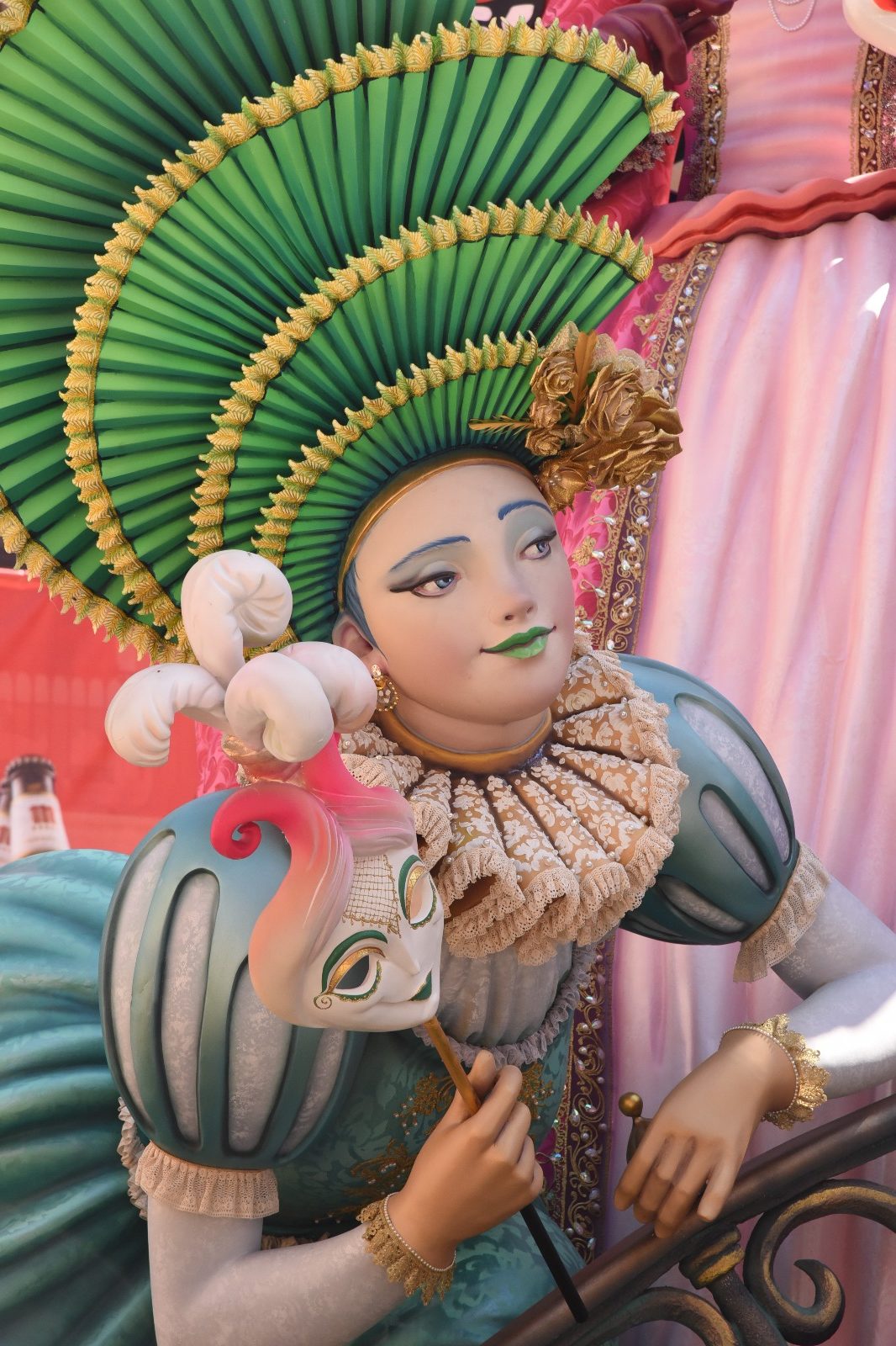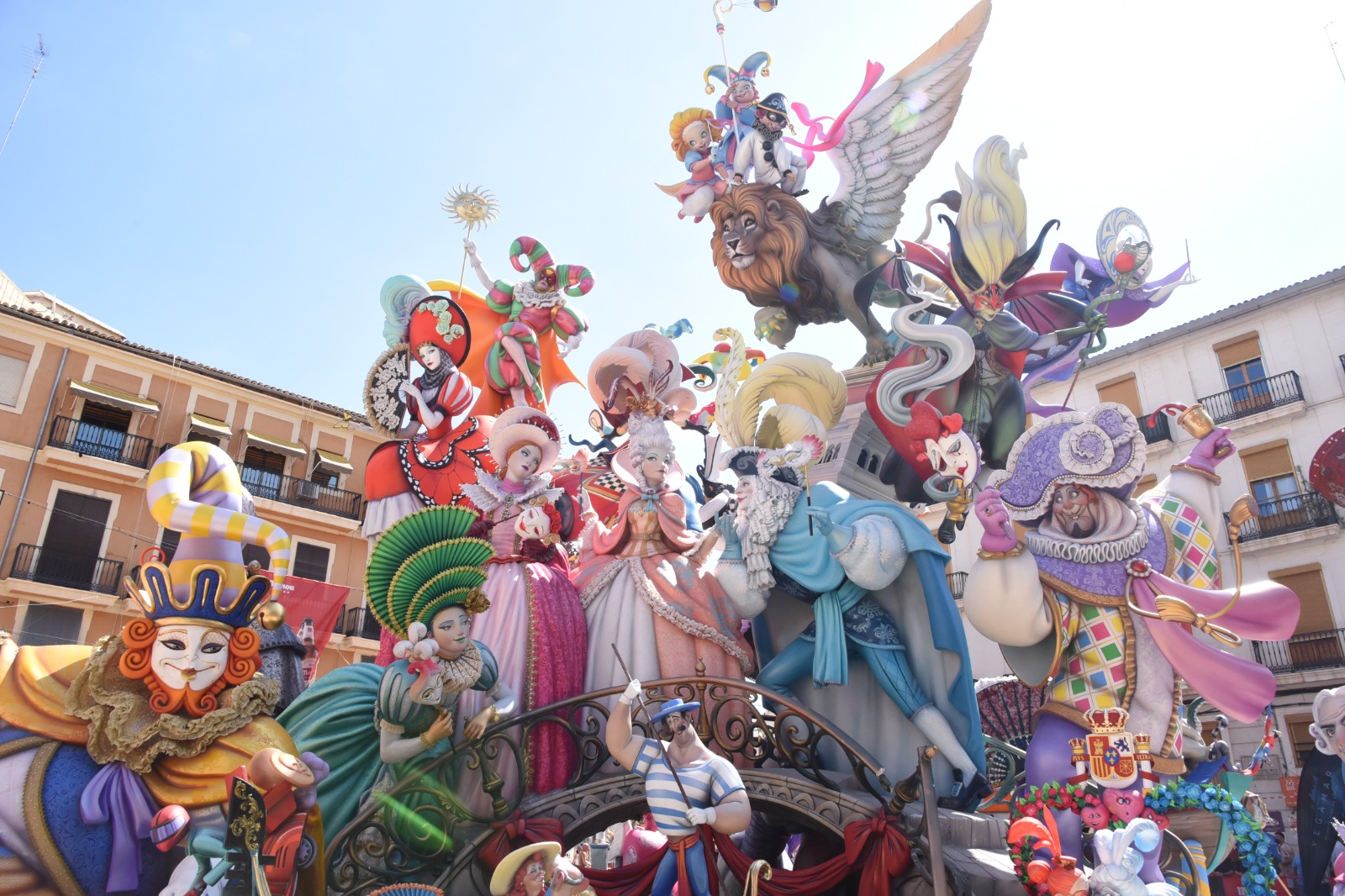 La composición fallera, que ha costado 210.000 euros, tiene 30 figuras y una altura de 14 metros, está ambientada en Venecia y recrea su carnaval, con góndola y animales mitológicos incluidos, para desenmascarar a todos aquellos personajes que ocultan sus verdaderas intenciones tras una engañosa máscara, y desde su plantà es una de las más visitadas y fotografiadas.