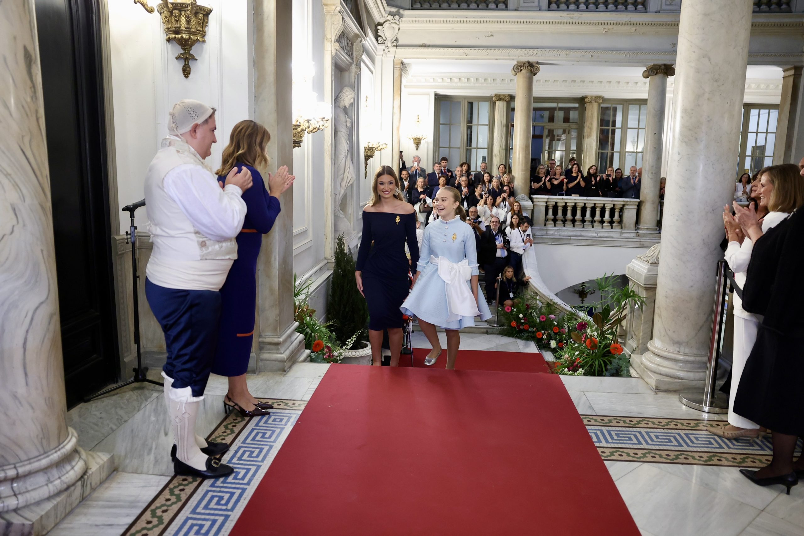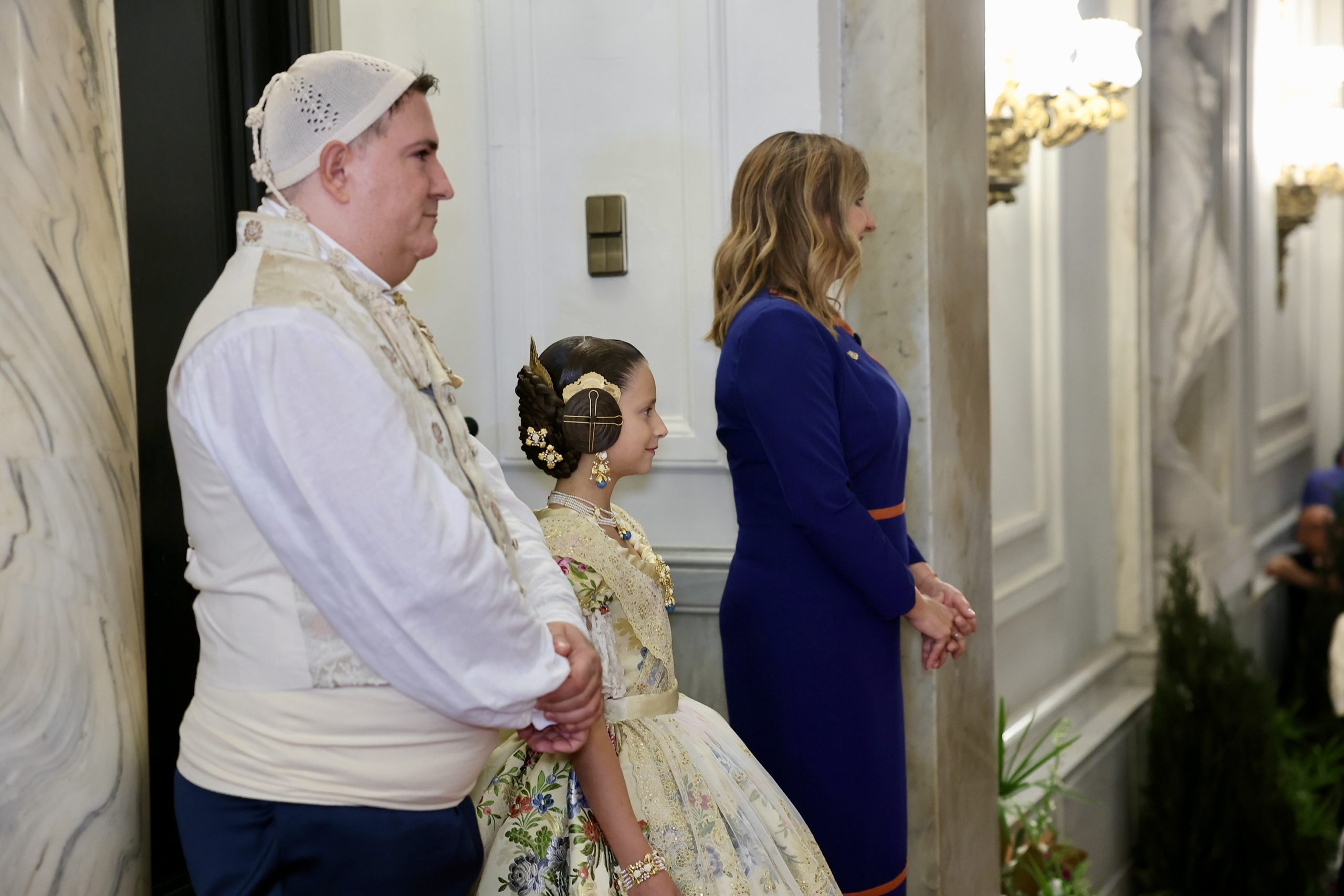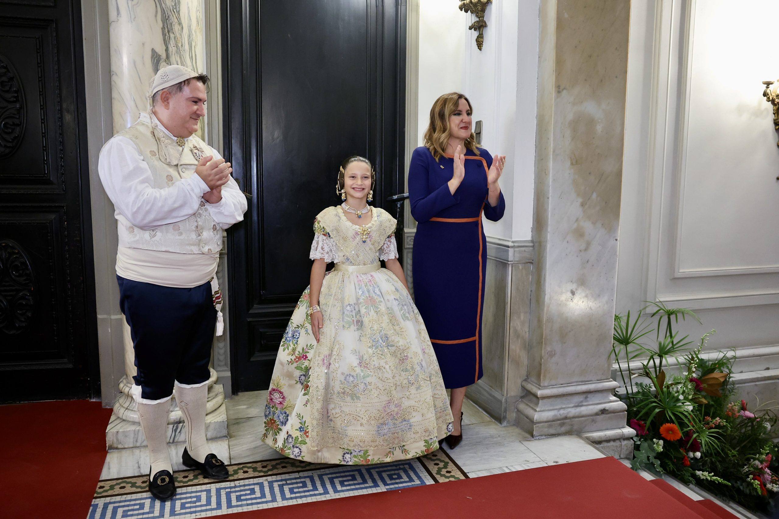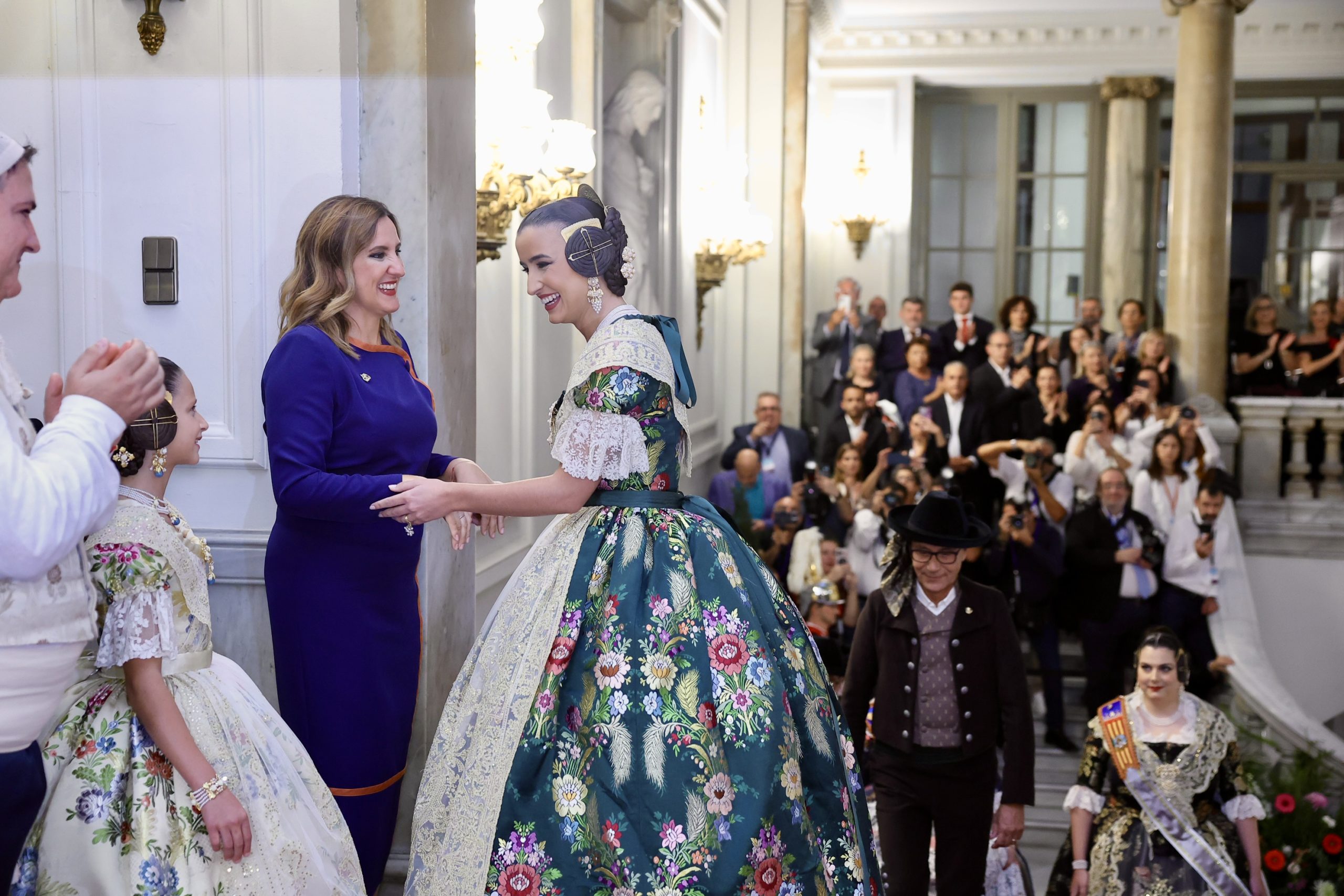 Las Falleras Mayores entraron al Salón de la Chimenea, un espacio emblemático donde se reunieron las autoridades, incluyendo concejales y representantes de las Fallas. Posteriormente, la ceremonia se trasladó al Hemiciclo del Ayuntamiento, donde la alcaldesa de Valencia proclamó a Berta Peiró como Fallera Mayor Infantil de Valencia 2025 y a Lucía García como Fallera Mayor de Valencia 2025. Ambas ofrecieron sus primeros discursos como máximas representantes de las Fallas, destacando su orgullo y compromiso con la fiesta.
