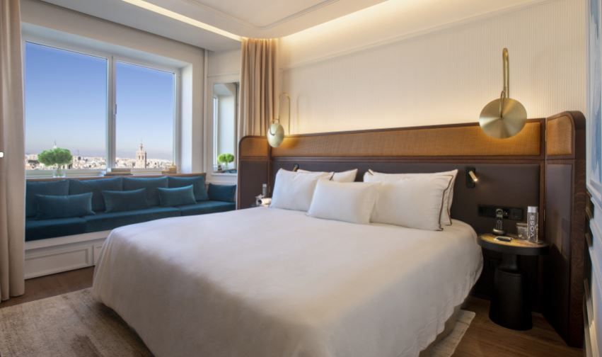 Las habitaciones, decoradas como el resto del edificio por el  interiorista Lázaro Rosa-Violán, son frescas, elegantes y atemporales. Destacan las ‘homie suites’, con zona de estar, cocina completamente equipada y balcón con vistas a la ciudad, y la estrella del hotel, la ‘panorama suite’, con más de 80 metros cuadrados.