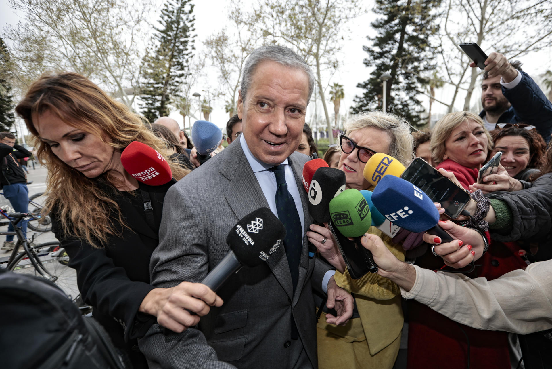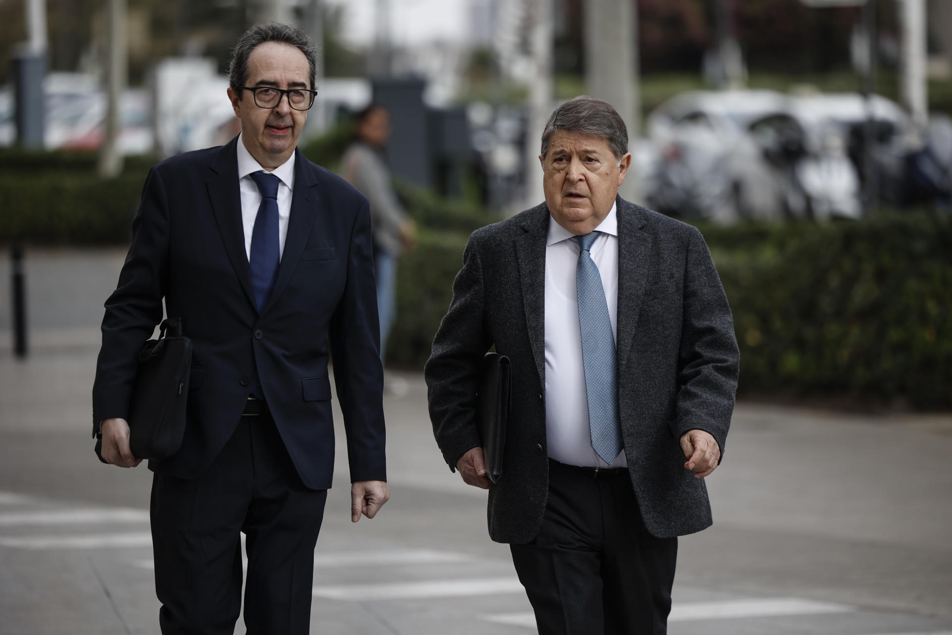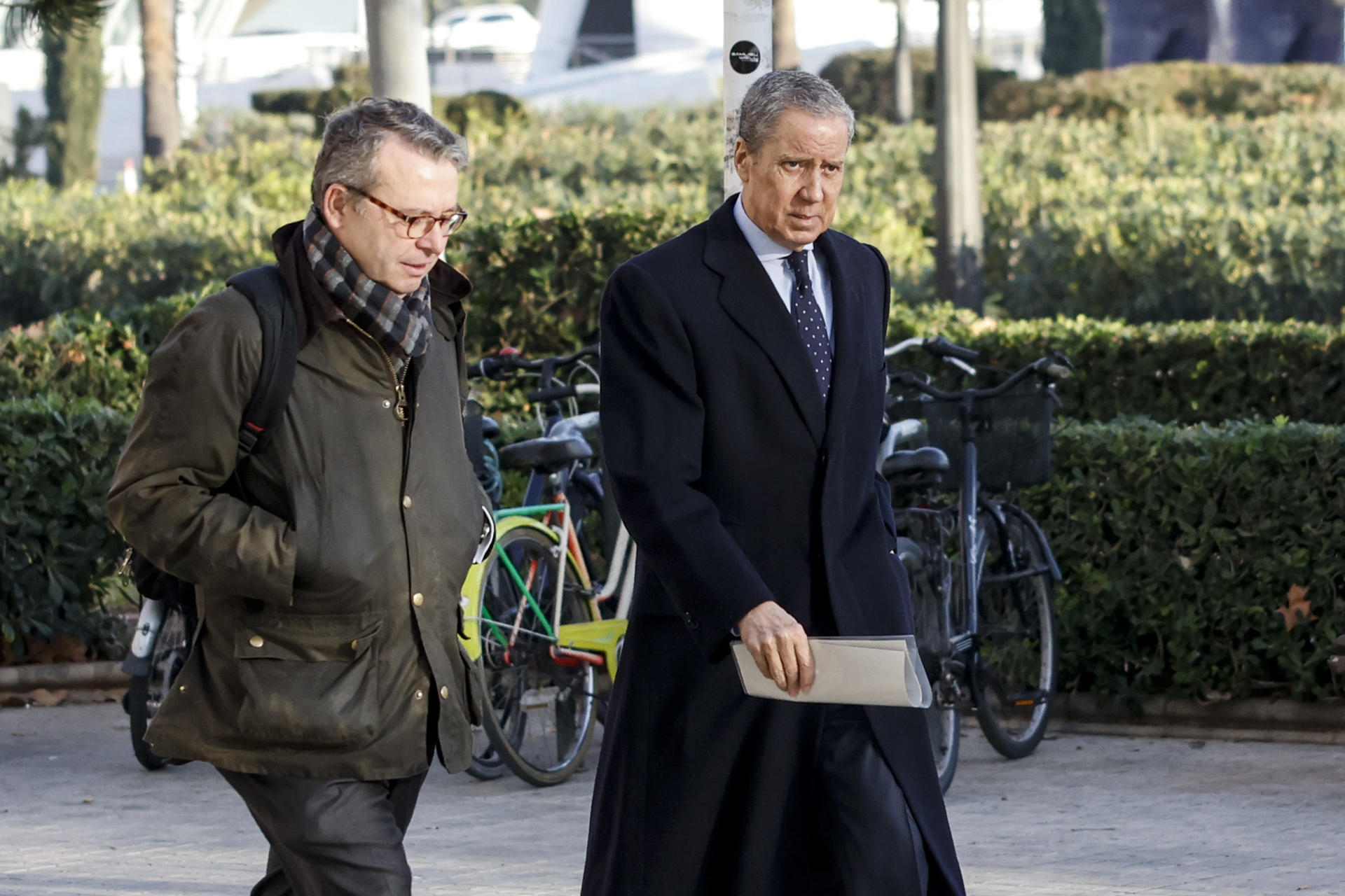El exministro y expresident de la Generalitat Eduardo Zaplana (d), a su llegada a la Ciudad de la Justicia de València. EFE/Ana Escobar
