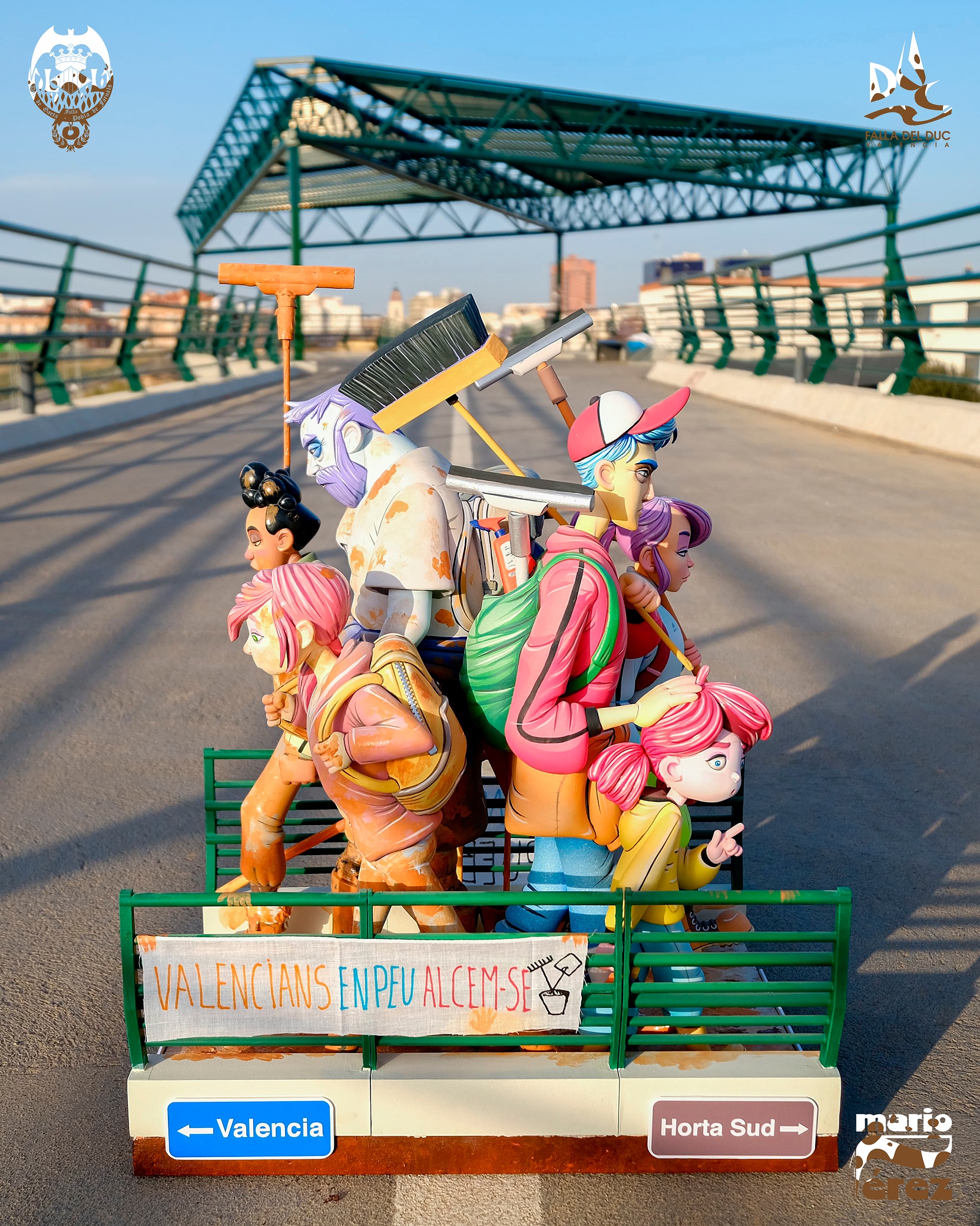 El diseño del ninot, a cargo del reconocido artista fallero Mario Pérez, refleja de manera delicada y emotiva la importancia de la solidaridad y el trabajo colectivo en momentos de crisis.