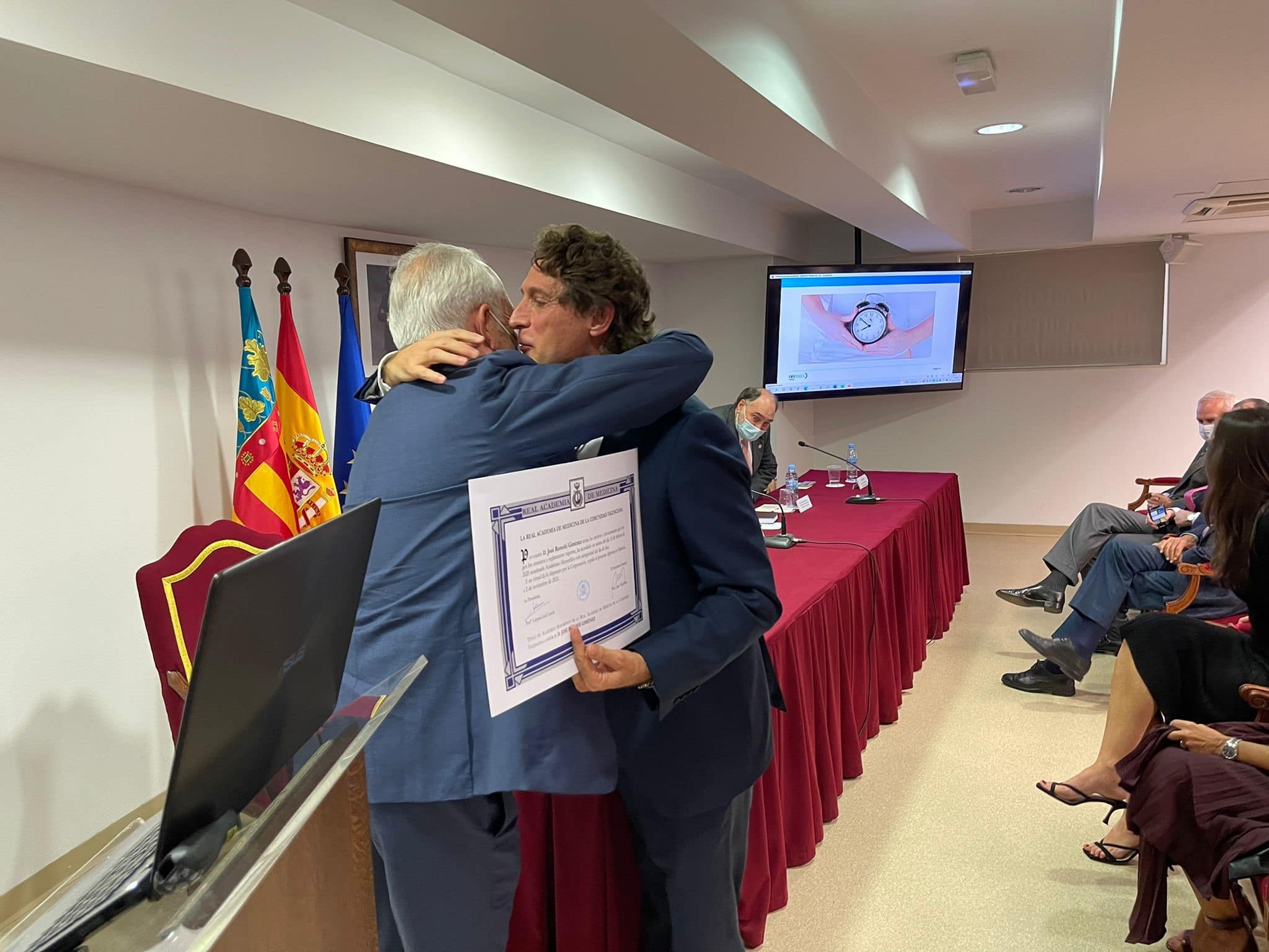 Tras su aplaudido discurso, José Remohí ha recibido el Título bajo la atenta mirada de los académicos y compañeros entre los que se encontraba el oncólogo Vicente Guillem, el director del IVO Manuel Llombart, el ginecólogo Fernando Bonilla y el traumatólogo Enrique Gastaldi, entre otros.