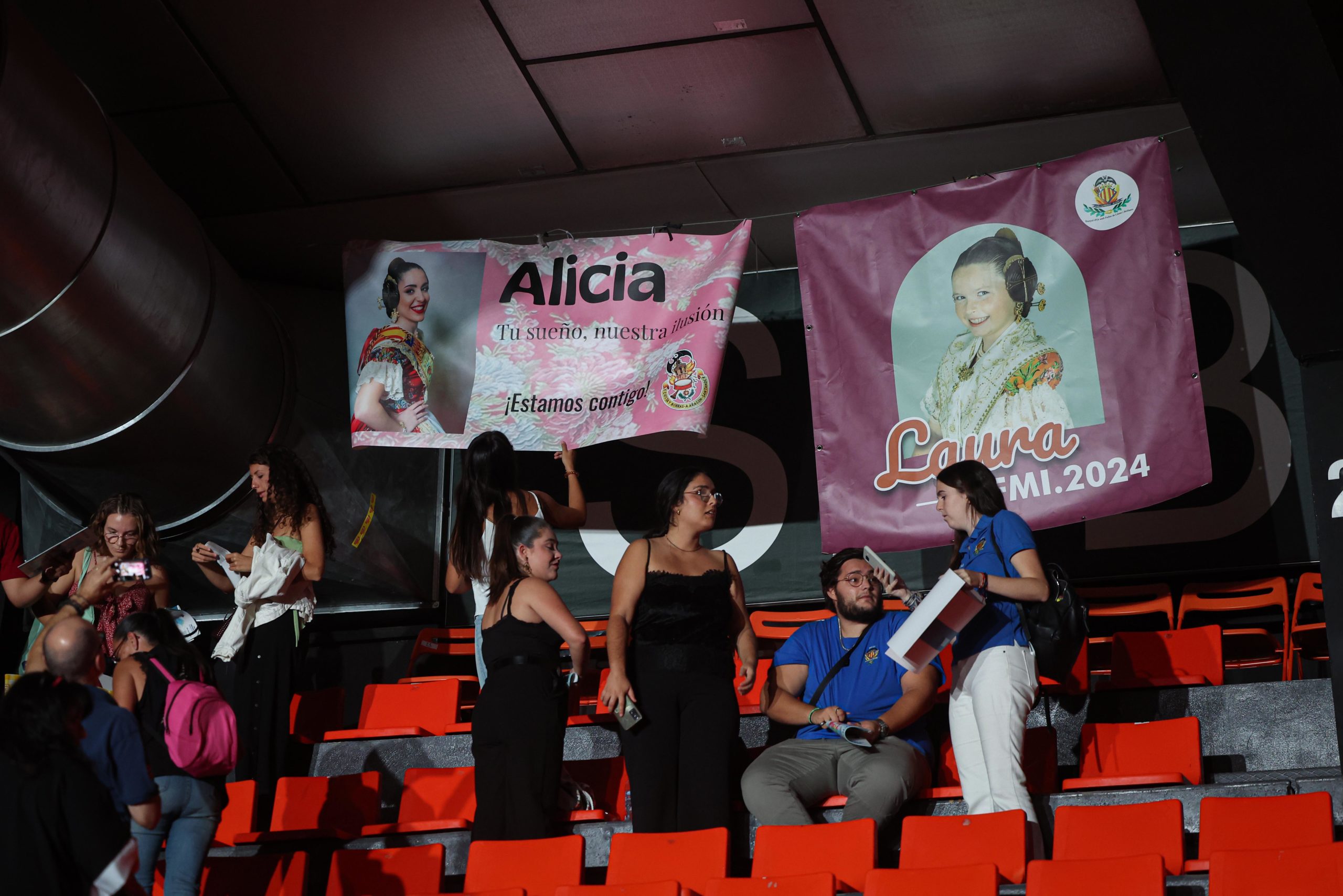Con 7.392 localidades disponibles, el público se mostró entusiasta y participativo, ocupando cada rincón de la Fonteta. Las comisiones falleras con candidatas disfrutaron de 22 entradas, mientras que aquellas sin representante tuvieron acceso a 4. El evento comenzó puntualmente a las 20:00 horas, con la apertura de puertas a las 18:00 horas y la lectura del veredicto a las 22:46 horas, tal y como estaba previsto en el programa oficial. Esta puntualidad ejemplar contribuyó a la fluidez del evento, manteniendo a los asistentes completamente inmersos en la celebración.