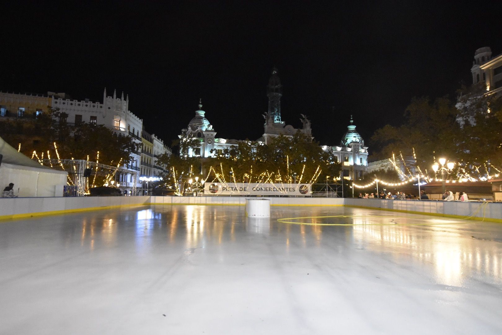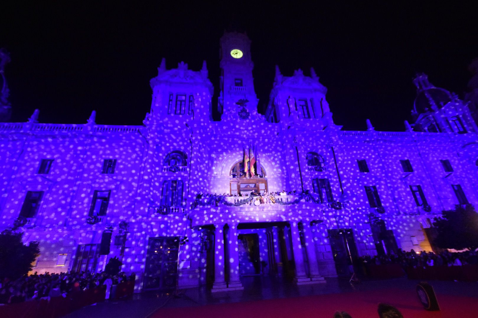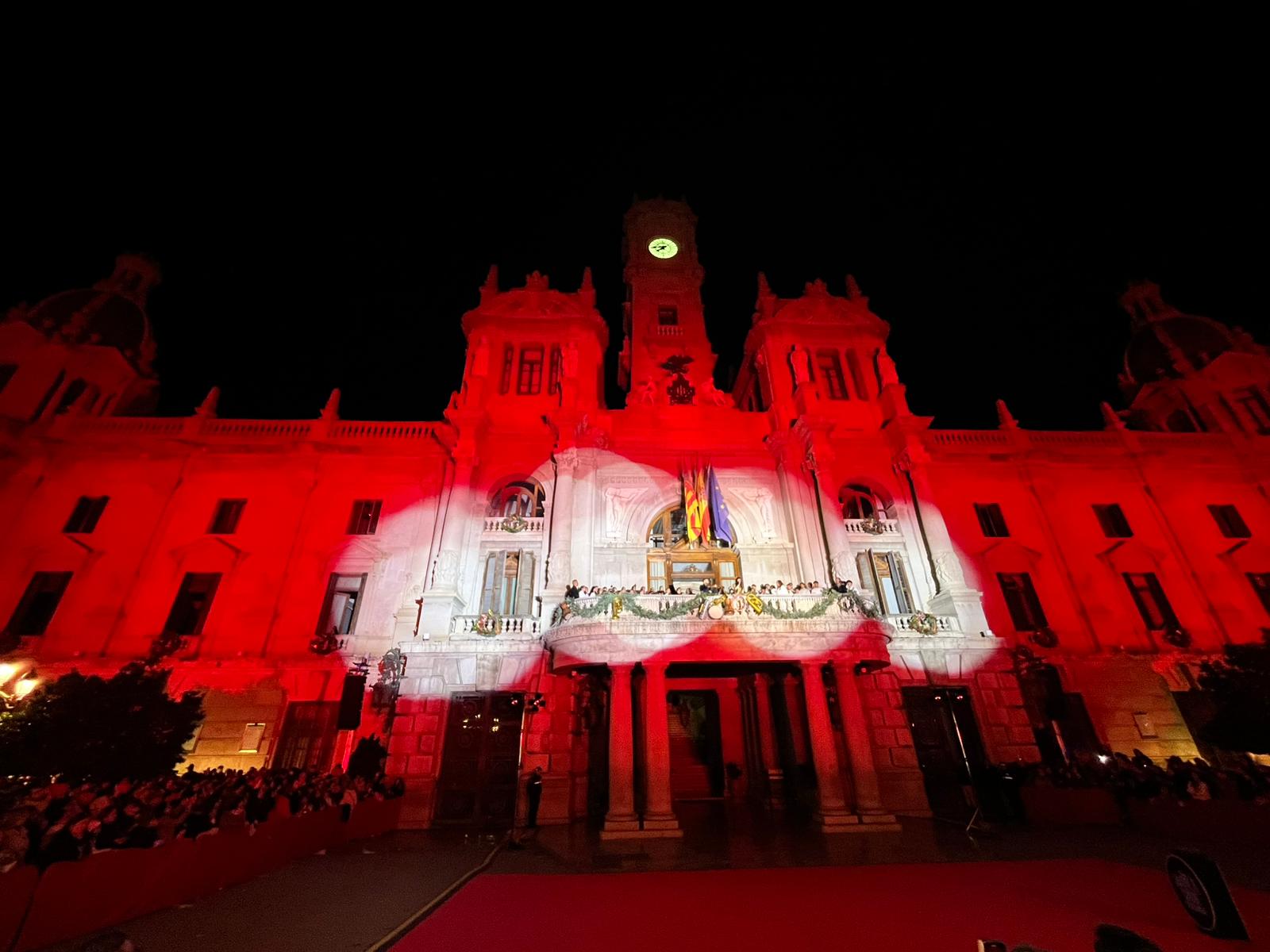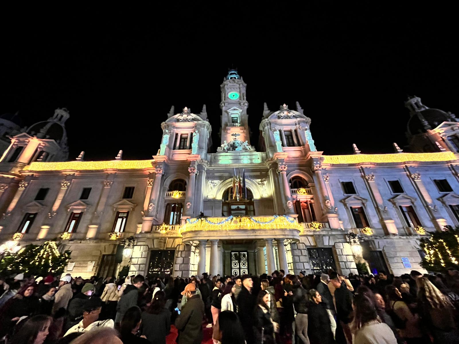 Antes del inicio del espectáculo, las luces de la plaza se han apagado por completo para centrar la atención del público en la fachada del Ayuntamiento y realzar todavía más el momento del encendido festivo. Esta técnica, habitual en las grandes capitales europeas, potencia el impacto visual y convierte el acto en un atractivo turístico más de la temporada.