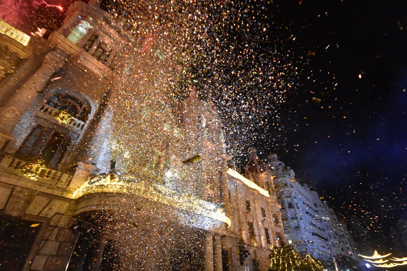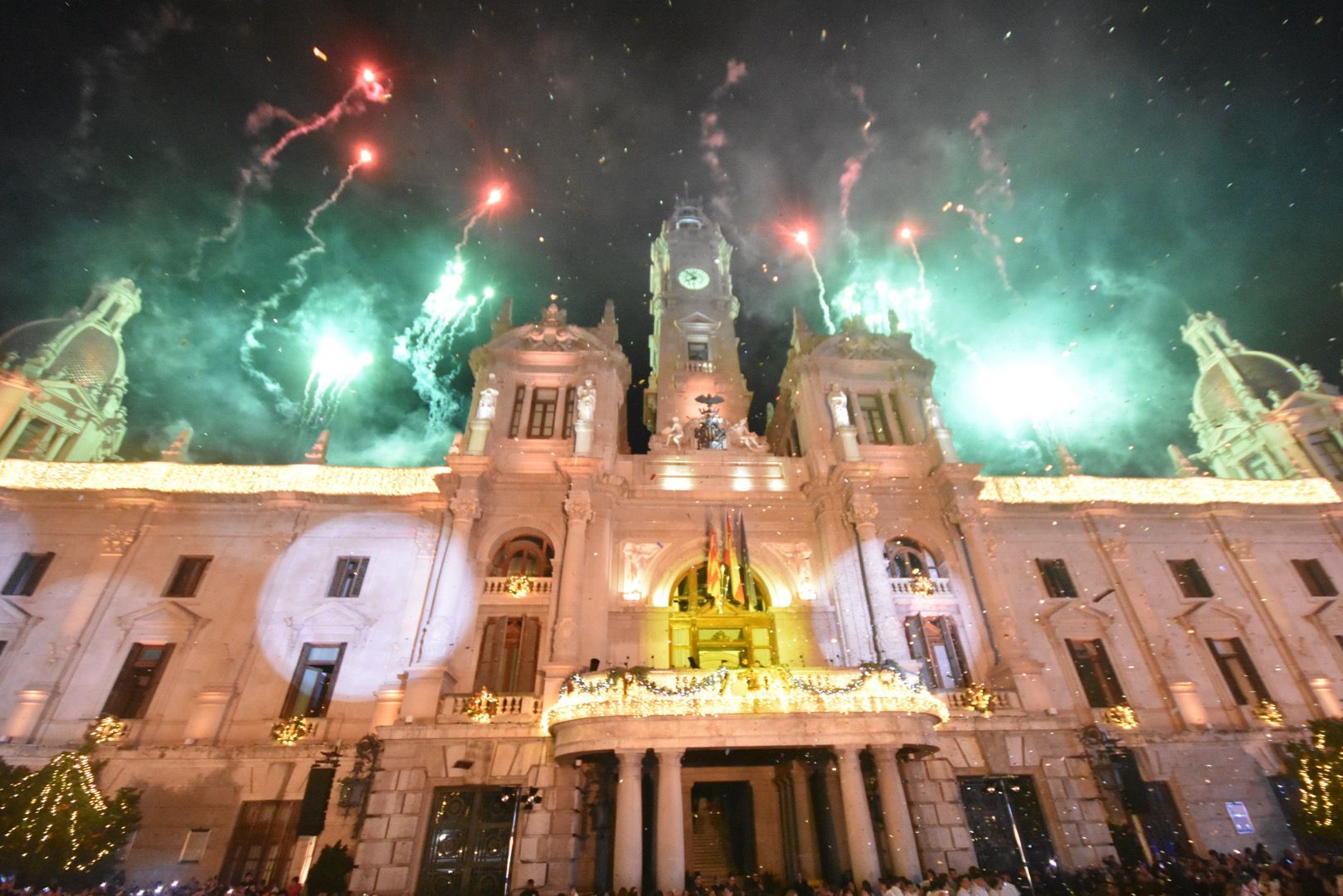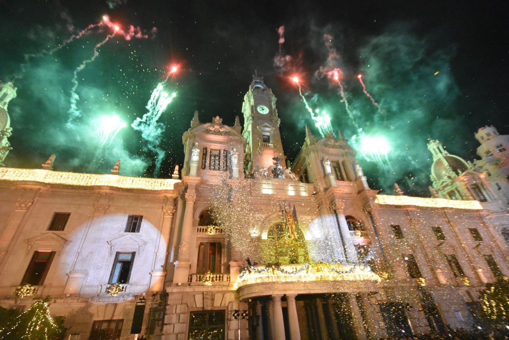 El público asistente ha coreado la cuenta atrás que culminó con el encendido de las luces por parte de las falleras mayores de València, Carmen Prades y Marta Mercader, junto a la alcaldesa, María José Catalá. En ese instante, un estallido de confeti abrió paso a un espectáculo piromusical de Pirotecnia Valenciana, que iluminó la plaza y subrayó la importancia que tiene la pirotecnia en la cultura valenciana.