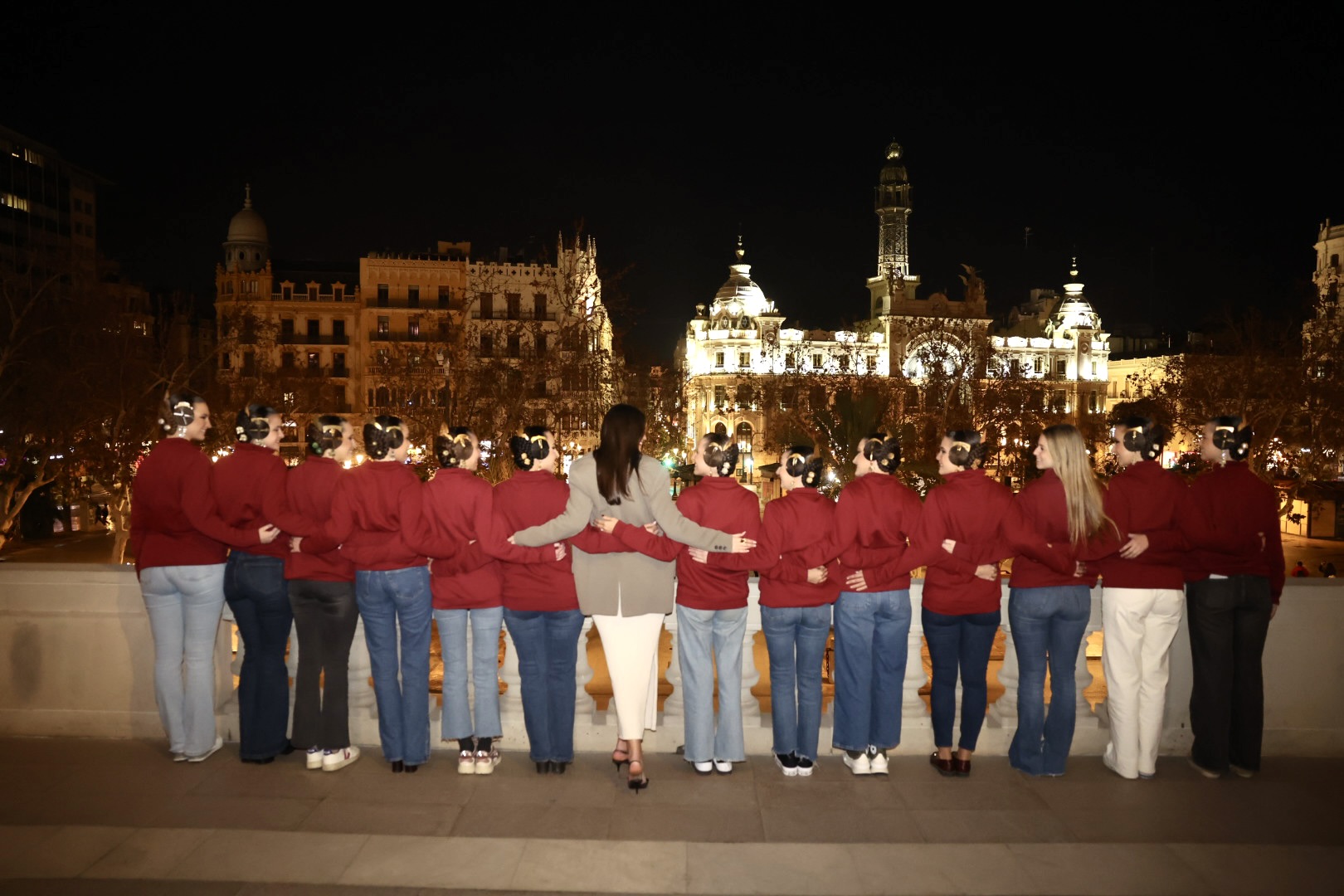 Mientras tanto, las falleras mayores de Valencia y los mantenedores del acto tuvieron la oportunidad de subir al camarín de la Virgen, un privilegio reservado a momentos muy especiales. Allí pudieron vivir de cerca uno de los instantes más personales de la noche, en un clima de respeto, tradición y emoción compartida.
