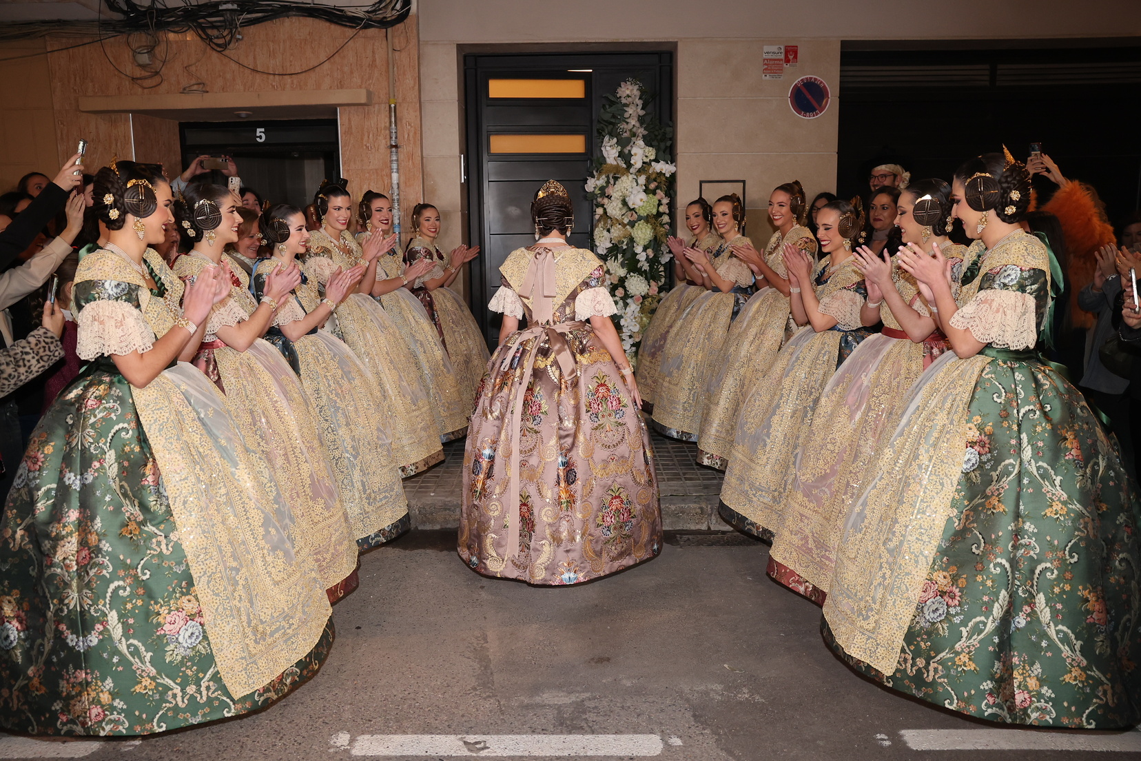 El ensayo de la dansà de las Falleras Mayores y sus Cortes