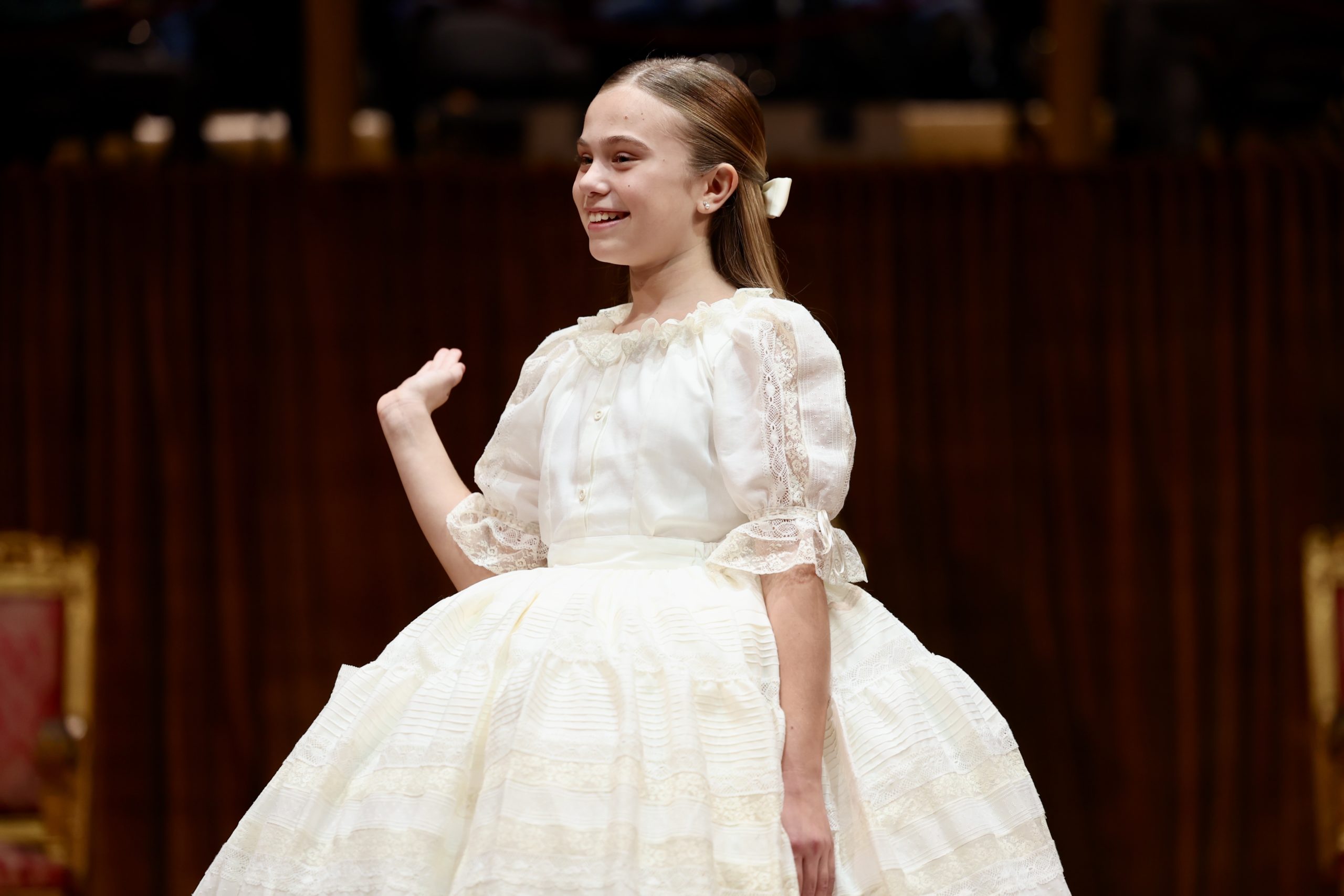 Una elección impecable para una Fallera Mayor Infantil de Almirante Cadarso 2026 que inicia su camino con luz propia.