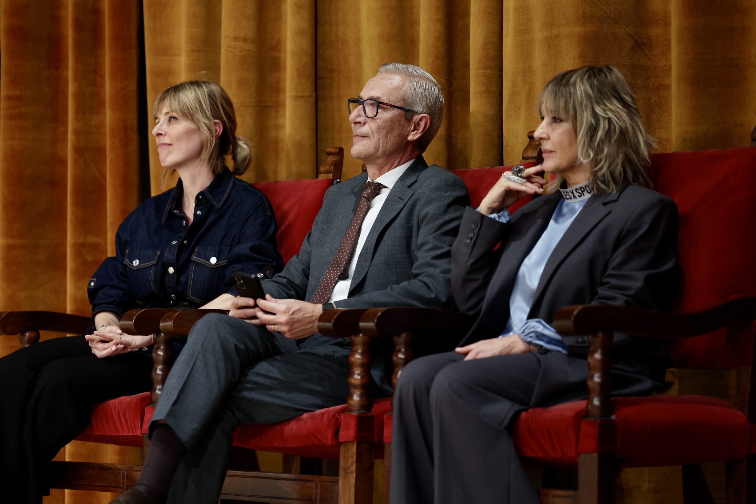 El tejido es un espolín de cartonaje “Espigas de Montserrat, una elección elegante y con mucha personalidad, tejido por Garín, firma histórica y referente indiscutible en la sedería valenciana. Un dibujo que destaca por su equilibrio entre clasicismo y fuerza visual.