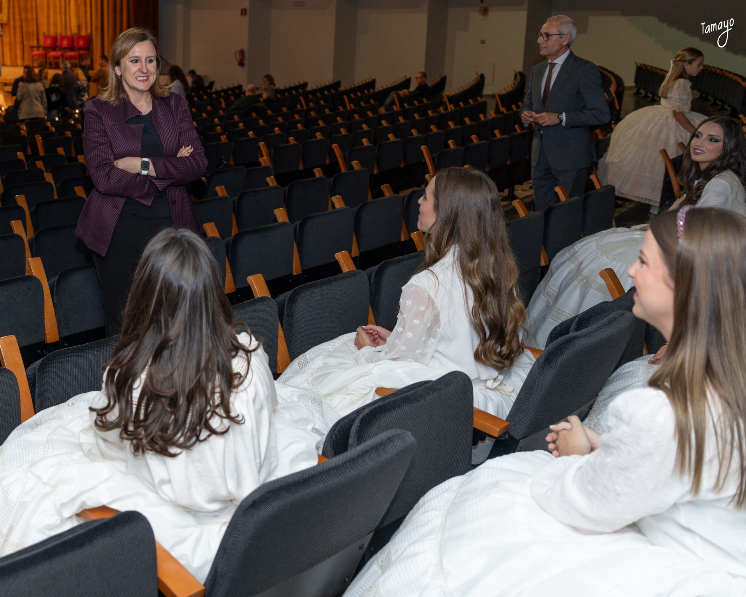 Berta Peiró y Lucía García acompañadas de sus Cortes, mantenedoras y también de las principales autoridades del acto, como Maria José Catalá y el concejal de Fallas Santiago Ballester  ha participado con mucha atención del ensayo de los dos grandes días de las máximas representantes de la fiesta.