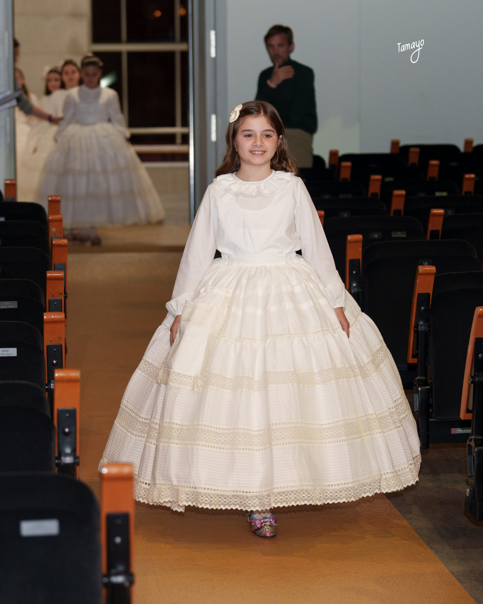 El trabajo de José Polit logra que el espolín luzca con equilibrio, elegancia y presencia, adaptado a la figura infantil con una naturalidad que demuestra oficio, sensibilidad y un profundo conocimiento de la indumentaria tradicional valenciana.
