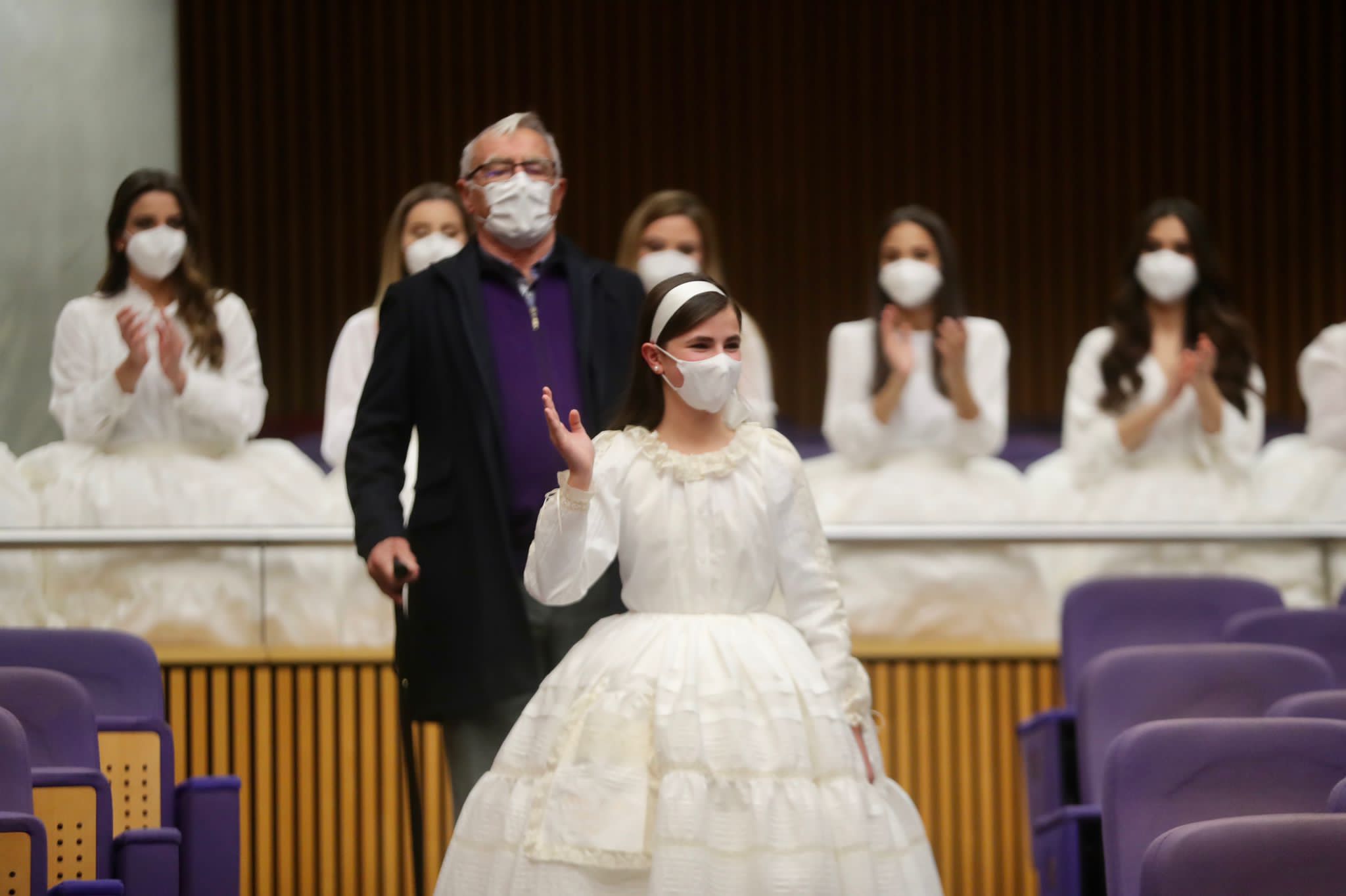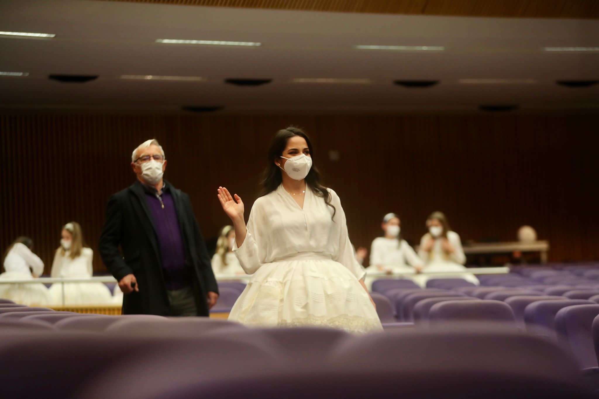 Las Falleras Mayores de València y las componentes de sus Cortes de Honor se han mostrado nerviosas y emocionadas cuando apenas queda una semana para vivir el momento en que oficialmente recibirán la banda que las distingue como Falleras Mayores de València. Durante los ensayos, el alcalde de València, Joan Ribó, y el presidente de Junta Central Fallera, Carlos Galiana, han compartido con ellas sus vivencias y momentos previos de emoción.