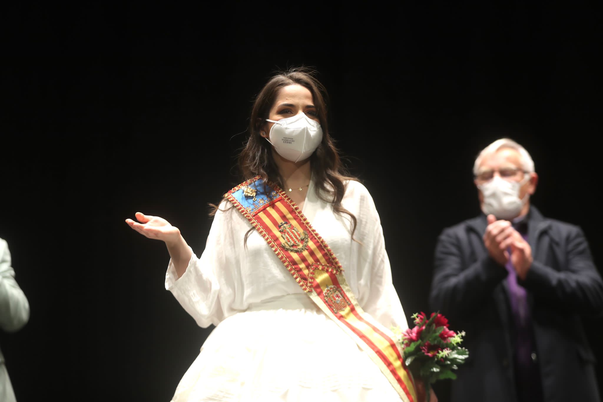 María Estela Arlandis sorprendió con un espolín de color blanco como Fallera Mayor de Valencia 2024.