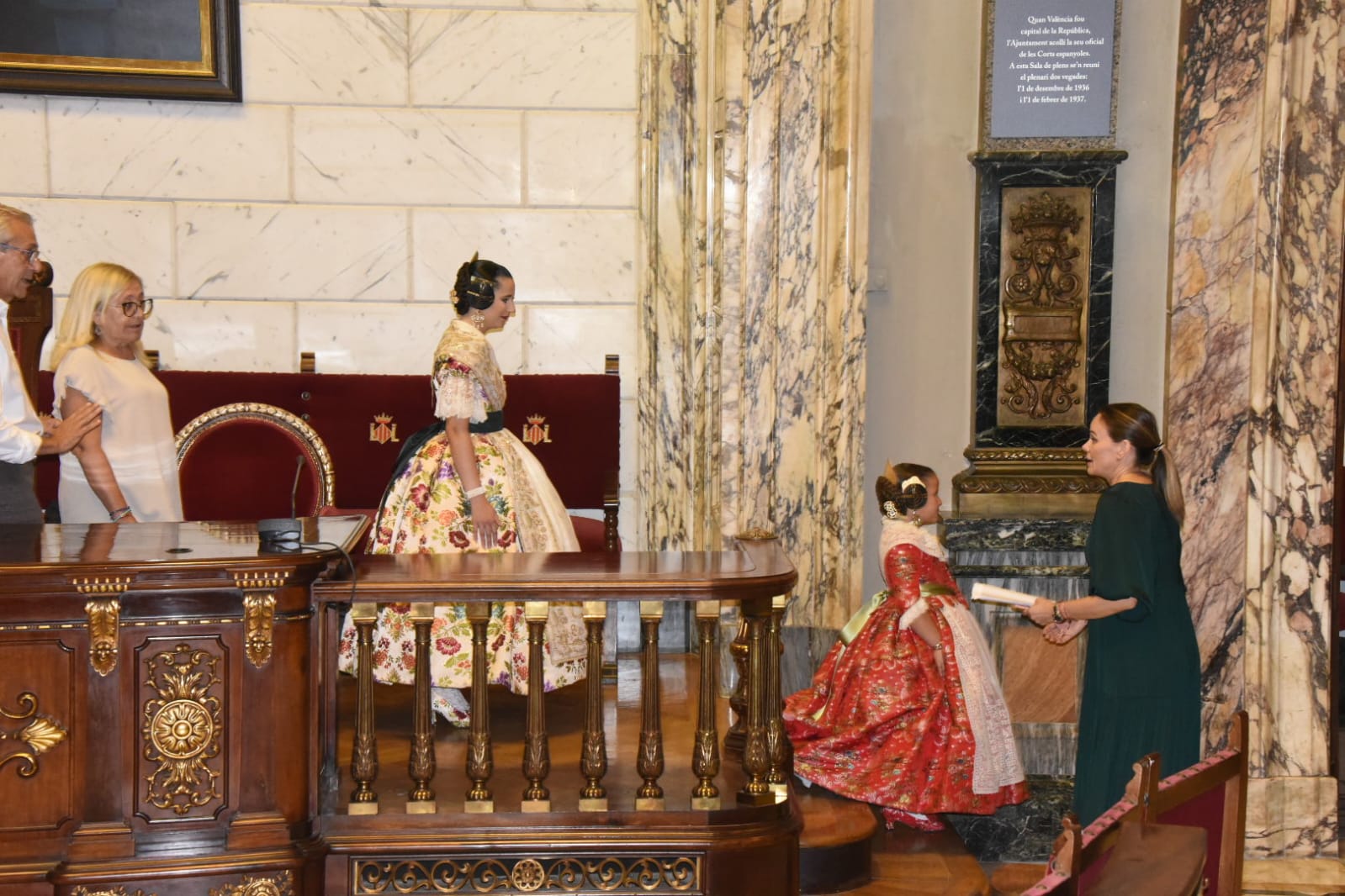 En primer lugar, pasan por el Salón de la Chimenea, donde concejales y autoridades también estarán presentes. Posteriormente, se pasará al Hemiciclo para recibir, con todos los honores, a las nuevas Falleras Mayores de Valencia. Que en ese momento, serán proclamadas como tales ante el mundo fallero.