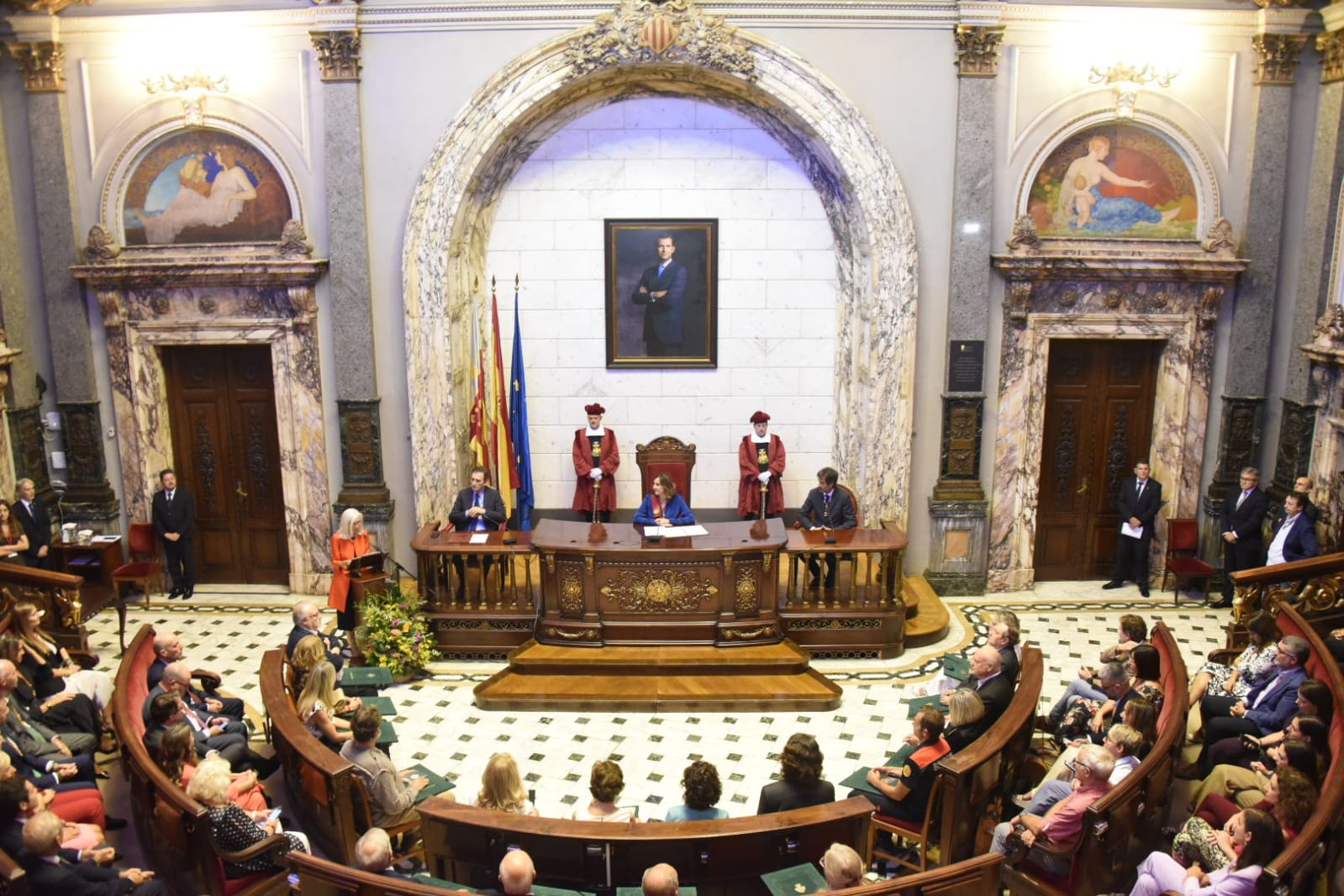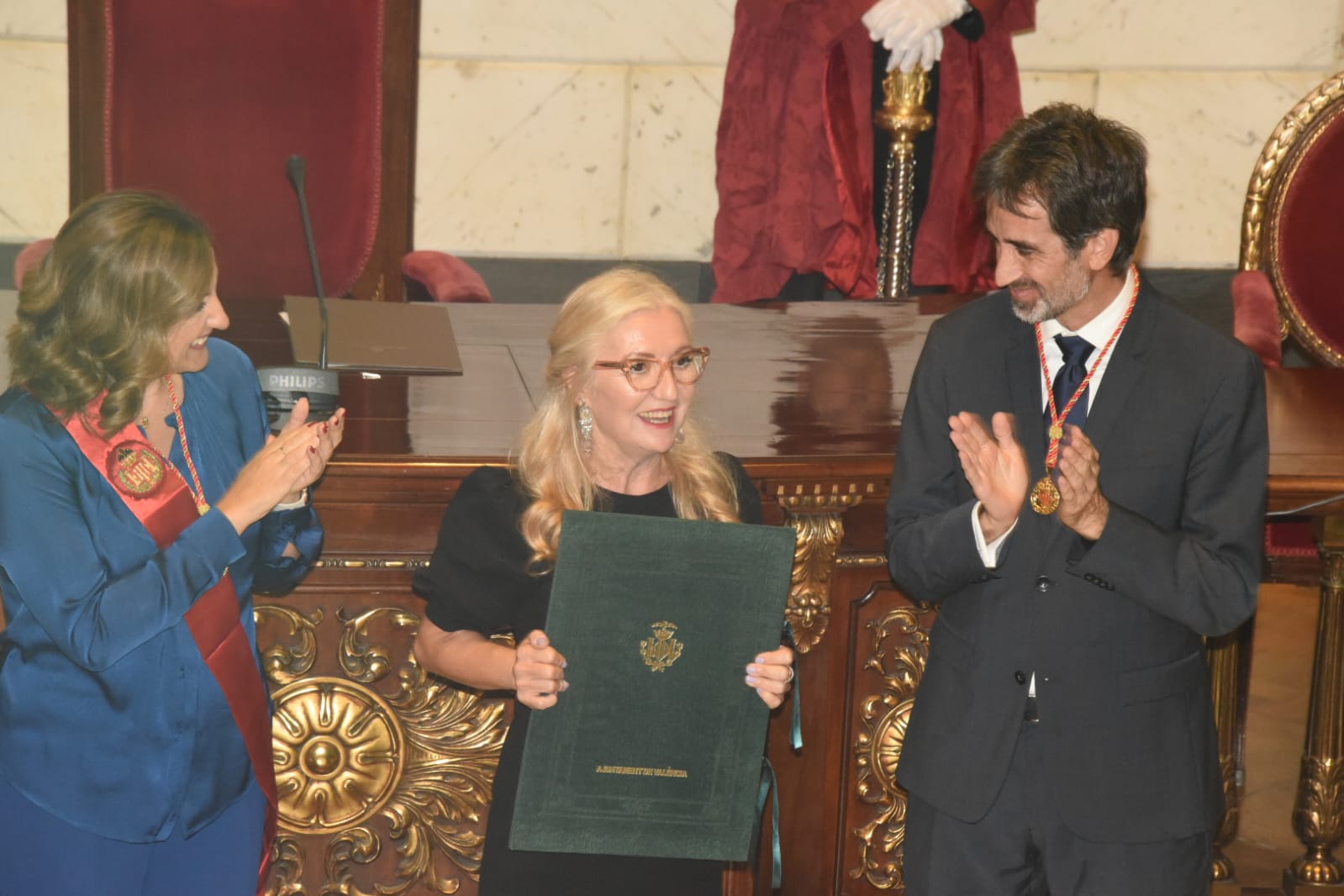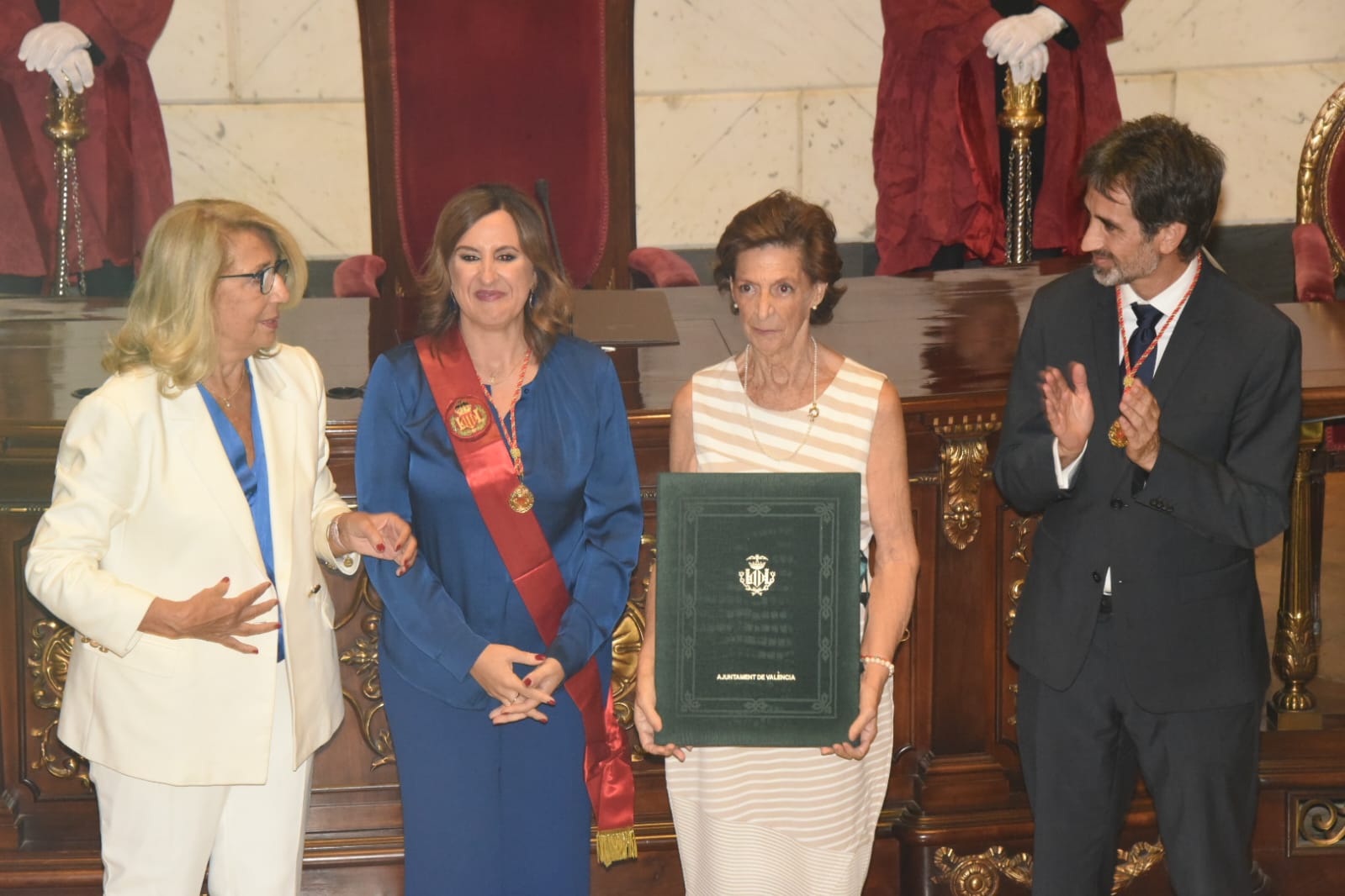 El homenaje municipal ha tenido lugar en una solemne sesión en el hemiciclo que ha contado con la presencia, entre otras autoridades, del president de la Generalitat, Carlos Mazón, y de la vicepresidenta del Consell, Susana Camarero. Mientras que el título a Rita Barberá (Valencia, 1948-Madrid, 2016) ha sido recogido por dos de sus hermanas.