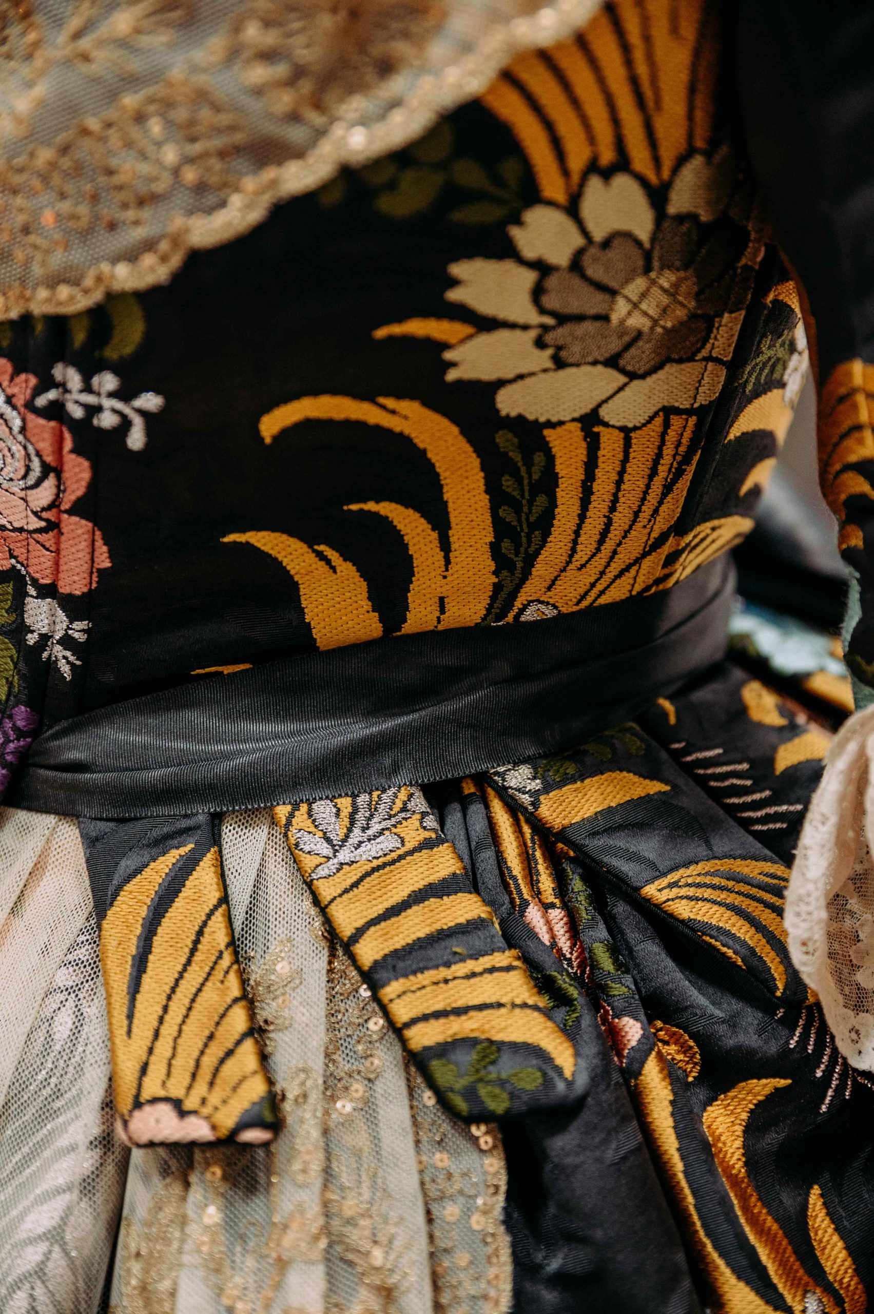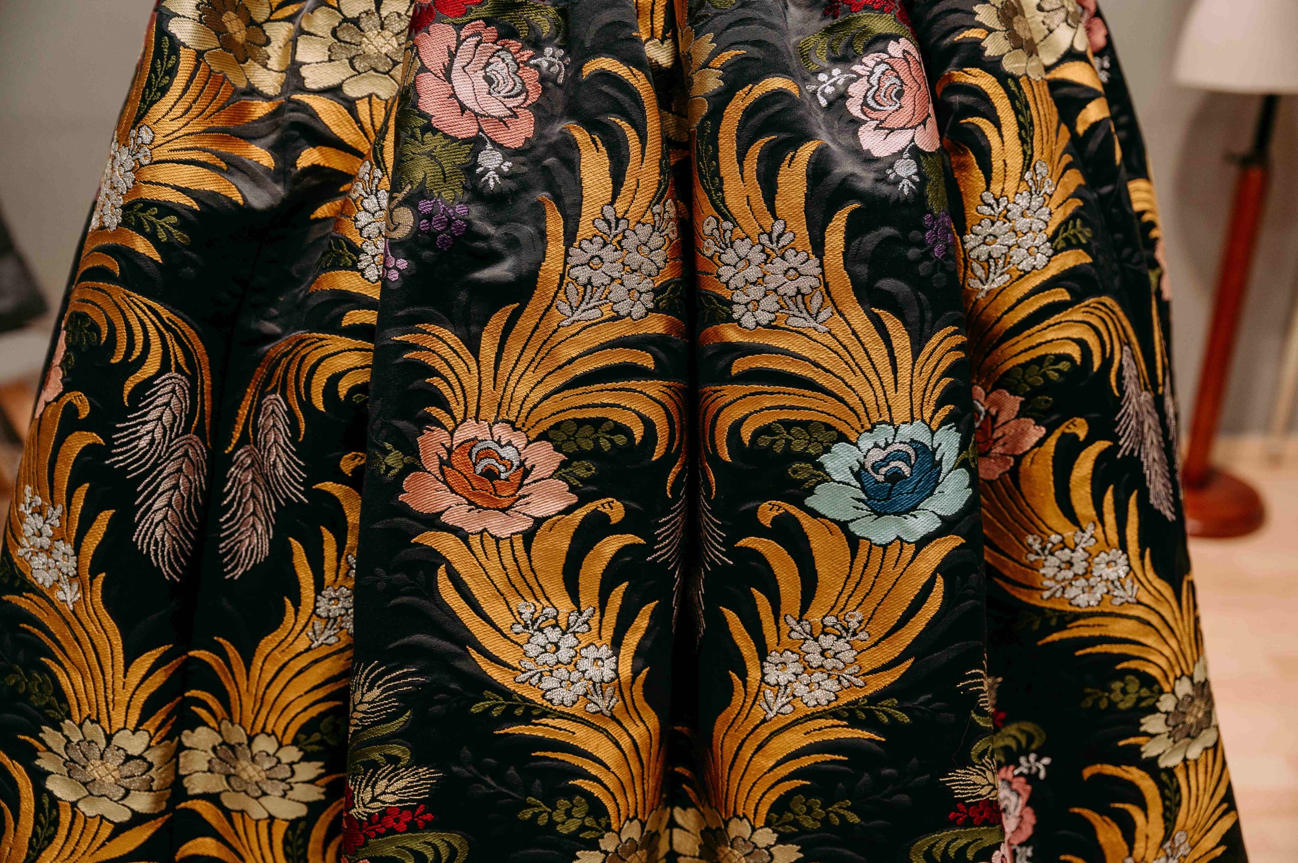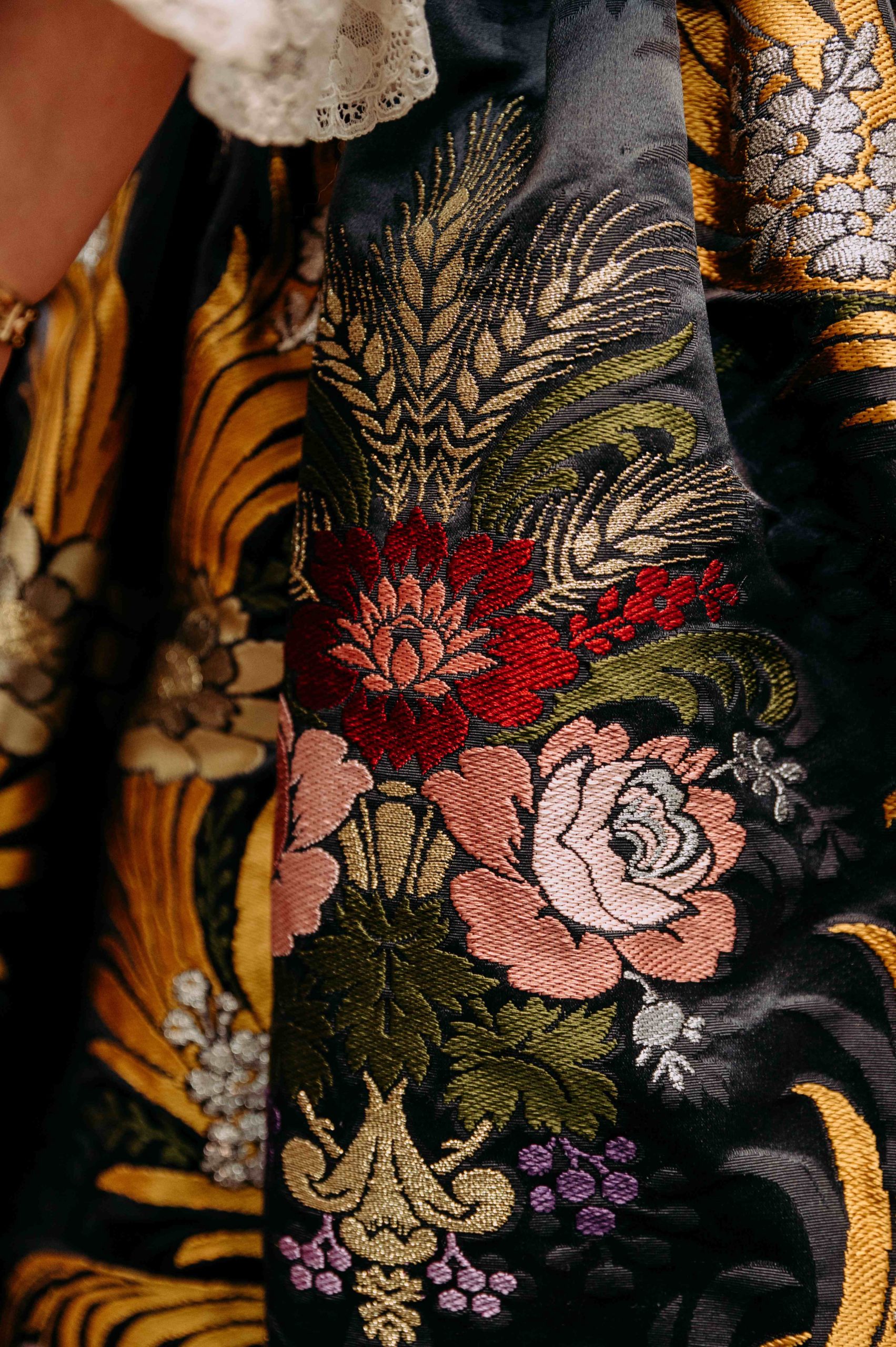 El mundo de los espolines es un regalo para la vista. Los amantes de estas privilegiadas telas pudieron disfrutar con el traje que lució para su exaltación como Fallera Mayor de Espartero 2024, Dolo Calvete. Dolo sorprendió con un imponente espolín “Espigas Belmonte” en color gris grafito, orla en seda amarilla y tres metales, las flores combinadas a dos colores con una totalidad de 12 colores tejido por Compañía Valenciana de la Seda.
