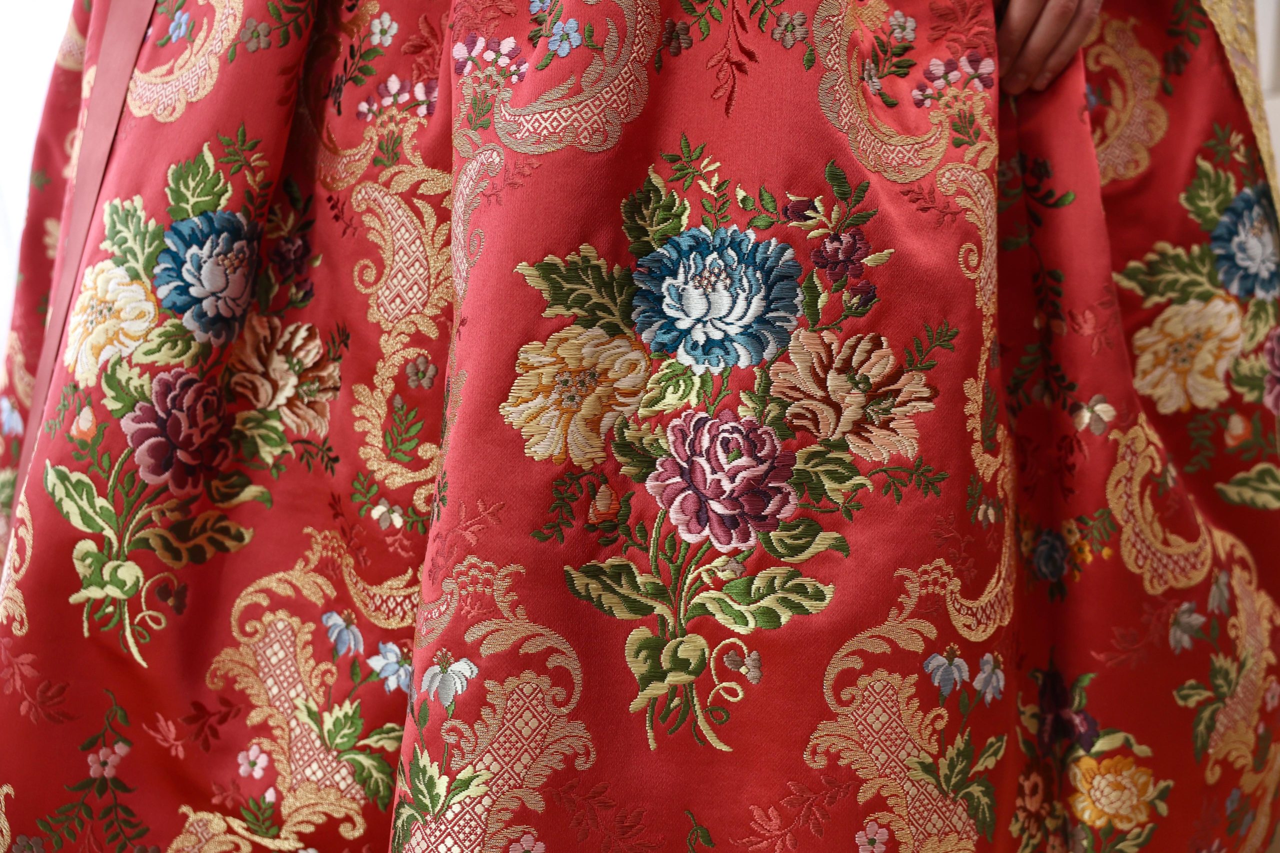La empresa Vives y Marí, en colaboración con el Ayuntamiento de Valencia, ha diseñado el espolín exclusivo de Lucía García Rivera durante su solemne Exaltación este sábado, 25 de enero. Esta pieza única está impregnada de simbolismo y tradición, representando la esencia de las Fallas y la singularidad de su protagonista.