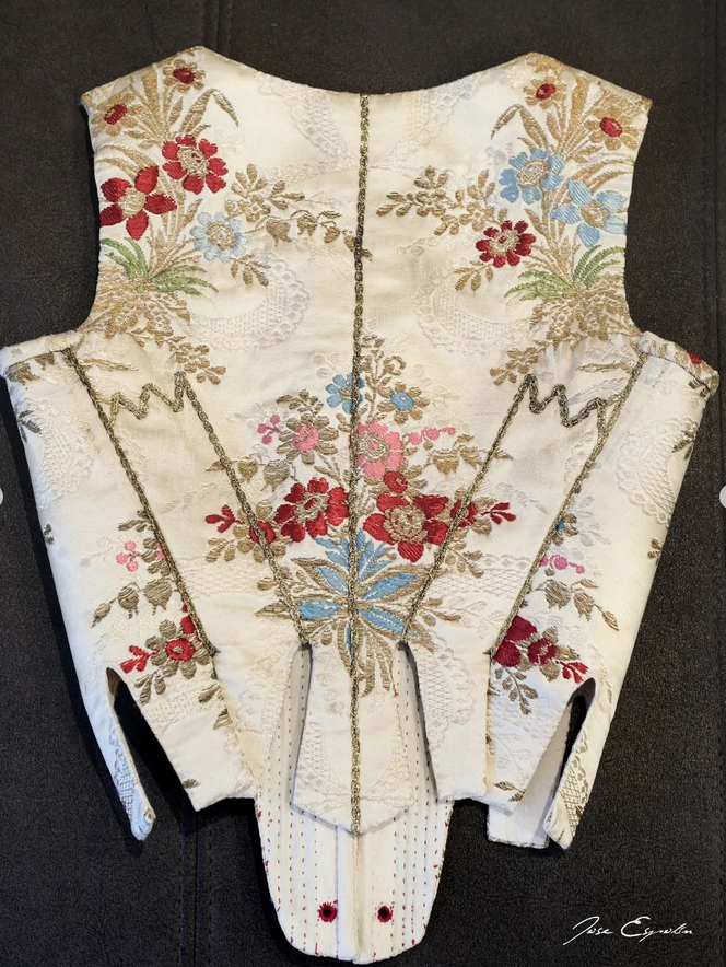 Un espolín Santa Ana en crudo de Garín, joya familiar con mucha historia y que han rescatado para la confección de su justillo.