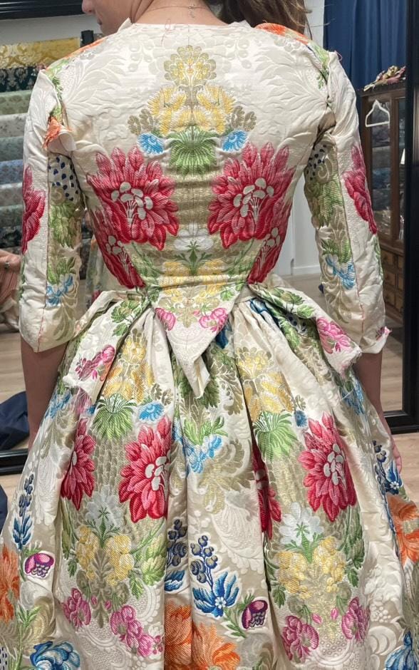 Este espolín no solo encarna la belleza de la seda valenciana, sino también el amor por la fiesta fallera que une generaciones. Fue adquirido por Mariel, madre de Alicia y una apasionada fallera de toda la vida de la Falla Grabador Esteve. Con visión y sensibilidad, Mariel guardó este tesoro, sabiendo que llegaría el instante exacto para convertirlo en una realidad inolvidable.