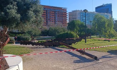 Las fuertes rachas de viento derriban una escultura de 14 metros en el Jardín del Turia de València