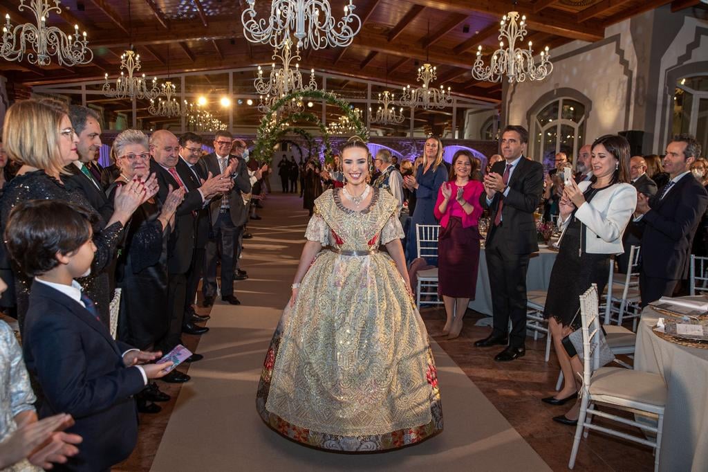 Se vivió una noche llena de emociones, en la que Mariam Armiñana Herencia y Francesc Soria Ferrandis, fueron los encargados de llevar hasta el escenario la banda e insignia que ya acreditan a Cristina como Fallera Mayor 2022. Actuó como mantenedor José Mª Chiquillo Barber, Presidente de la Red Internacional Unesco Ruta de la Seda, que con sus palabras puso en valor y recordó la importancia de la indumentaria valenciana y todos los profesionales que la mantienen viva.