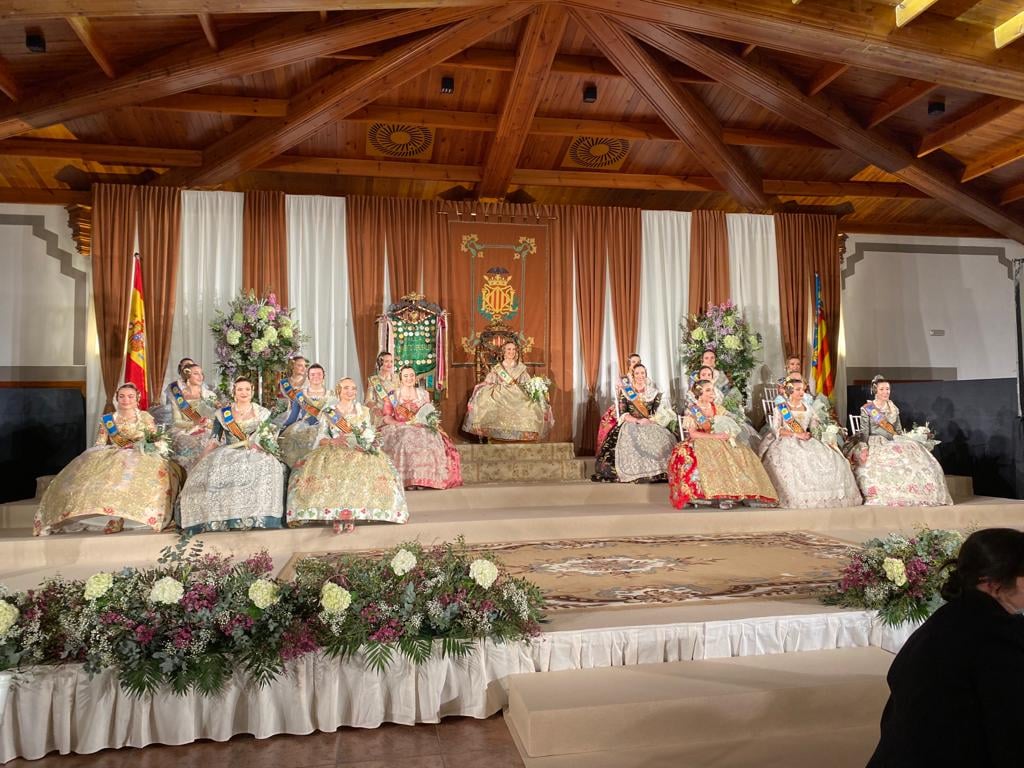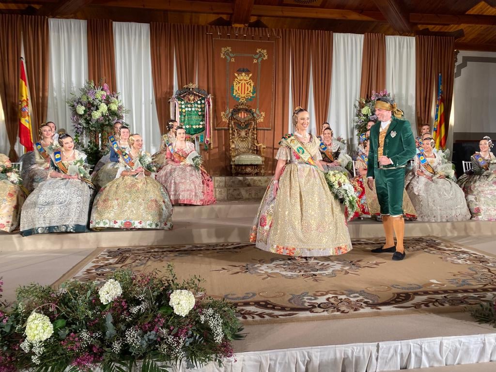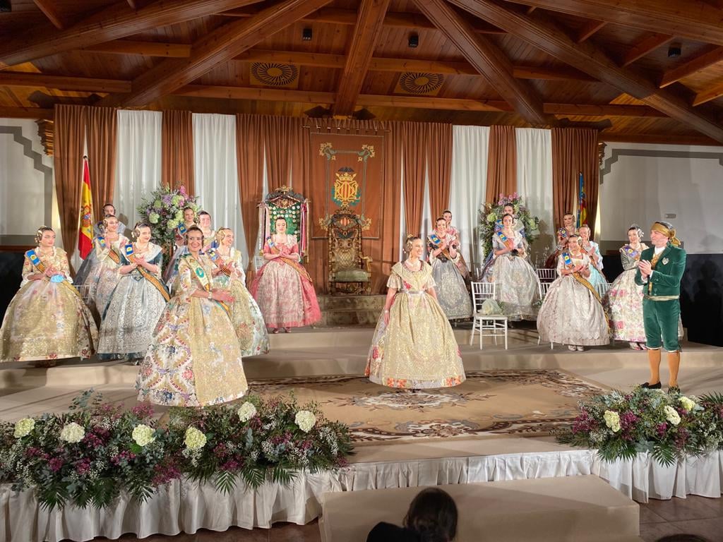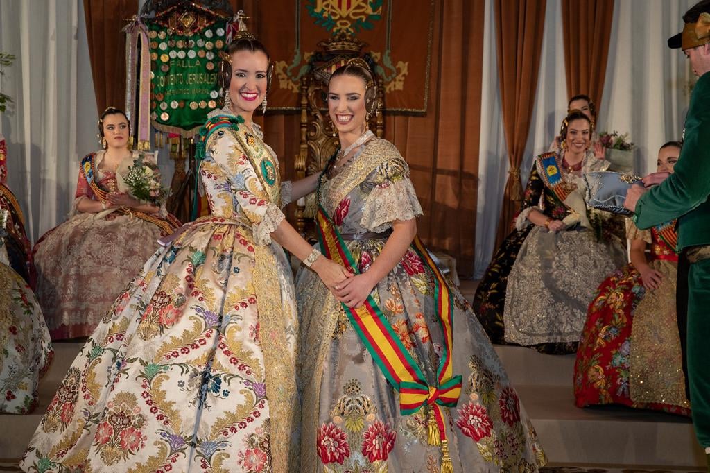 Este viernes se celebró en la Masia de Xamandreu la exaltación de Cristina Madrero Soria y su Corte de Honor, como Fallera Mayor 2022 de la Falla Convento Jerusalén. La banda le fue impuesta por laFallera Mayor Saliente, Ana Elorriaga López.