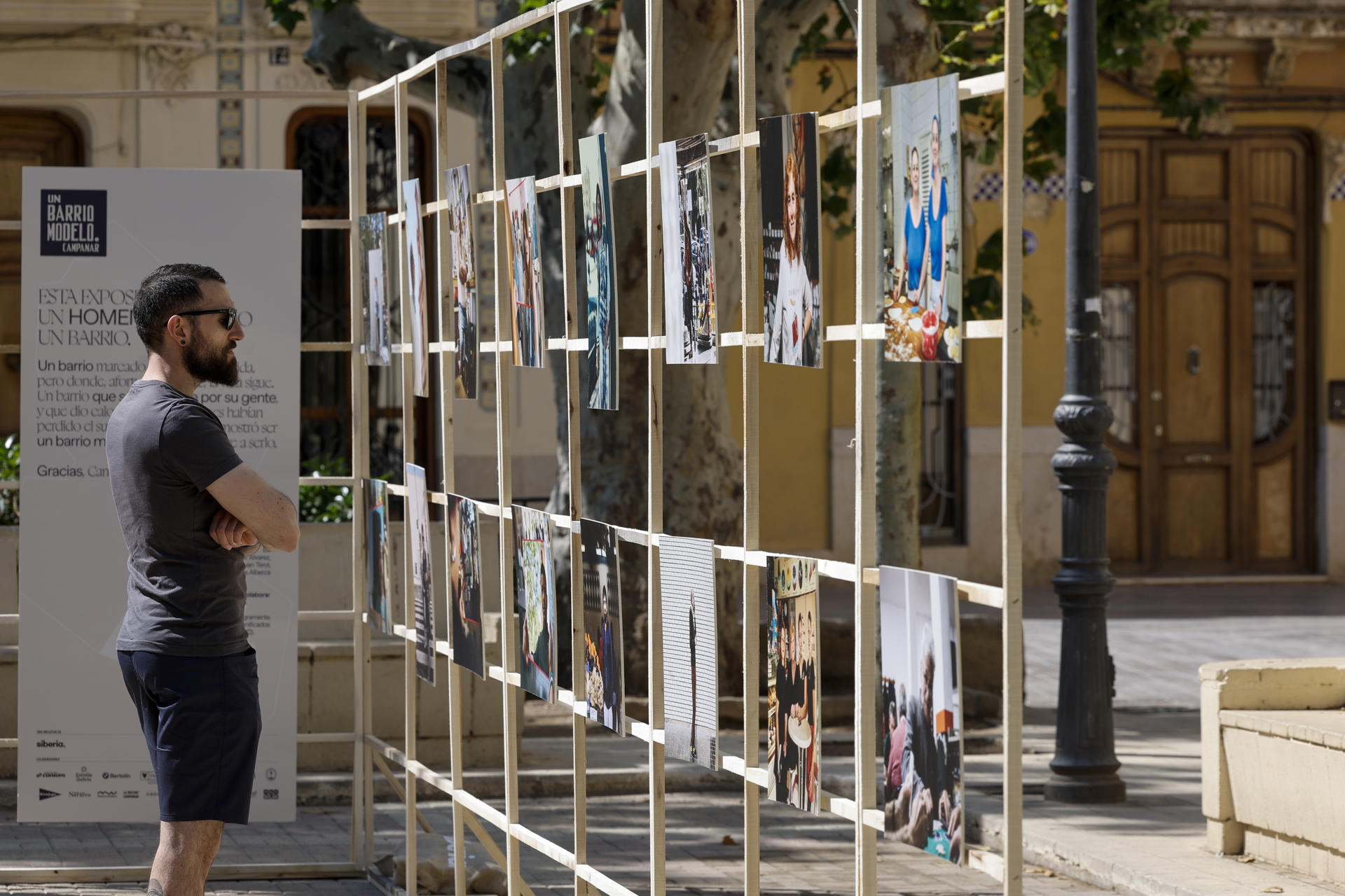 La exposición «Un barrio modelo» se ha inaugurado este jueves en la plaza de la Iglesia de Campanar, con la presencia de vecinos, algunos de los protagonistas de las fotografías, la presidenta de Ardic, Nancy Khawan; la concejala de Recursos Humanos y Técnicos del Ayuntamiento de València, Julia Climent; y el director de la agencia de publicidad Siberia, creadora de la iniciativa, Rafael Pomares.