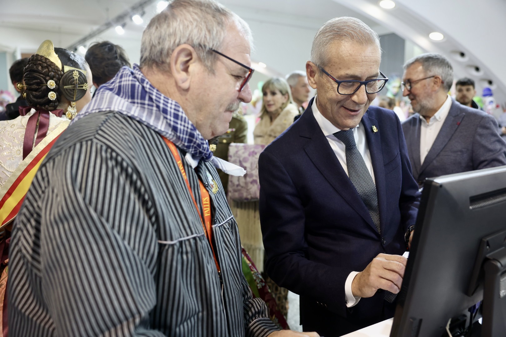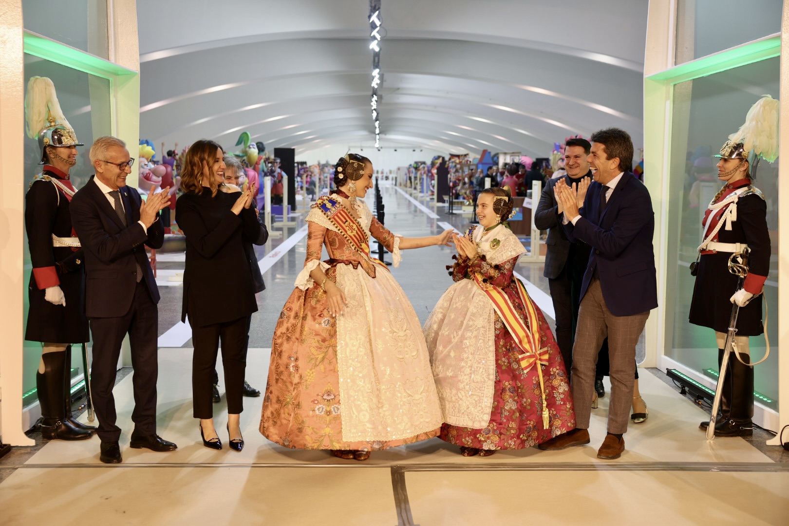 Catalá, acompañada del presidente de Junta Central Fallera y concejal de Fallas, Santiago Ballester, y junto con el president de la Generalitat, Carlos Mazón, y las falleras mayores, Mª Estela Arlandis y Marina García, han inaugurado esta tarde esta exposición, que tiene su origen en un concurso de ideas convocado por el Ayuntamiento en 1934.
