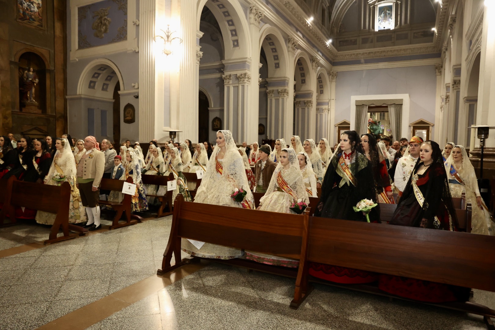 Seguidamente, las falleras mayores de nuestras comisiones han ofrecido sus ramos en el interior del templo parroquial de la Natividad de nuestra Señora.
