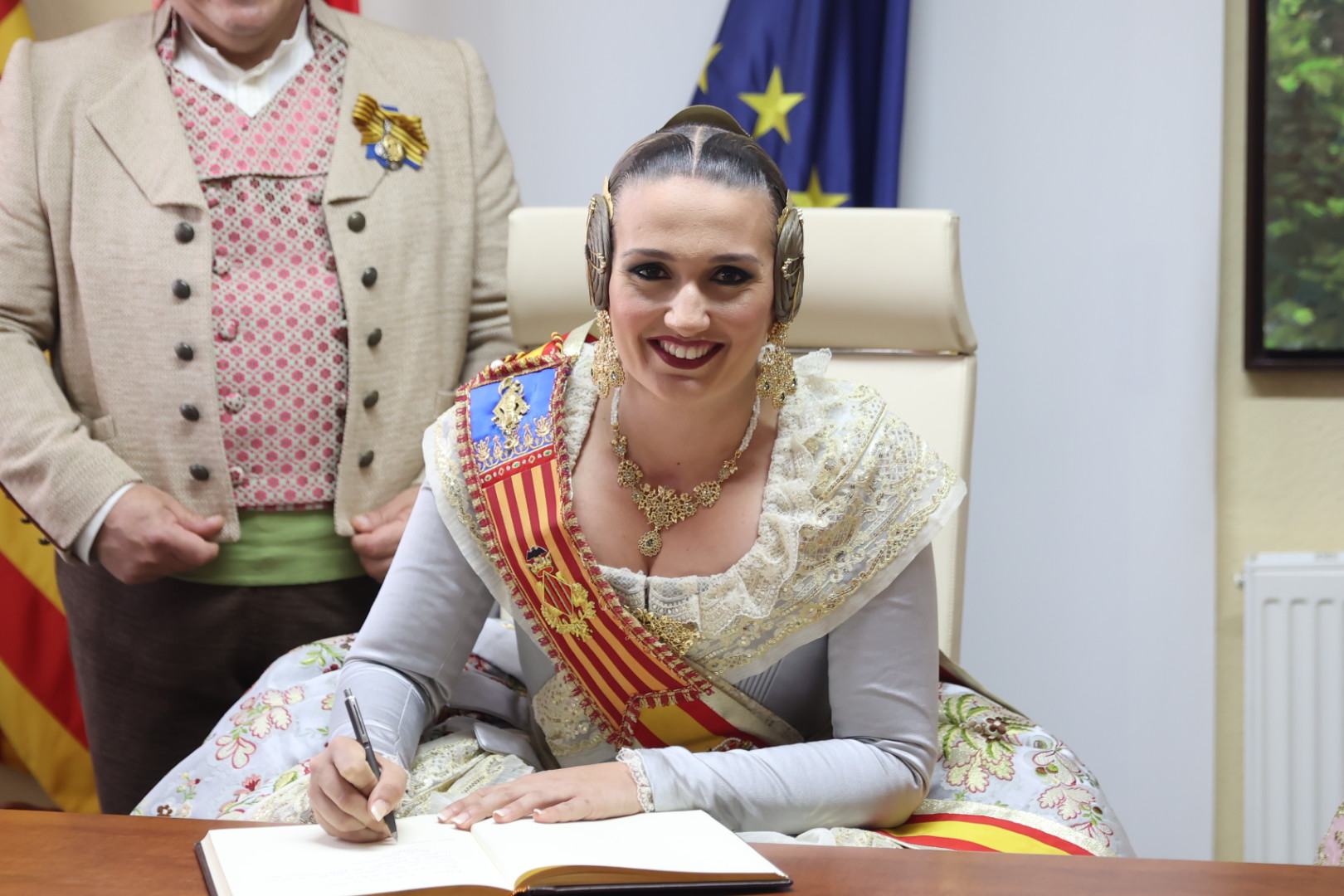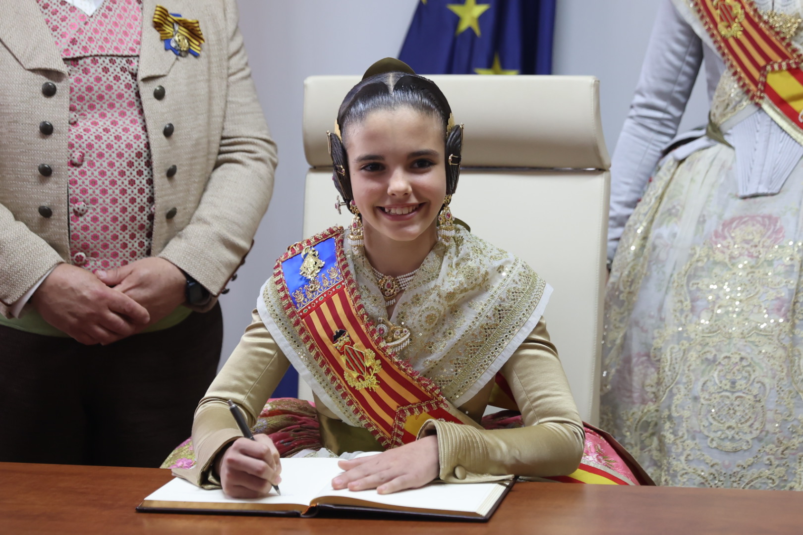 Claudia estuvo acompañada en este instante tan especial por gran parte de la Corte de Honor 2025 y por la Fallera Mayor de Valencia, Berta Peiró, quienes no dudaron en mostrarle su apoyo y orgullo.