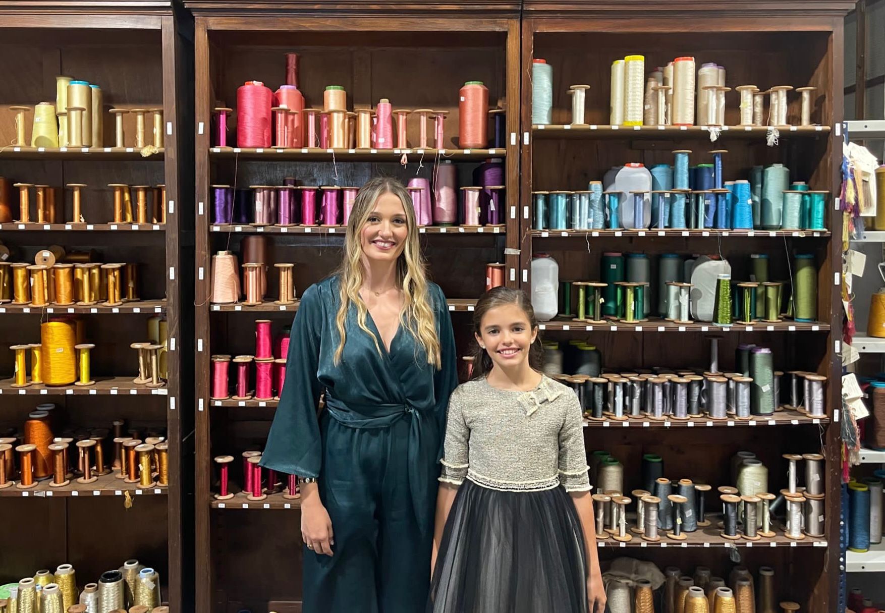 Laura Mengó y Paula Nieto, acompañadas por el presidente de Junta Central Fallera, Carlos Galiana, se han desplazado esta tarde a las instalaciones de Garín en Moncada para elegir los colores del espolín que estrenarán cada una el día de su exaltación y que regala el Ayuntamiento de València a las máximas representantes de las Fallas cada ejercicio.