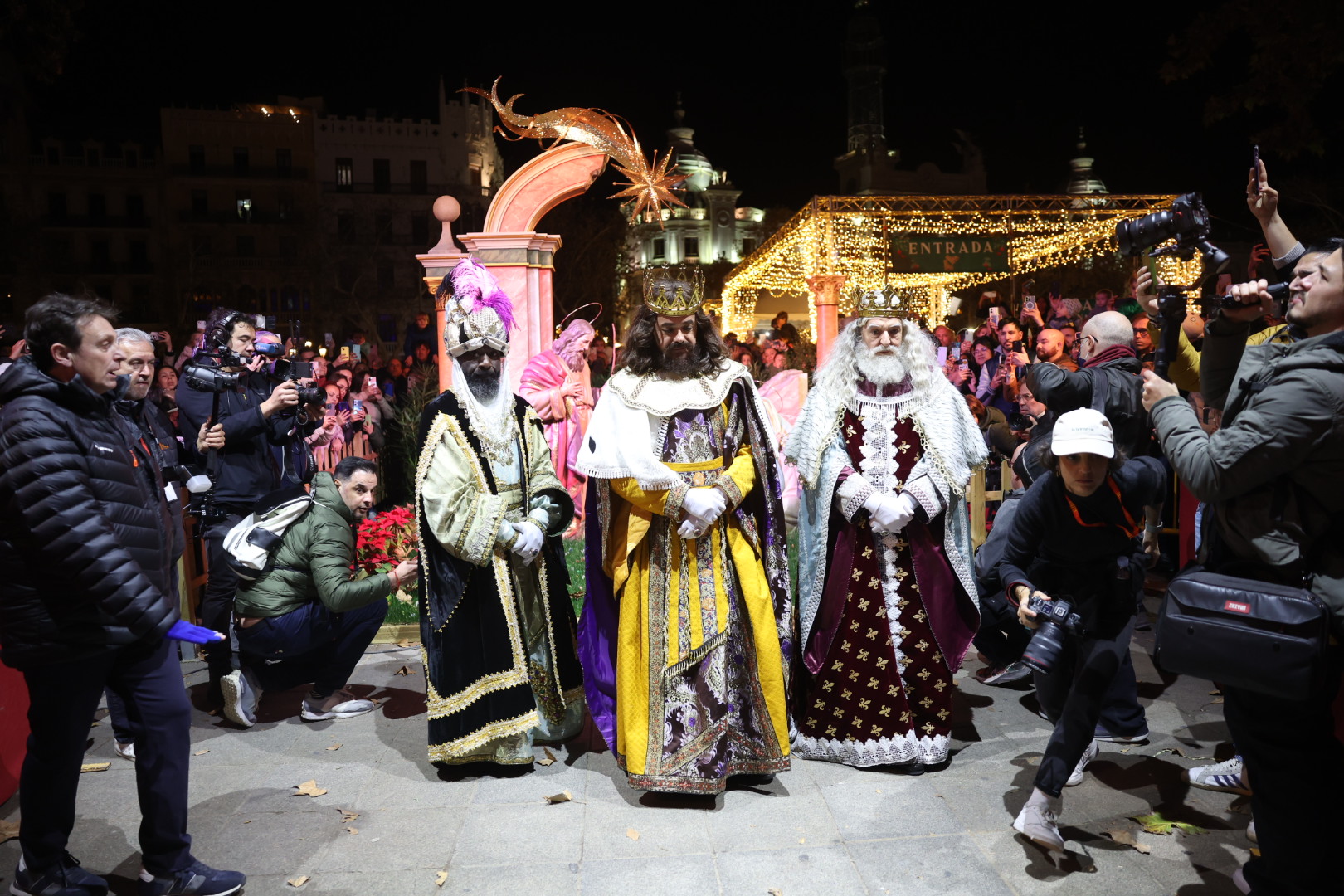 Sus Majestades han llegado desde Oriente a Valencia a primer hora de la tarde y lo han hecho en un catamarán que ha atracado en el Tinglado 2 del puerto, donde les esperaban impacientes numerosos niños y niñas en este día tan especial.