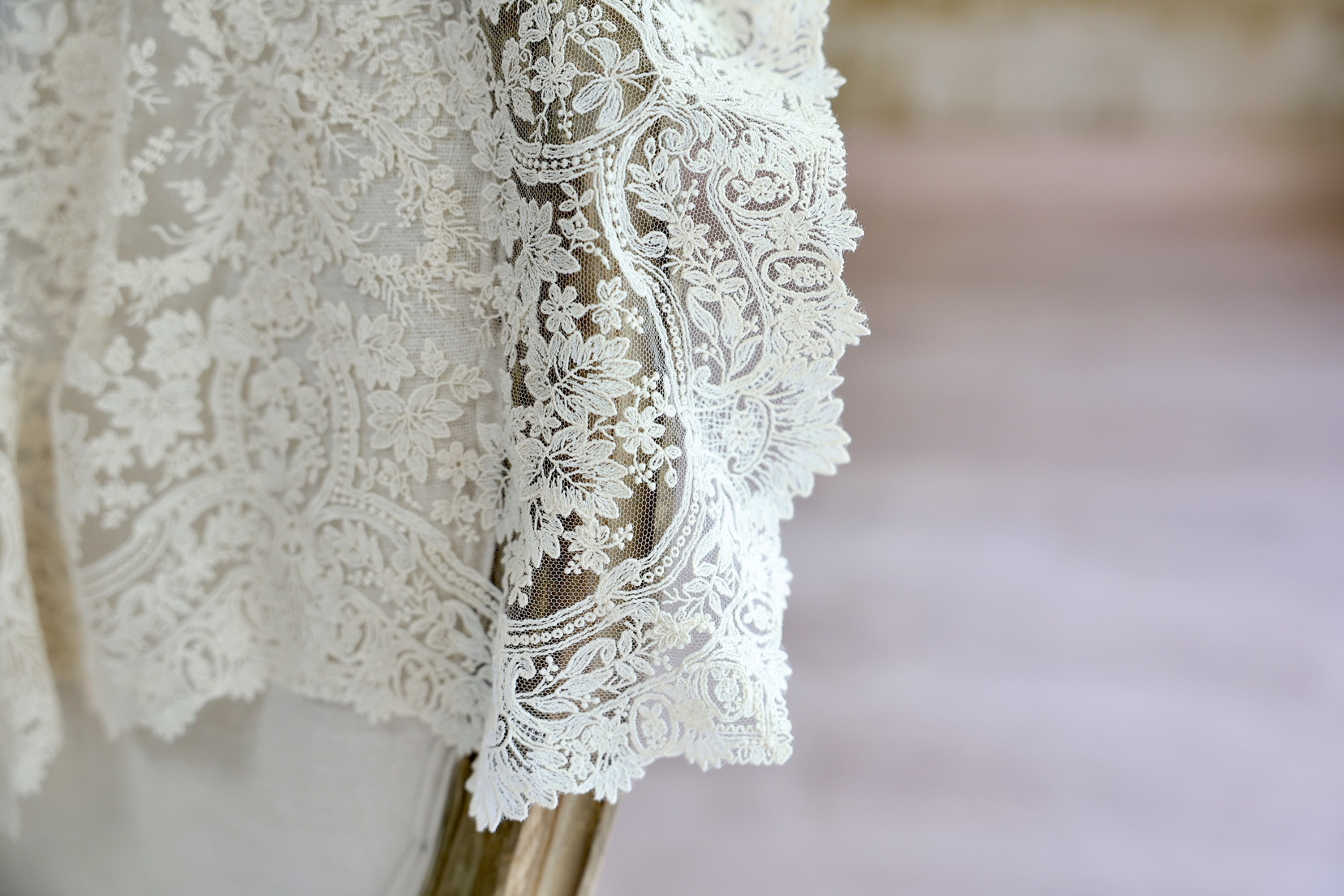 La base de las manteletas procede de la gasa de su vestido de comunión, reutilizada y bordada con mimo. Un gesto que convierte esta prenda en un símbolo de memoria, tradición y amor transmitido entre generaciones.