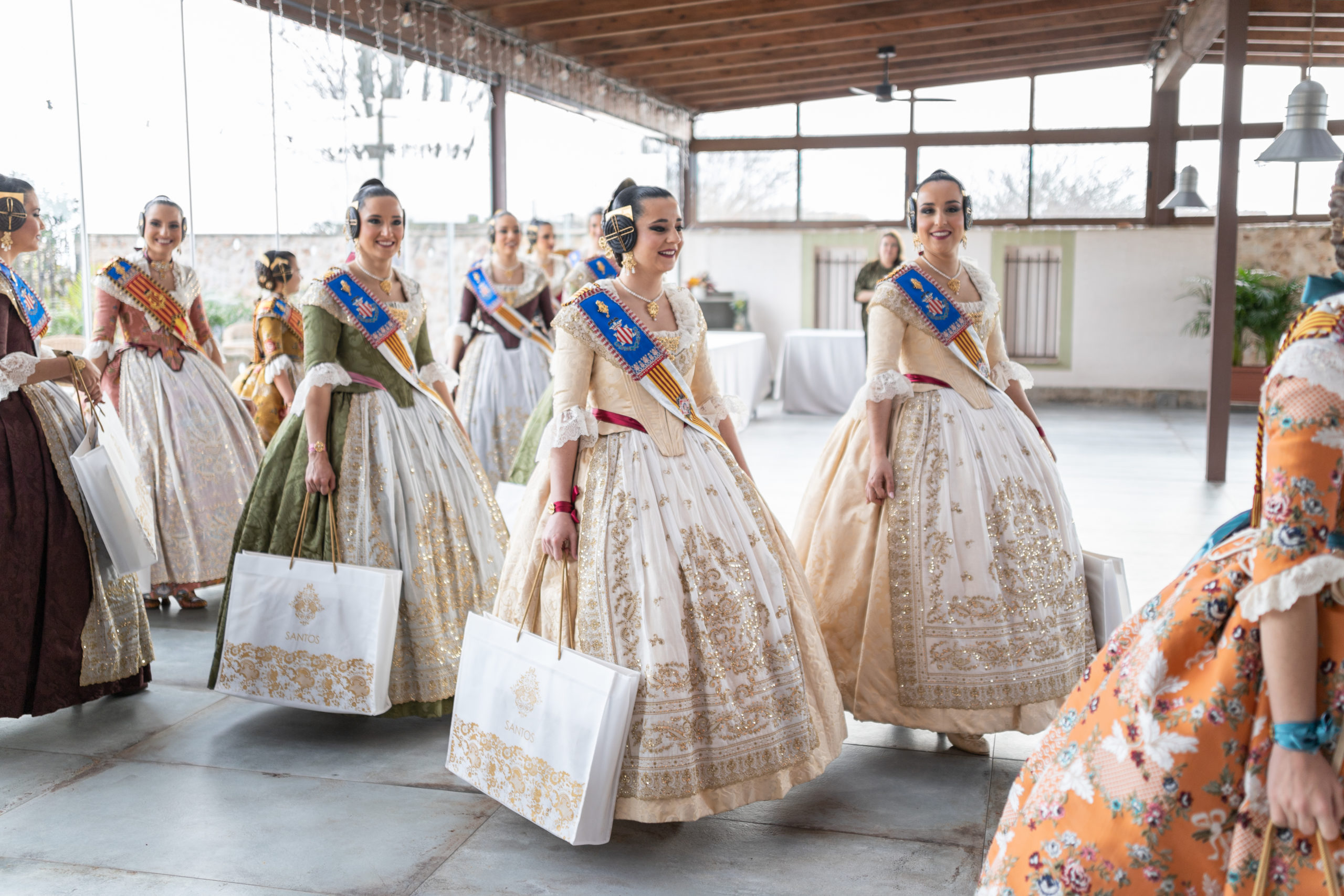 Las Falleras Mayores de Valencia 20204 y sus respectivas Cortes de Honor han recibido sus mantillas oficiales de Santos Textil y un obsequio con la puntilla que lucen en su primer traje oficial. La empresa valenciana ha celebrado el acto oficial de entrega en La Mozaira de Alboraya. Además de sus mantillas, confeccionadas y diseñadas de manera exclusiva,