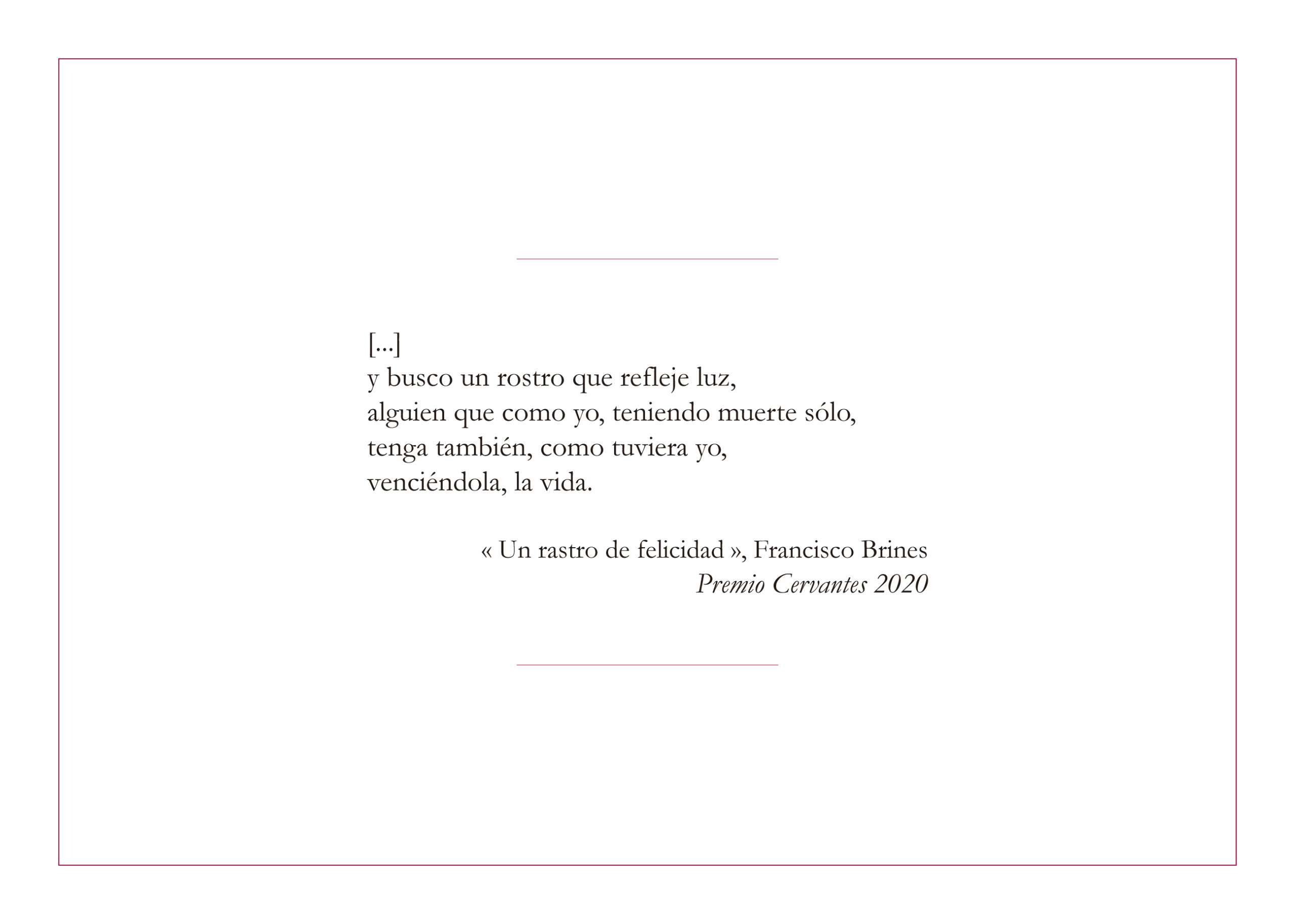 Al abrir la felicitación, los Reyes han incluido un fragmento del poema “Un rastro de felicidad”, del poeta valenciano Francisco Brines, en recuerdo de las víctimas fallecidas, sus familias y las más de 800.000 personas afectadas por esta catástrofe natural.