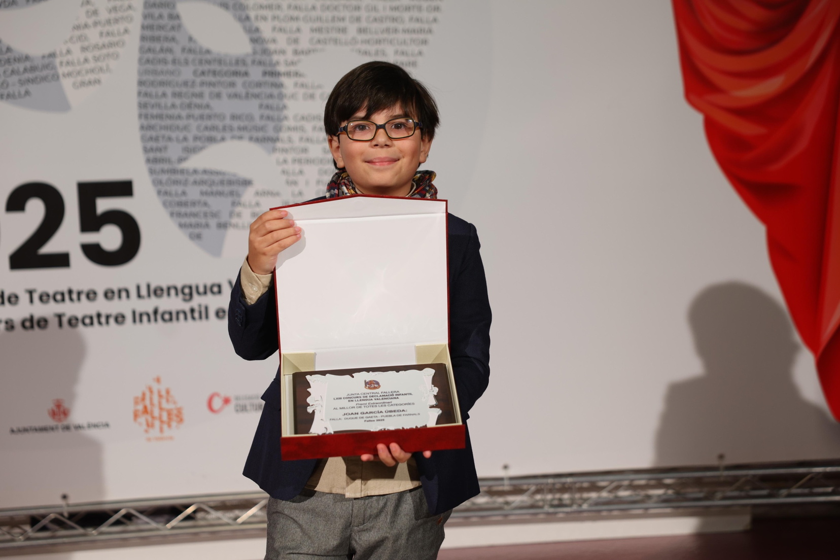 El mundo fallero se ha dado cita este viernes para reconocer el mejor Teatre Faller en la Gala de la Cultura de 2025. Este año, la ceremonia ha vuelto a celebrarse en el Teatro Principal de València y ha emocionado al público presente, que ha ovacionado a todas los niños premiados en las respectivas categorías y modalidades de los concursos de cultura organizados por Junta Central Fallera y celebrados a lo largo del ejercicio.
