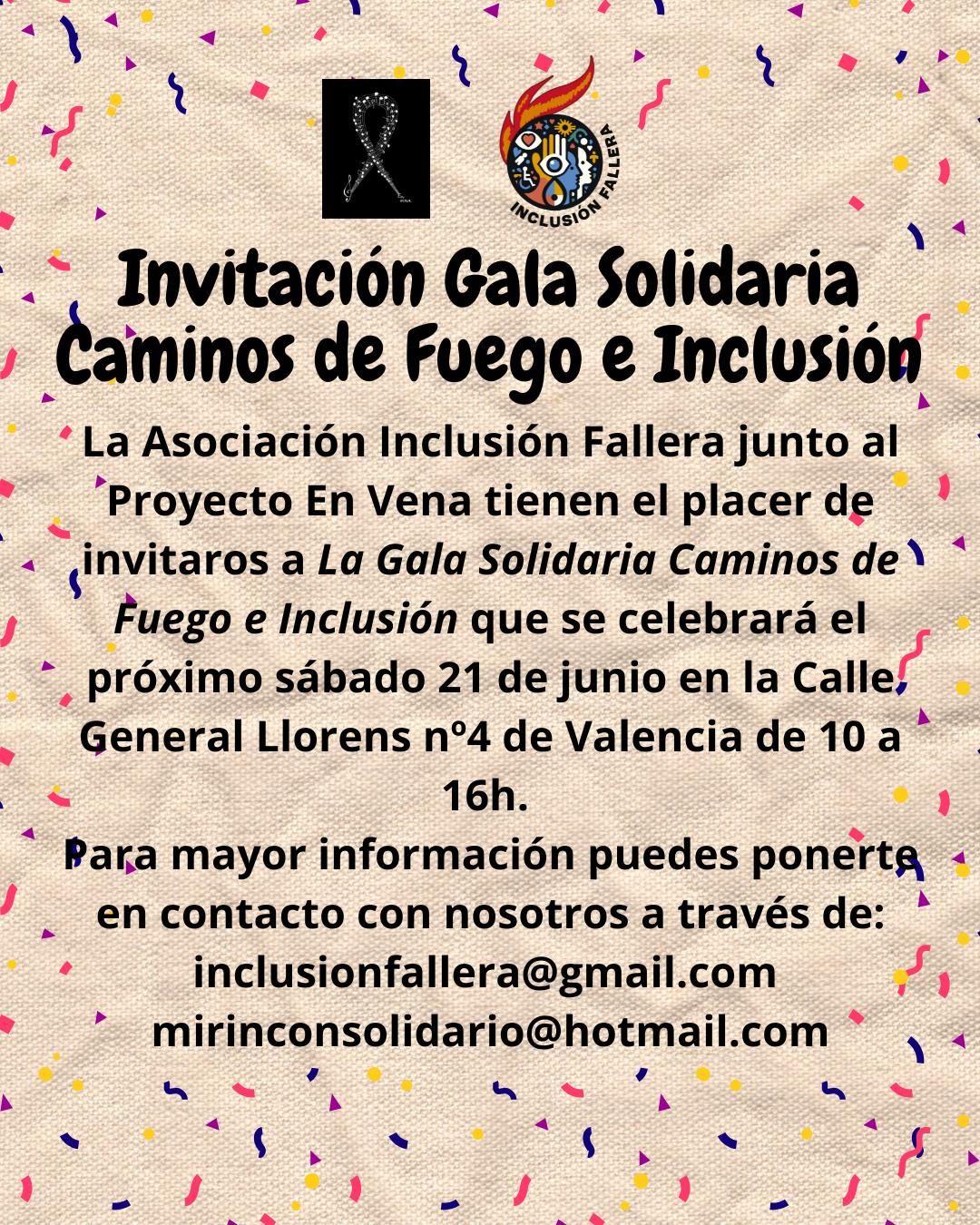 La ciudad de València se prepara para acoger este sábado 21 de junio la Gala Solidaria ‘Caminos de Fuego e Ilusión’, un evento organizado por Inclusión Fallera y el Proyecto En Vena, cuyo objetivo es celebrar la diversidad y promover la inclusión en las fiestas falleras.