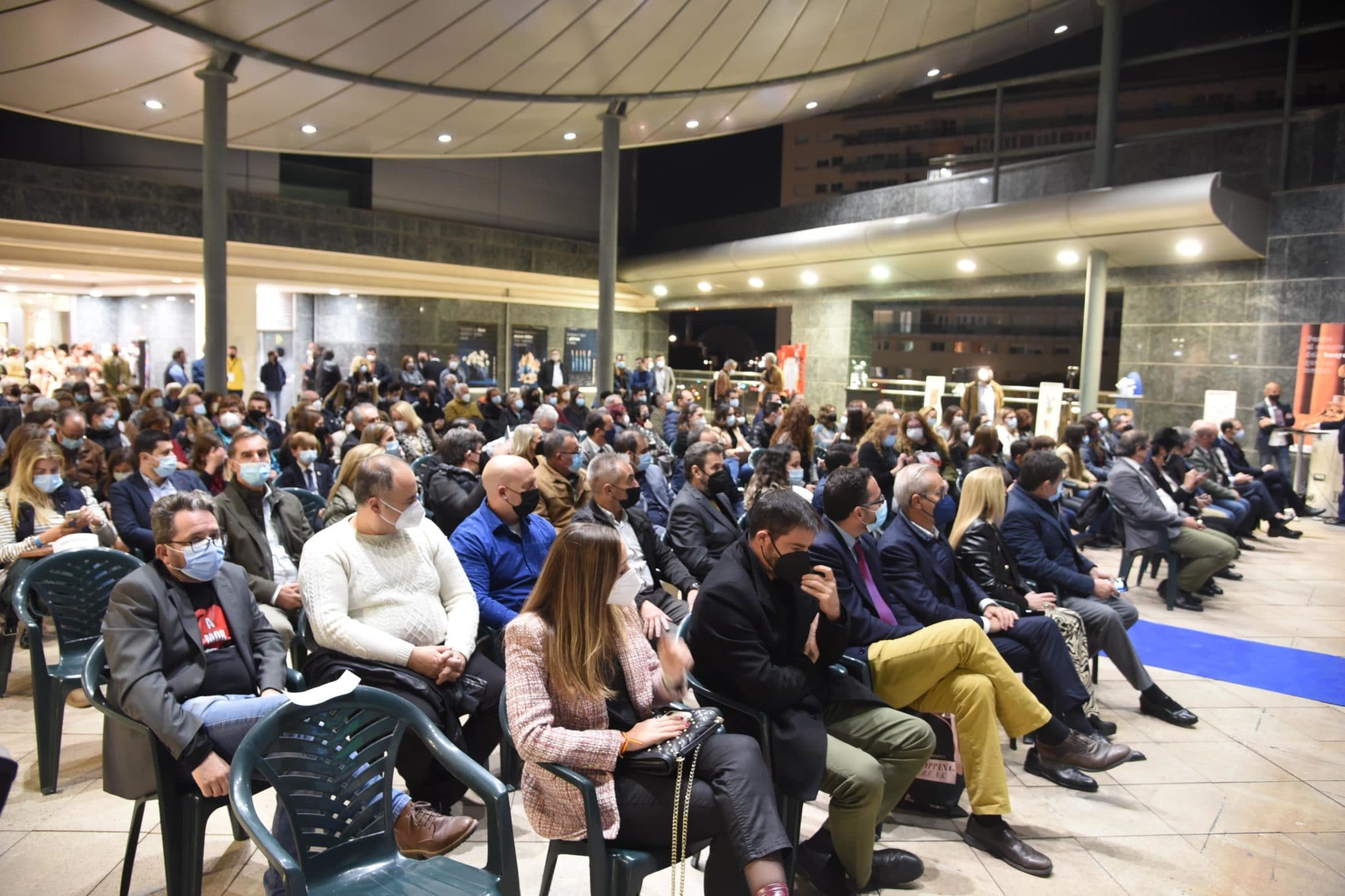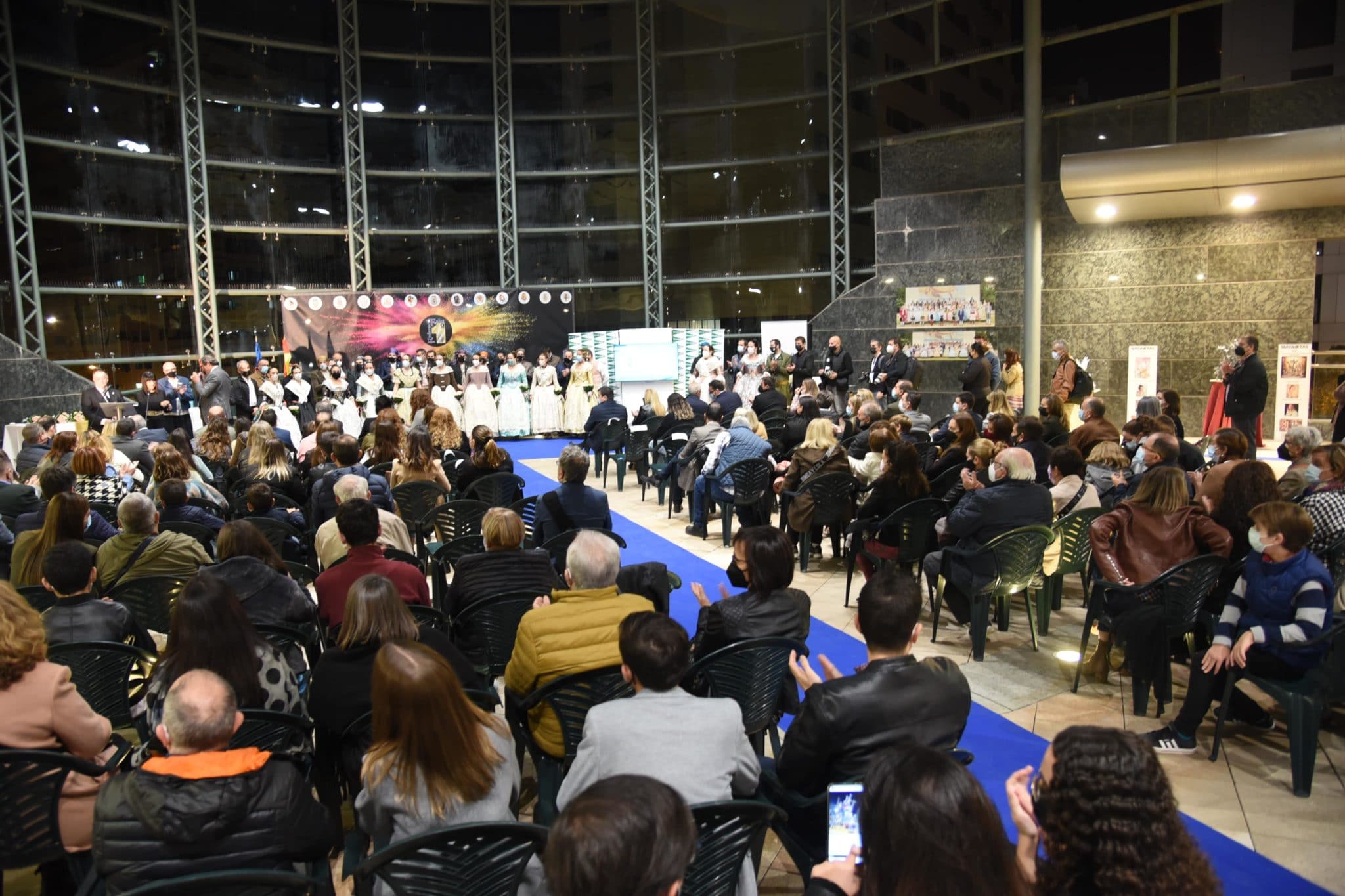 El estreno del recinto deportivo y de eventos durante este ejercicio ha permitido trasladar la presentación a uno de sus salones, donde se replicó el escenario habitual de la comisión para la imposición de bandas, siguiendo la liturgia tradicional del acto.