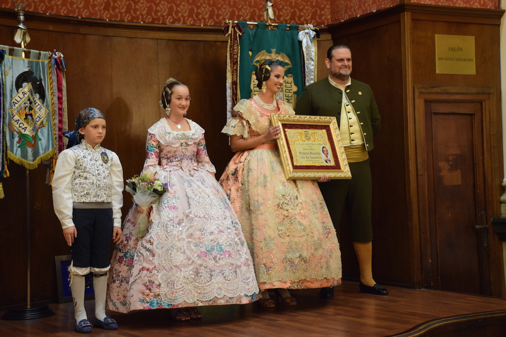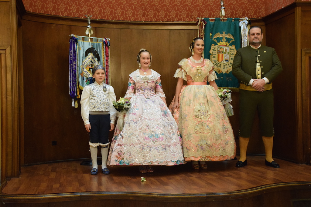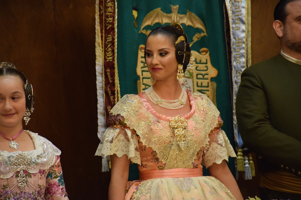 Sobre las 20:30 horas en la puerta del Ateneo fueron convocadas, la comisión, familiares y amigos, para arropar y acompañar en este acto tan emotivo, a las que a partir de ahora serán las máximas representantes de la comisión de la falla Plaza de la Mercé. Tras hacer su llegada en coche, fueron recibidas por aplausos por los allí presentes, bajo la música del tabal y la dolçaina.