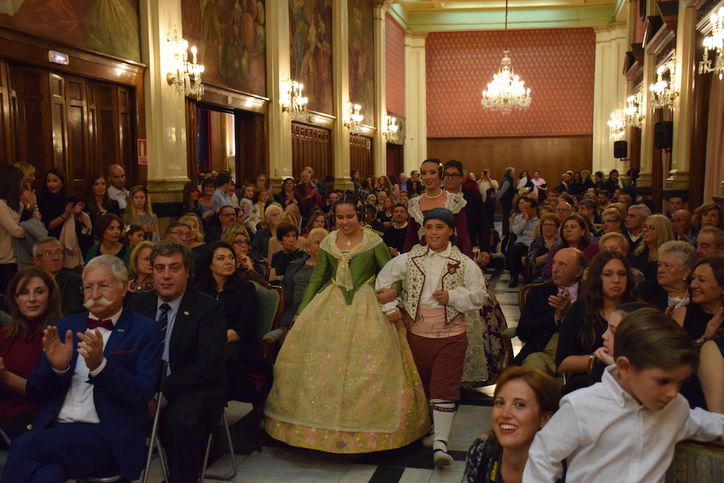Seguidamente hicieron su entrada en el salón del Ateneo, que acogería el acto para las que habían sido llamadas. Familiares, amigos y falleros, abarrotaron la sala para presenciar el acto protocolario en el que fueron nombradas, por la secretaria Bea Palacios, según acta oficial de la comisión, Falleras Marores para el 2018.