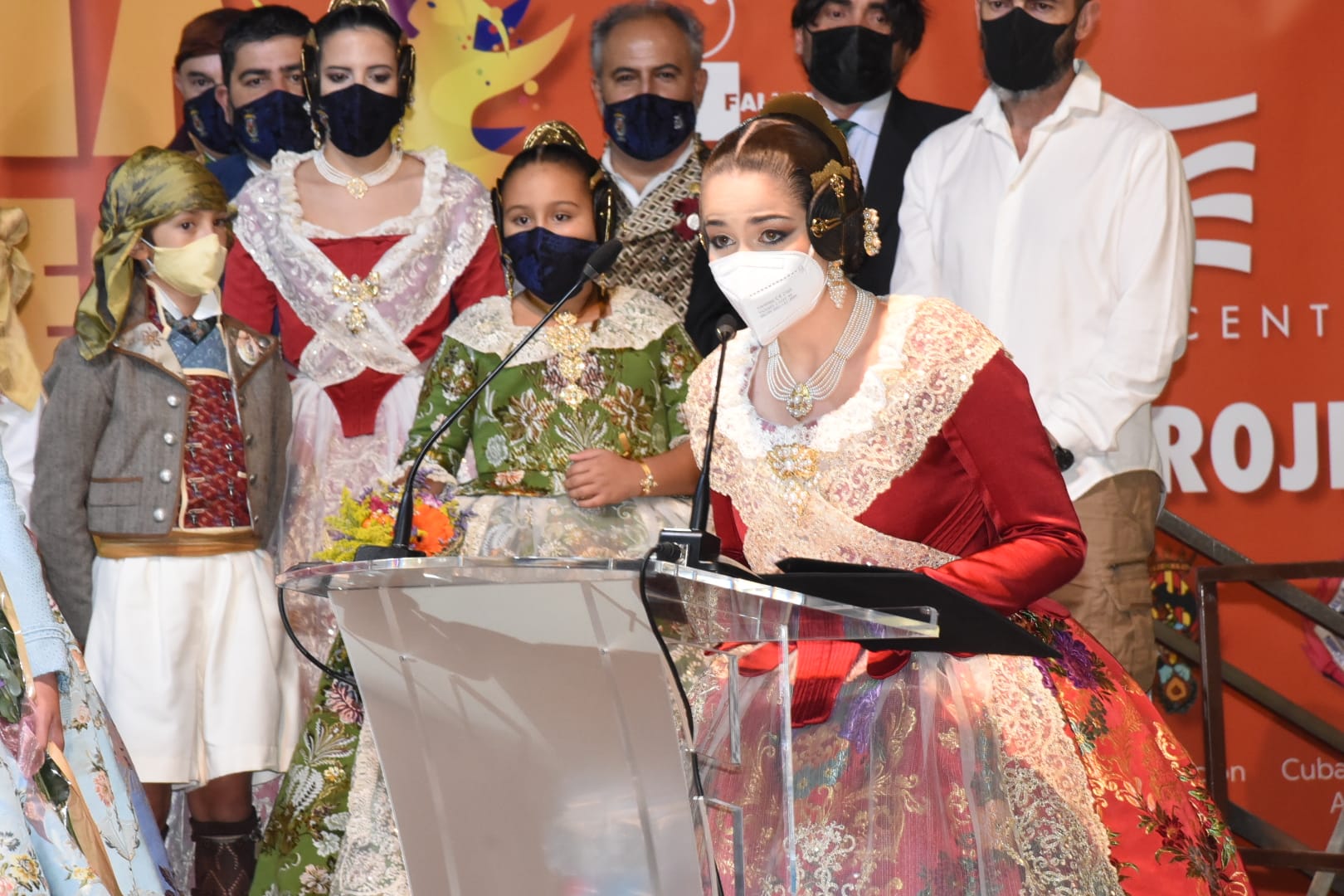 A las 19,00h ha sido la presentación oficial de las nuevas comisiones que integran la Federación de Fallas de la Sección Especial y recepción de las Falleras Mayores de Valencia, sus Cortes de Honor y autoridades invitadas. A continuación se ha cantado el himno de la Comunidad Valenciana interpretado por Aisha Bordas y Ángel Bellido.