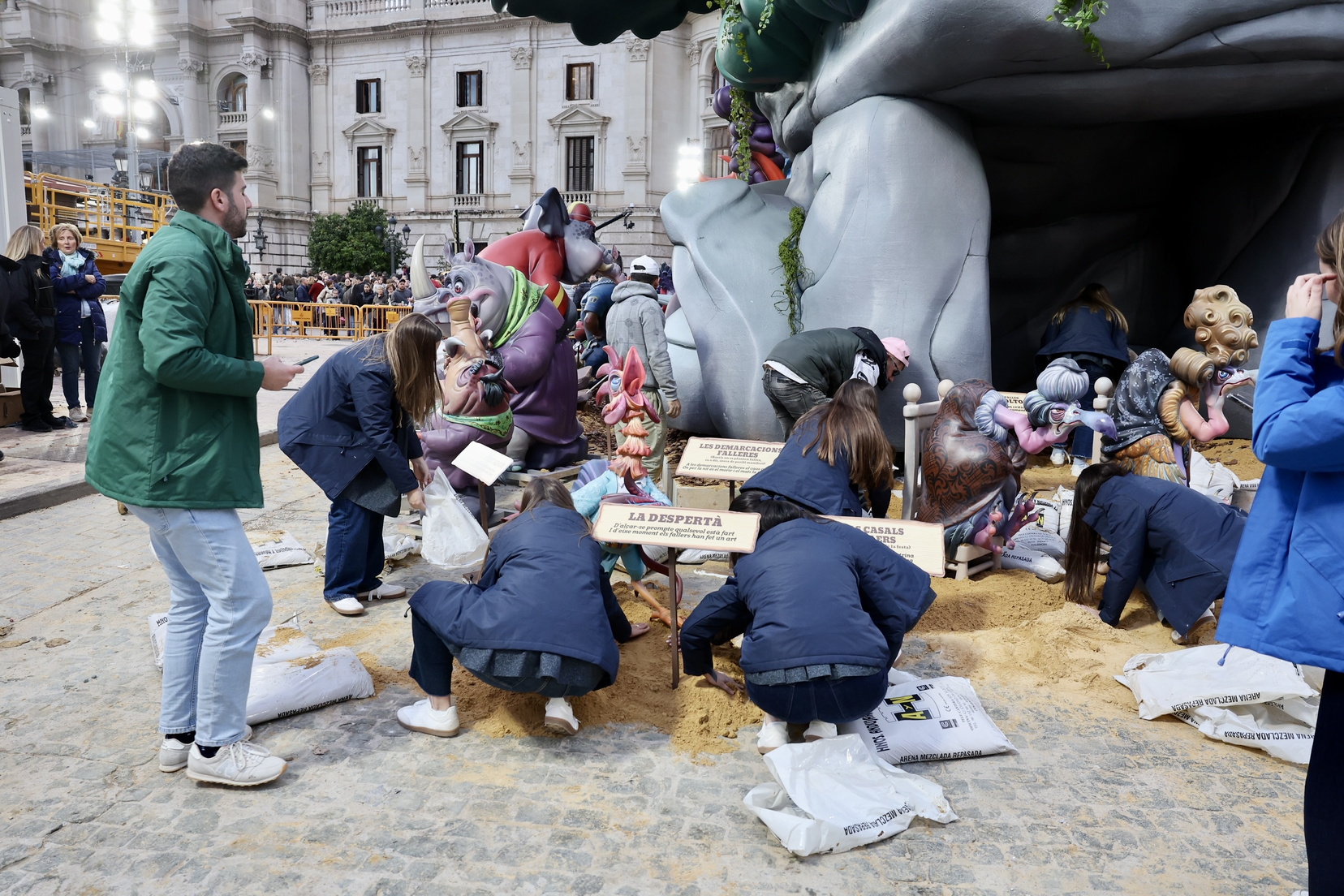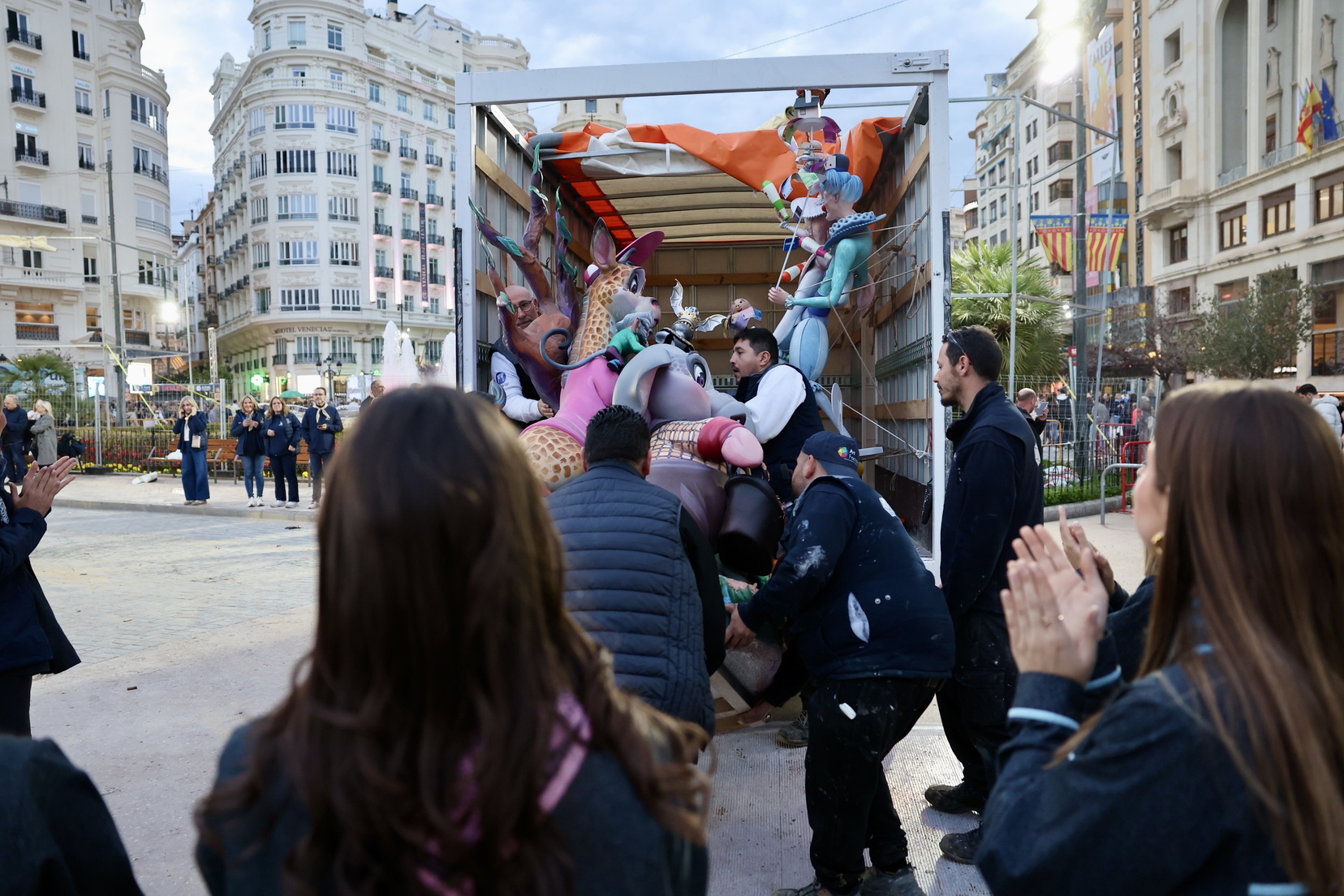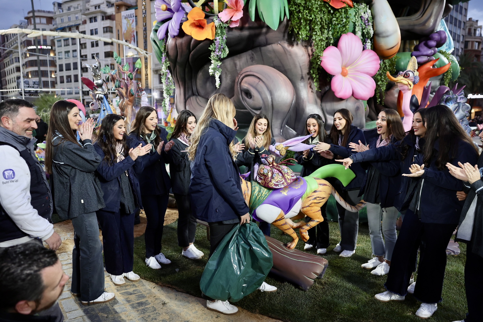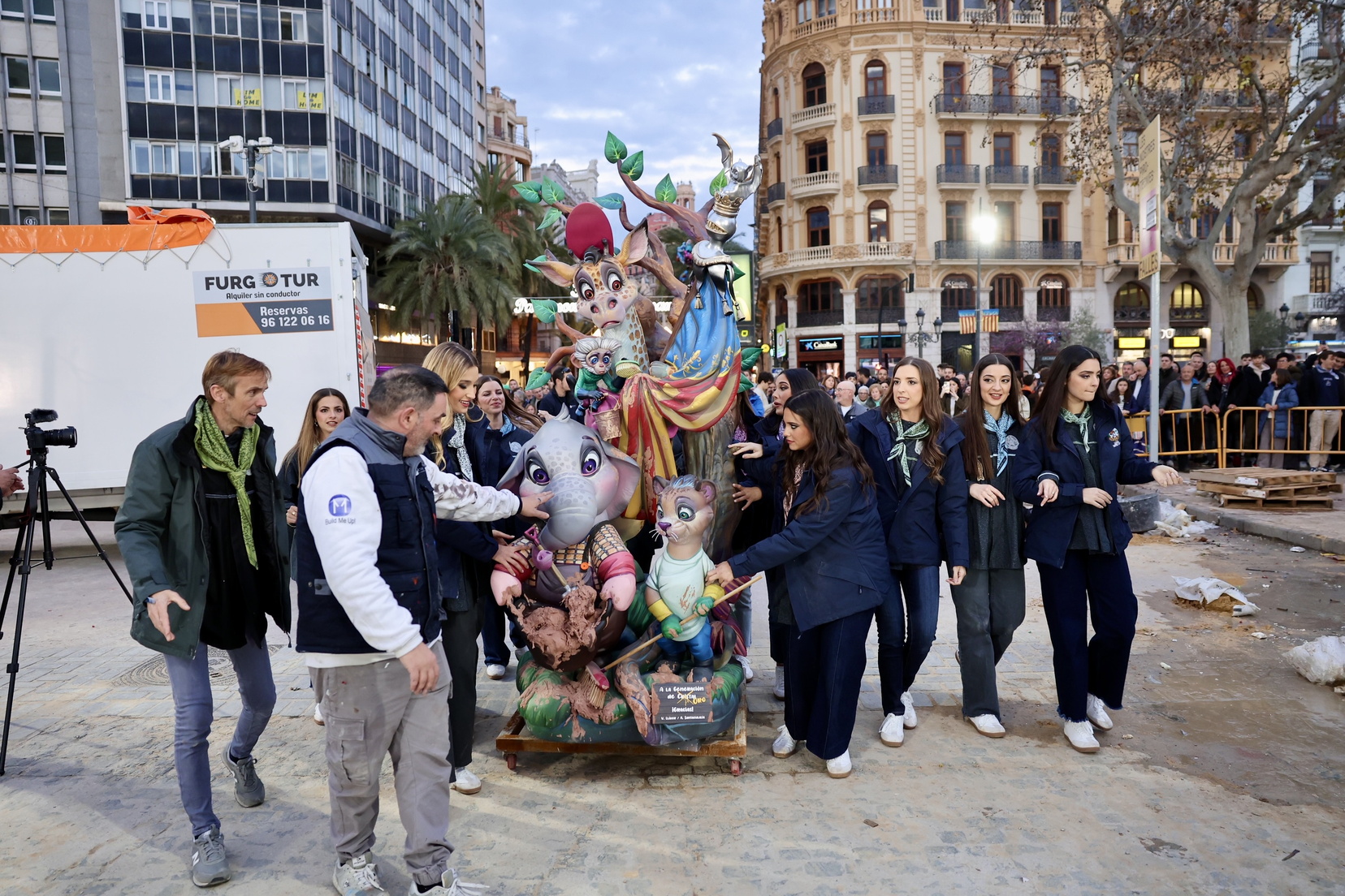 La falla Municipal de 2025  luce ya en la plaza del Ayuntamiento con su fauna fallera. No te pierdas cómo ha sido la plantà y cómo han vivido esta noche tan especial la Fallera Mayor de Valencia, Berta Peiró García junto a su Corte de Honor.