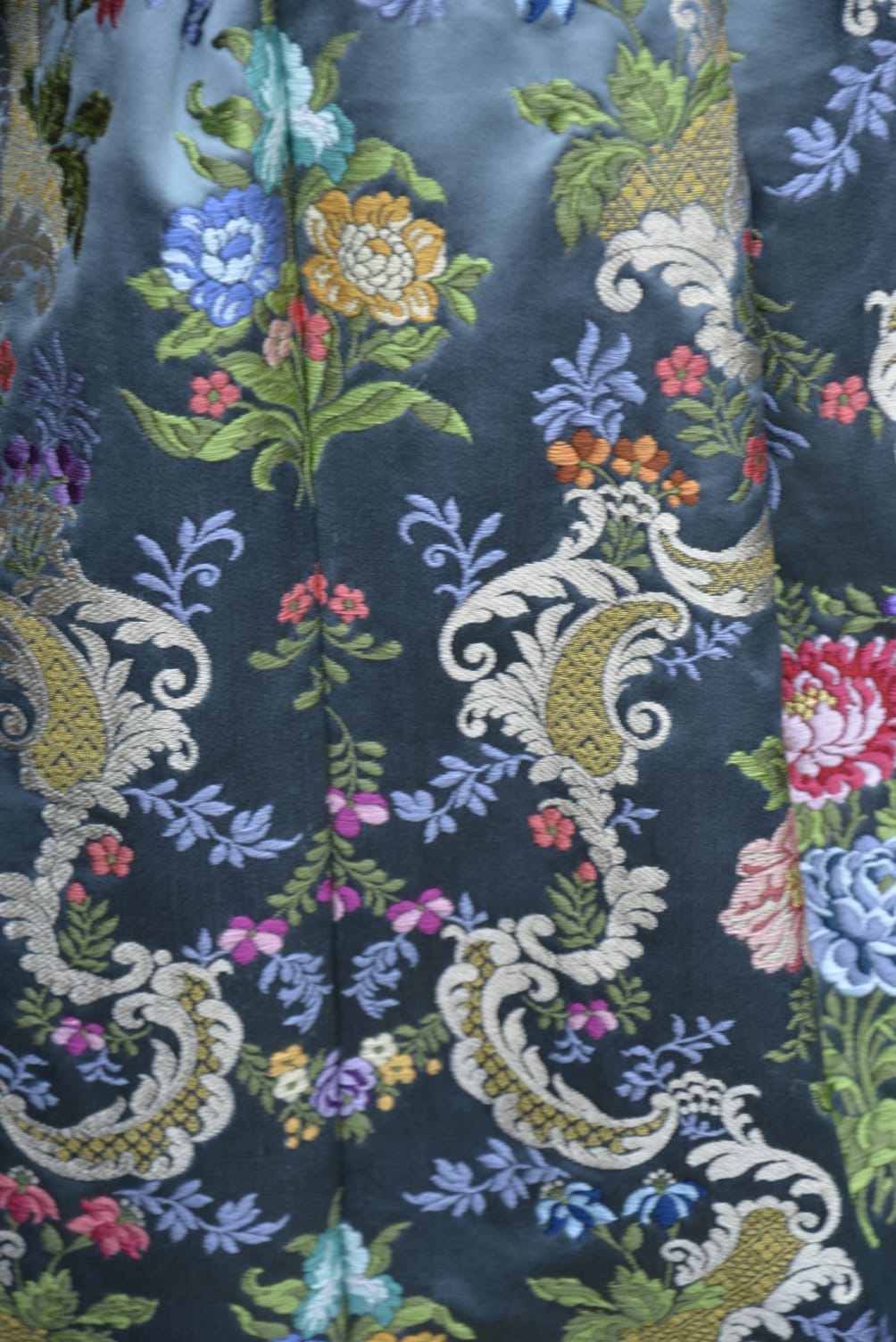 2. Tela de seda con flores esparcidas, como las del brocado de oro o de seda.