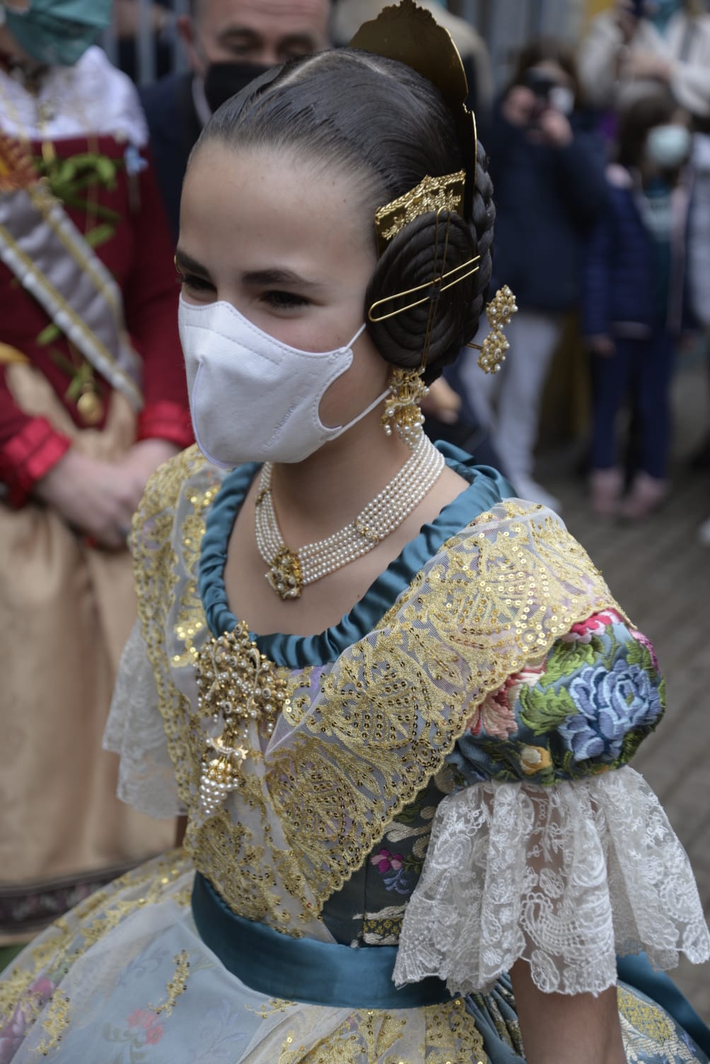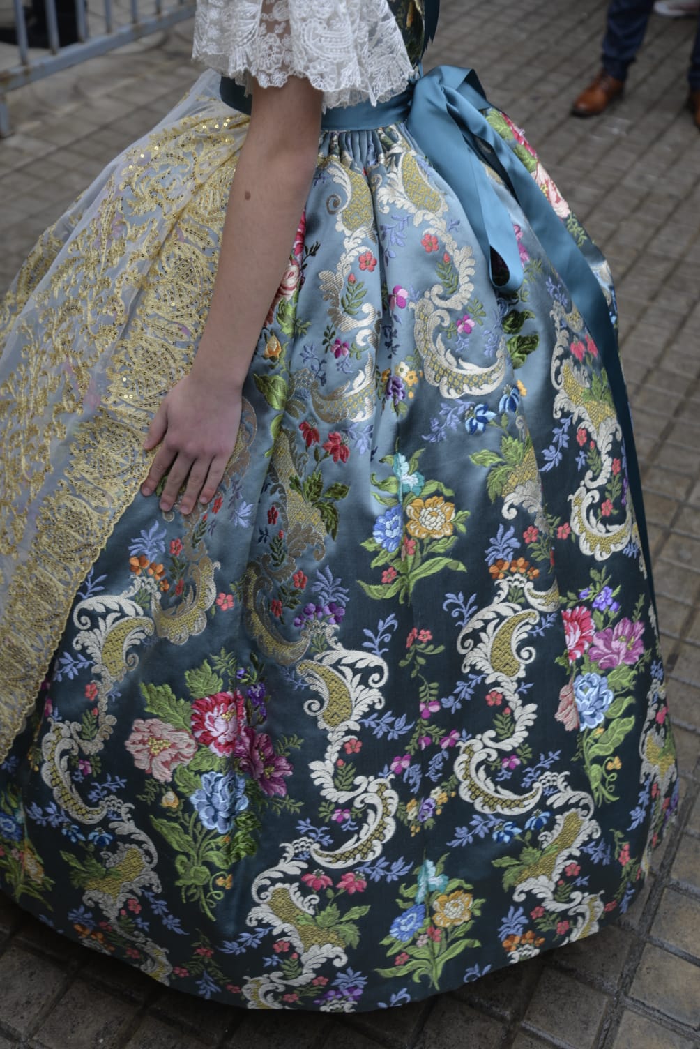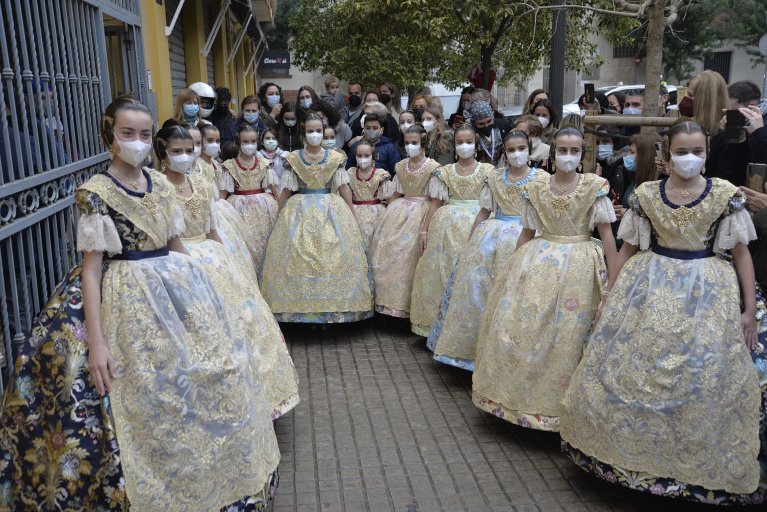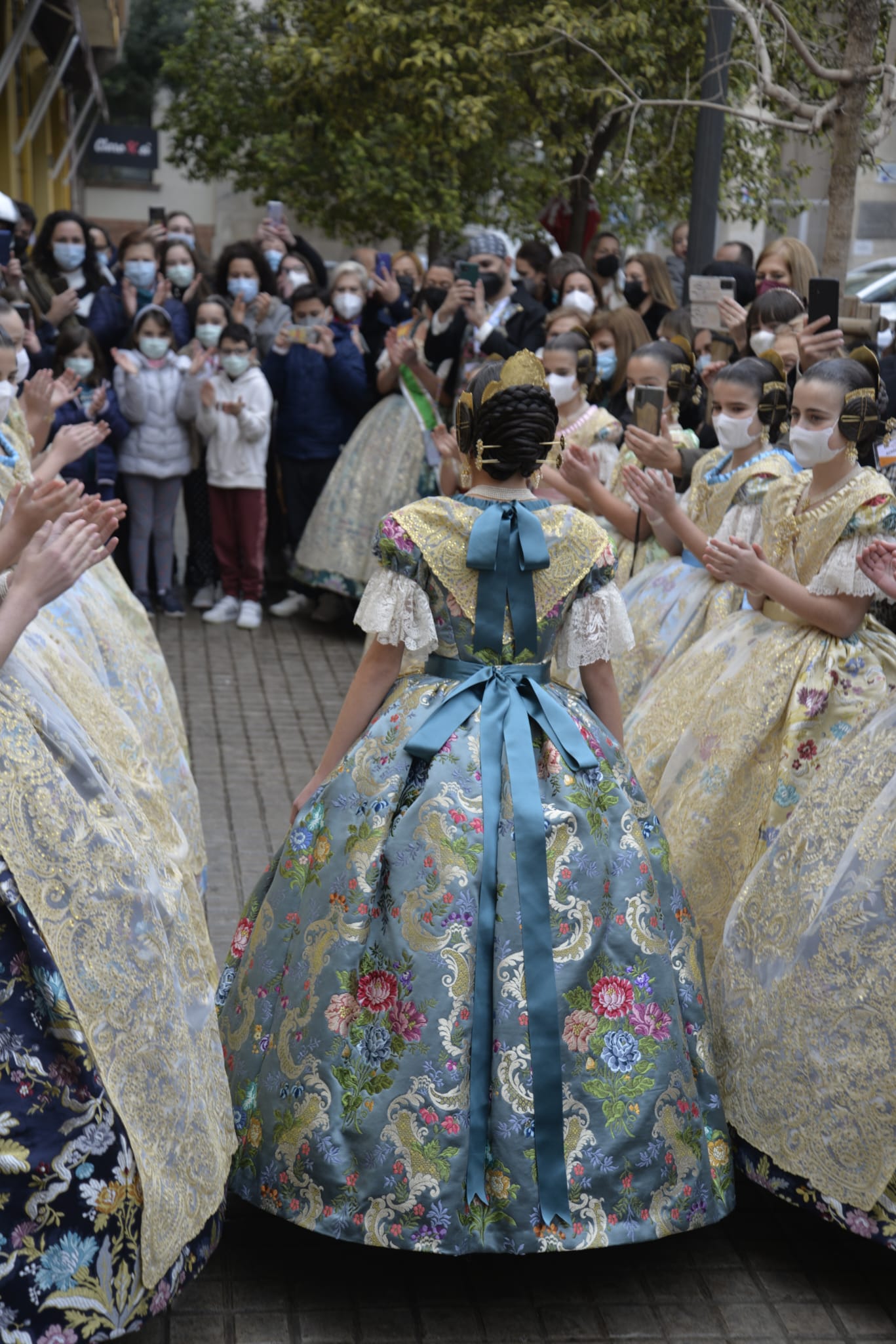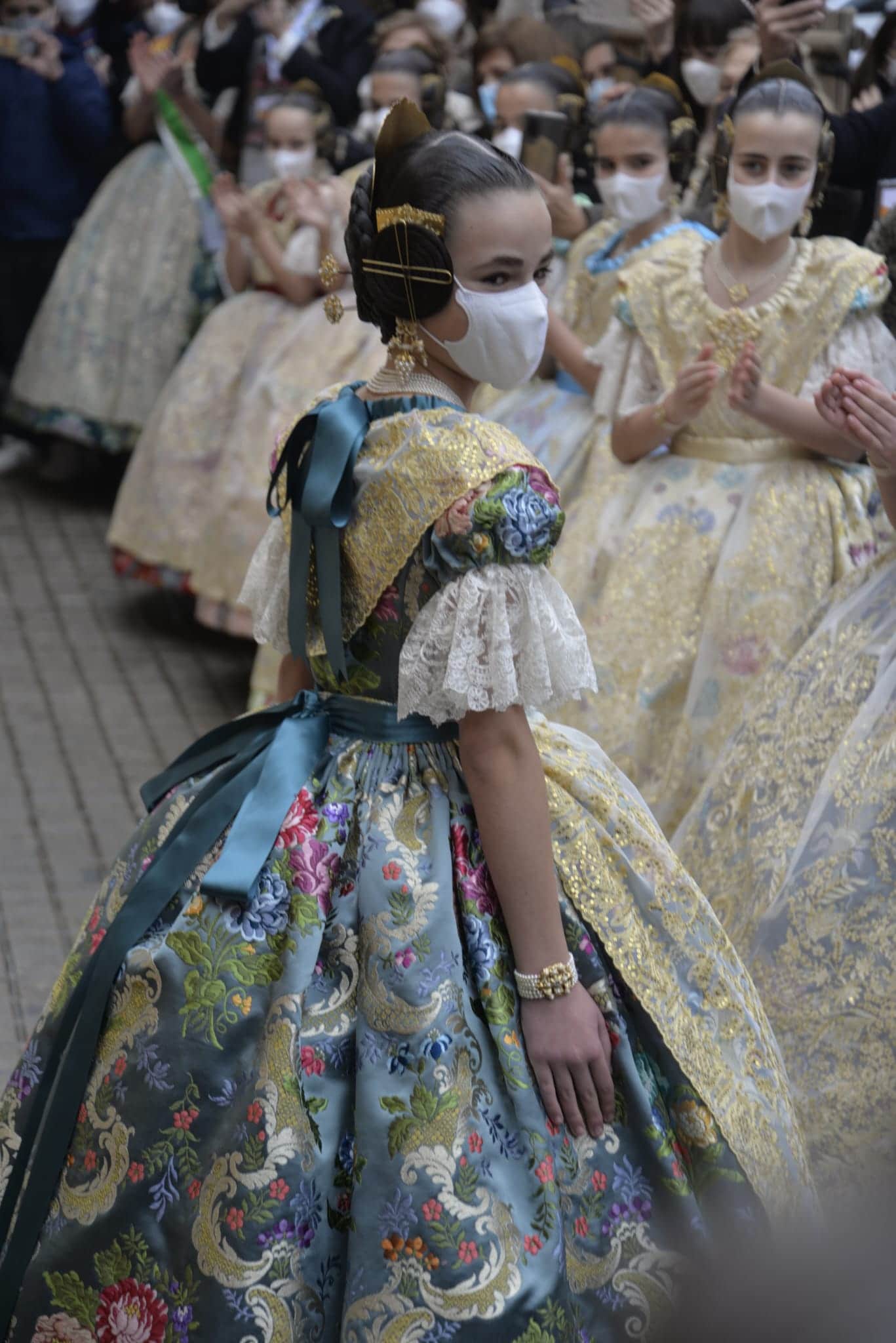 En la elección del colorido, tanto del fondo como de sus motivos florales, además del equipo de diseño de Vives y Marí, se ha contado con el gusto personal de la Fallera Mayor Infantil de València. Por su parte, la casa La Joia Indumentaristas ha sido la encargada en esta ocasión de la confección del traje para que la Fallera Mayor Infantil de València pueda lucir con todo su esplendor en tan esperada tarde.